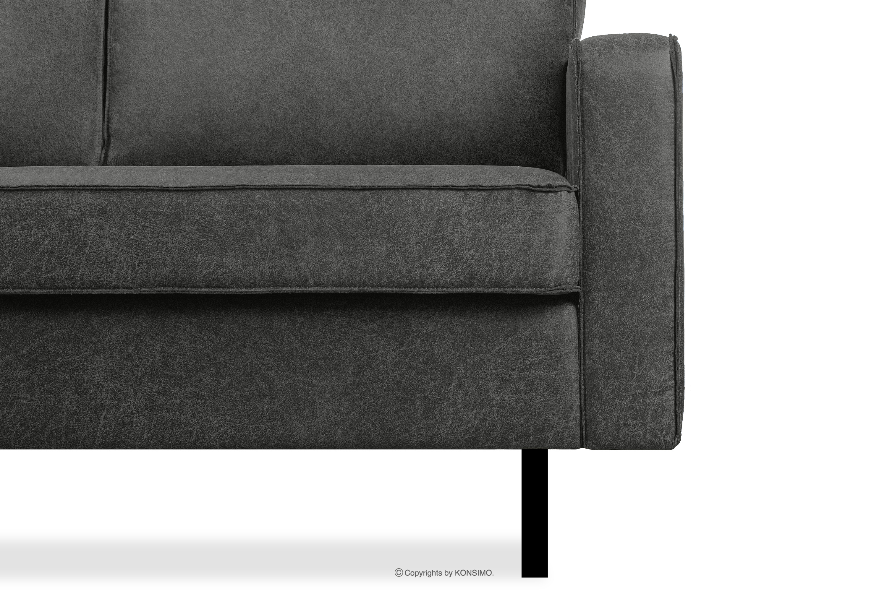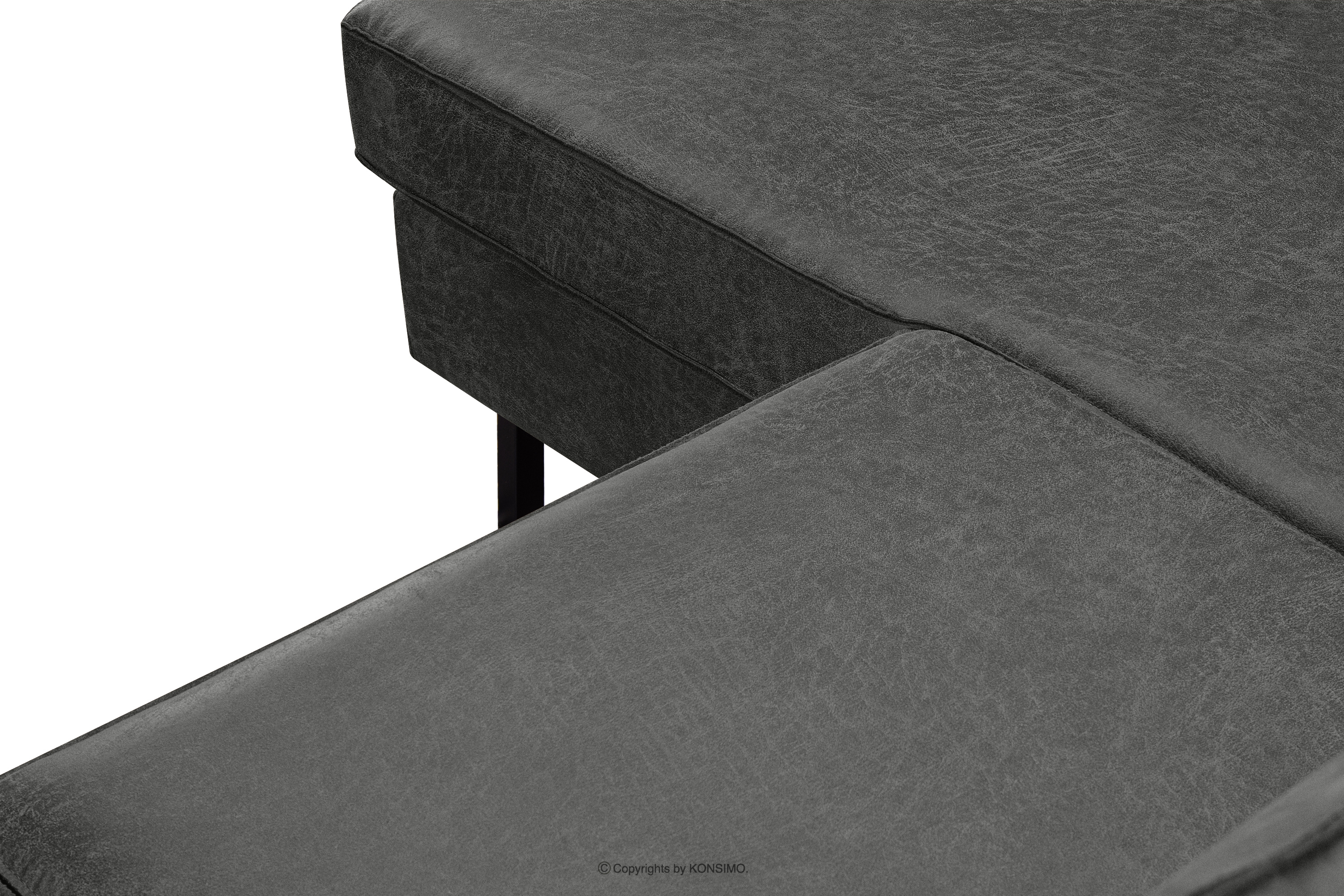 Narożnik w stylu loft lewy z otomaną ciemny szary to idealne rozwiązanie zarówno do dużych, jak i małych pomieszczeń. Wyjątkowy design oraz wysoka jakość wykonania sprawiają, że jest to mebel, który nie tylko zachwyca estetycznie, ale także zapewnia wygodę i komfort. Narożnik posiada również metalowe nóżki w kolorze czarnym, które idealnie komponują się ze stylem loft i vintage.