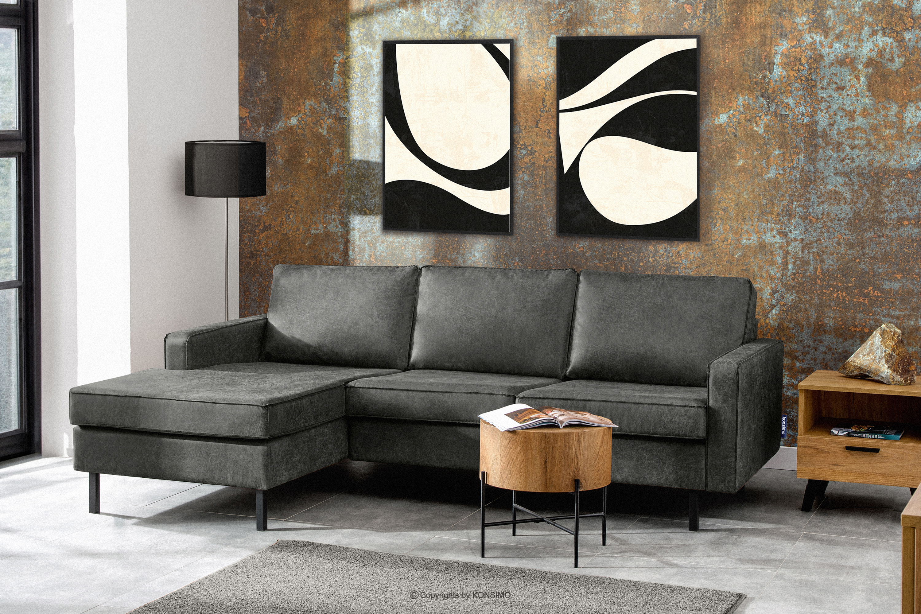 INVIA zobacz całą kolekcję Narożnik w stylu loft lewy z otomaną ciemny szary- kolor ciemny szary