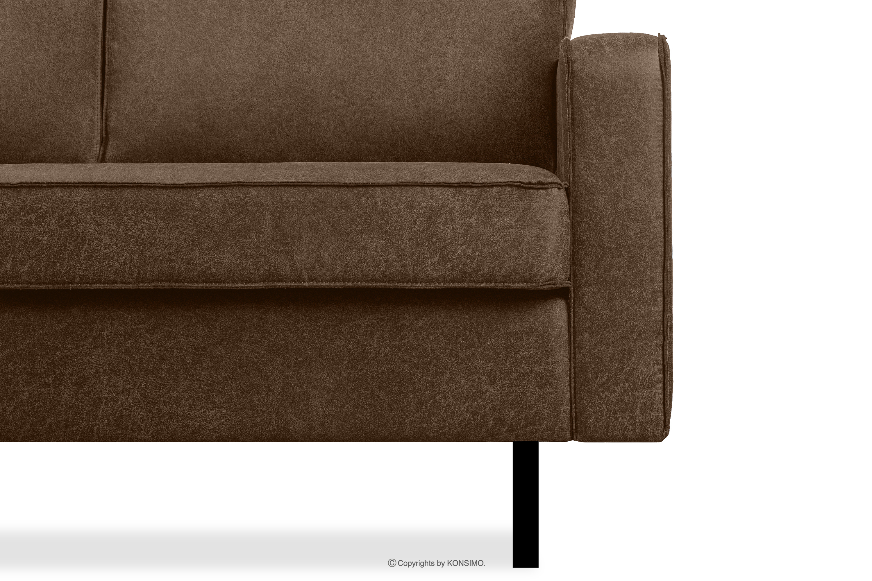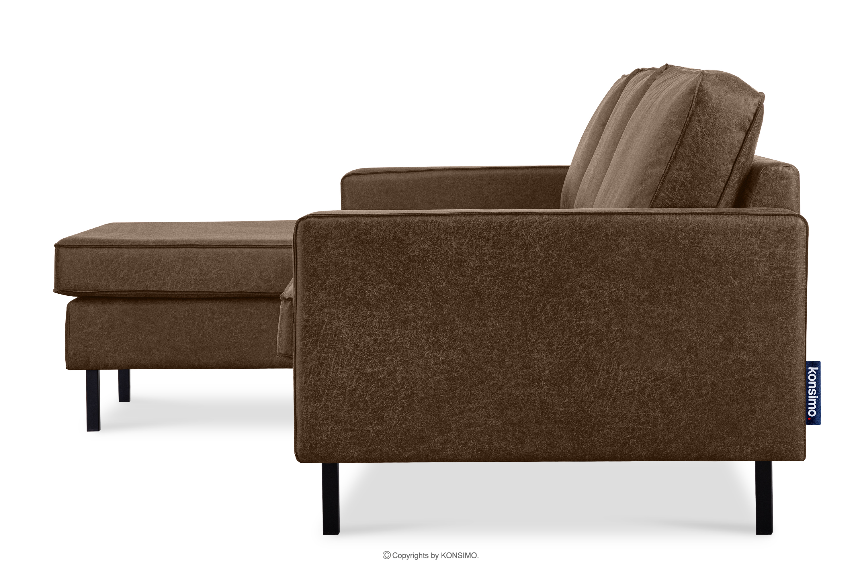 Narożnik w stylu loft lewy z otomaną ciemny brązowy to idealne rozwiązanie zarówno do dużych, jak i małych pomieszczeń. Wyjątkowy design oraz wysoka jakość wykonania sprawiają, że jest to mebel, który nie tylko zachwyca estetycznie, ale także zapewnia wygodę i komfort. Narożnik posiada również metalowe nóżki w kolorze czarnym, które idealnie komponują się ze stylem loft i vintage.
