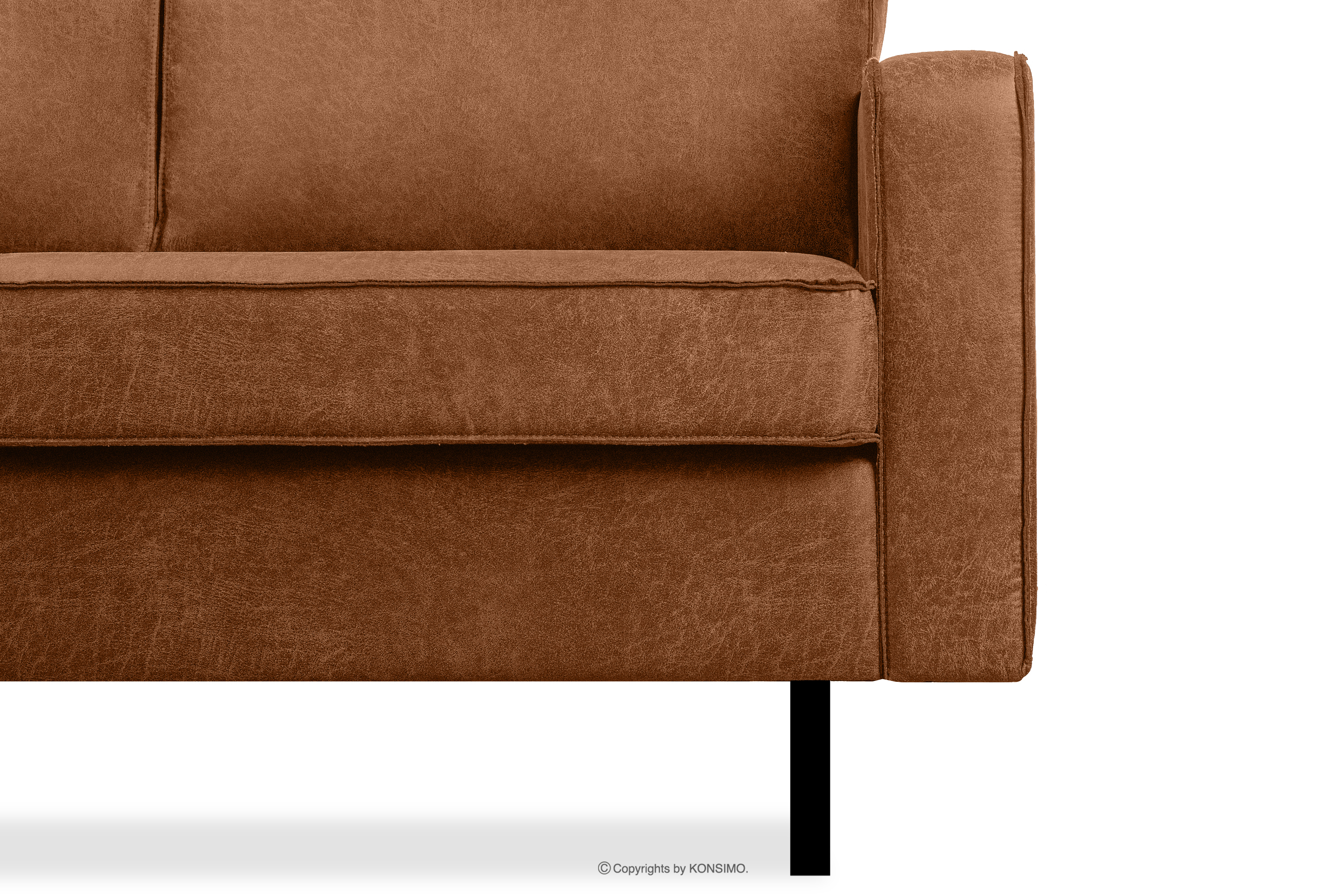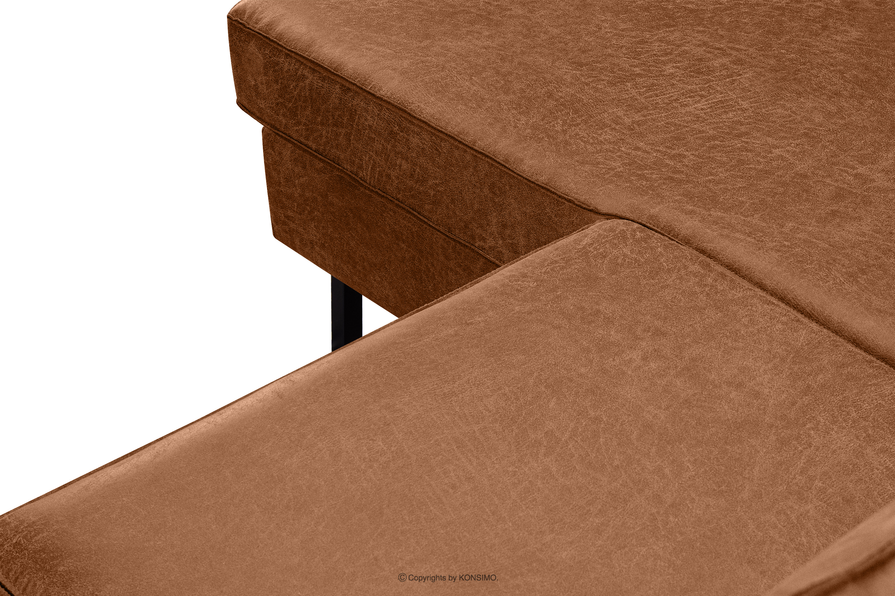 Narożnik w stylu loft lewy z otomaną rudy to idealne rozwiązanie zarówno do dużych, jak i małych pomieszczeń. Wyjątkowy design oraz wysoka jakość wykonania sprawiają, że jest to mebel, który nie tylko zachwyca estetycznie, ale także zapewnia wygodę i komfort. Narożnik posiada również metalowe nóżki w kolorze czarnym, które idealnie komponują się ze stylem loft i vintage.