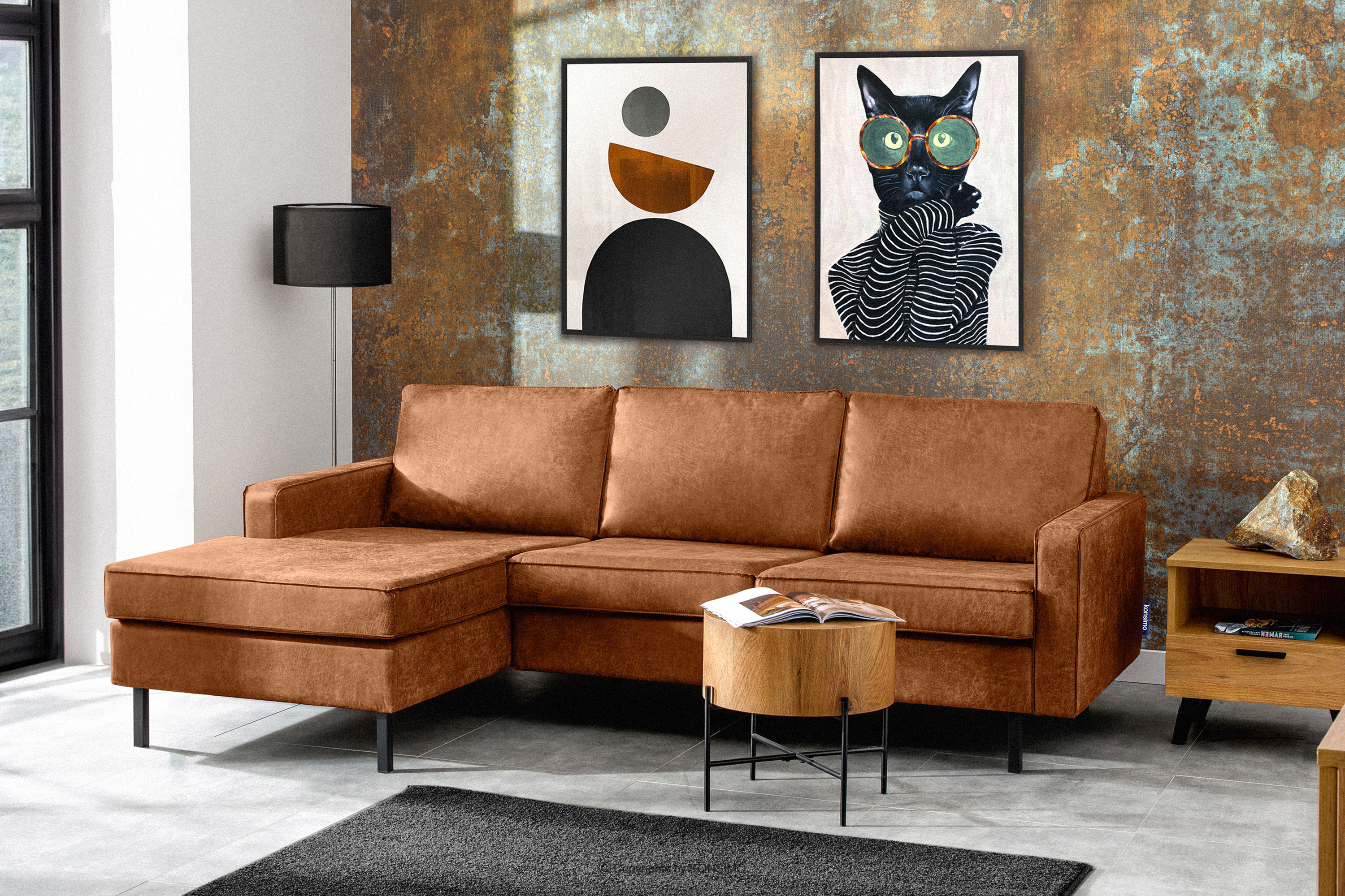INVIA zobacz całą kolekcję Narożnik w stylu loft lewy z otomaną koniakowy- kolor rudy