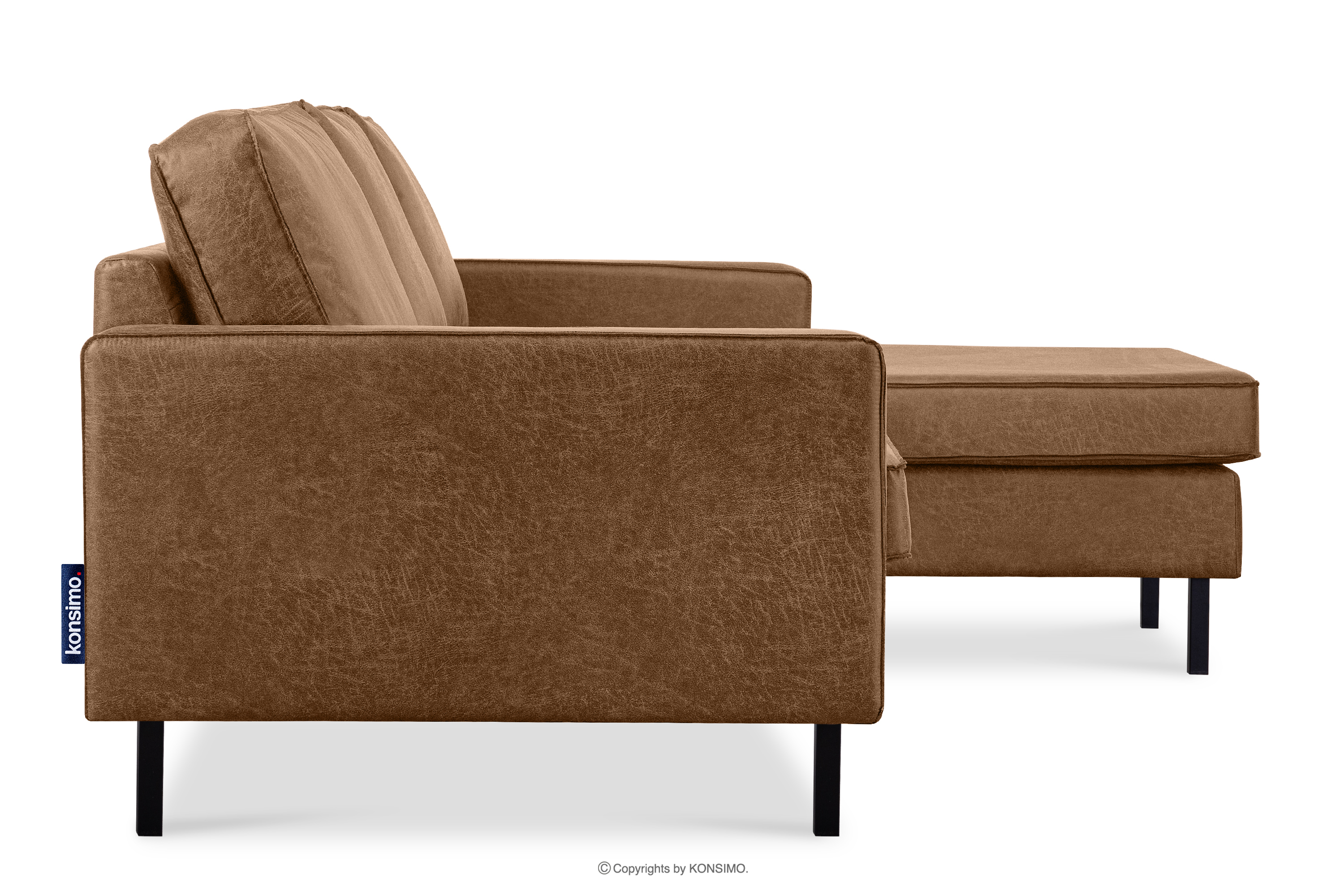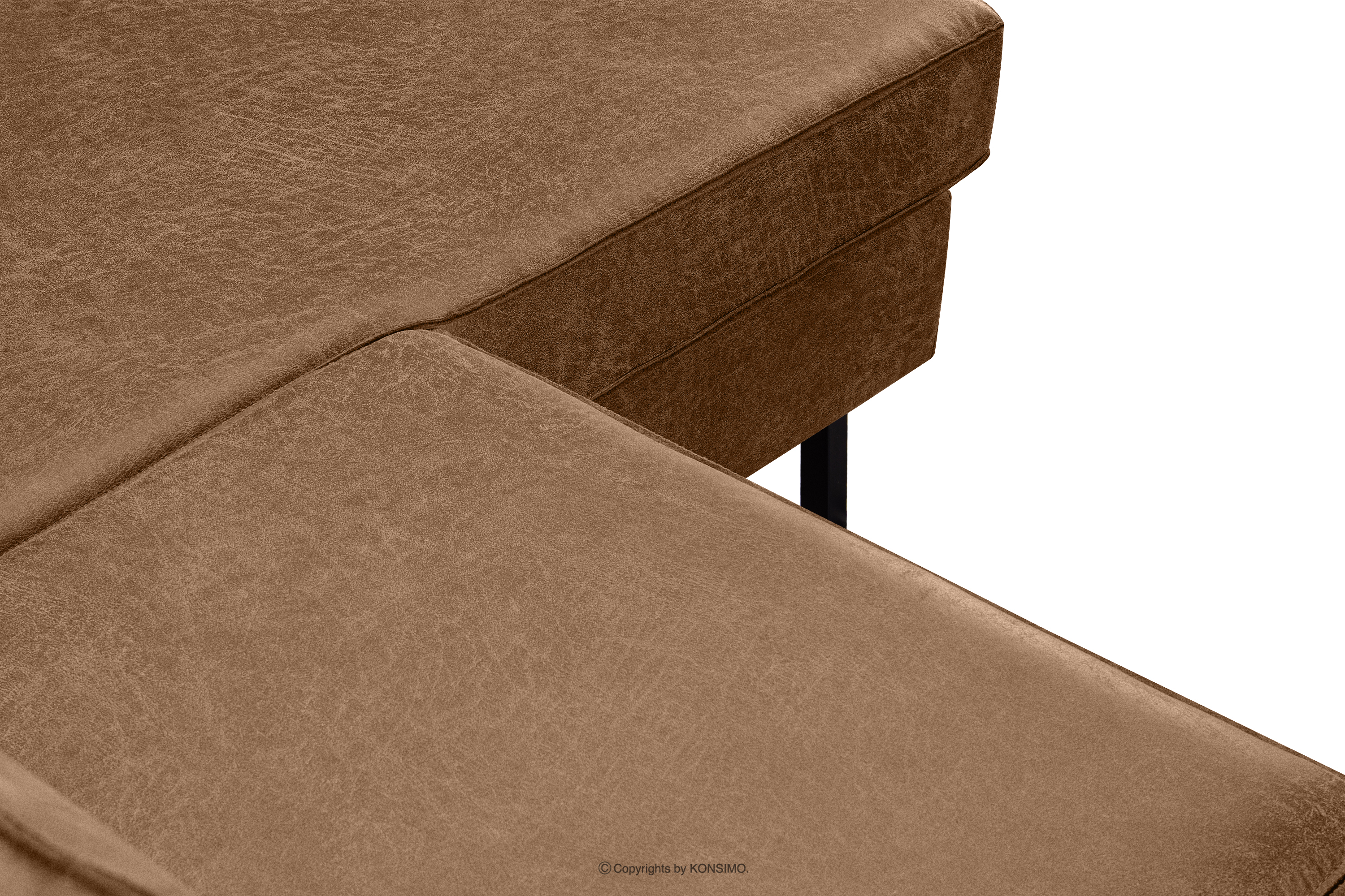 Narożnik w stylu loft prawy z otomaną brązowy to idealne rozwiązanie zarówno do dużych, jak i małych pomieszczeń. Wyjątkowy design oraz wysoka jakość wykonania sprawiają, że jest to mebel, który nie tylko zachwyca estetycznie, ale także zapewnia wygodę i komfort. Narożnik posiada również metalowe nóżki w kolorze czarnym, które idealnie komponują się ze stylem loft i vintage.