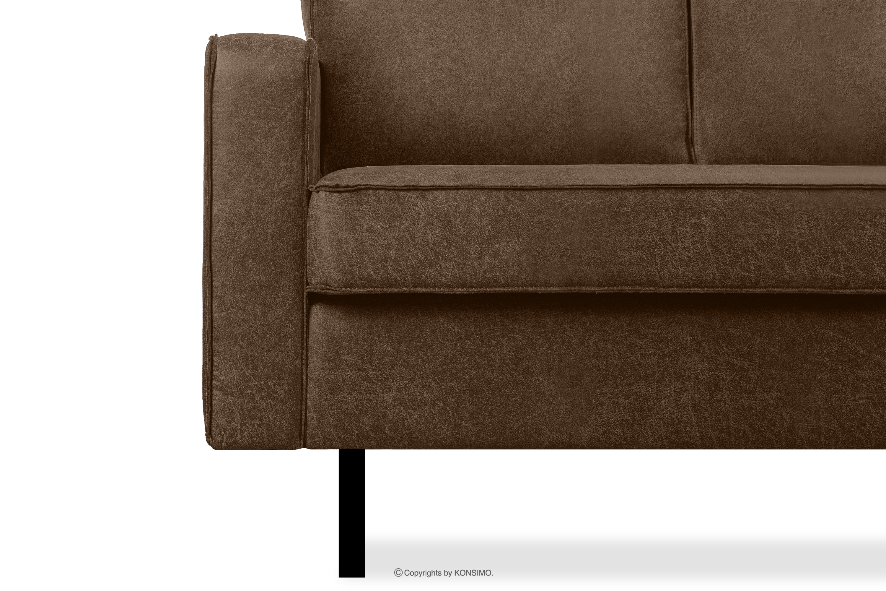 Sofa loftowa 2 osobowa ciemny brązowy jest idealnym rozwiązaniem zarówno do dużych, jak i małych pomieszczeń. Jej wyjątkowy design oraz wysoka jakość wykonania sprawiają, że jest to mebel, który nie tylko zachwyca estetycznie, ale także zapewnia wygodę i komfort. Sofa posiada również metalowe nóżki w kolorze czarnym, które idealnie komponują się ze stylem loft i vintage.