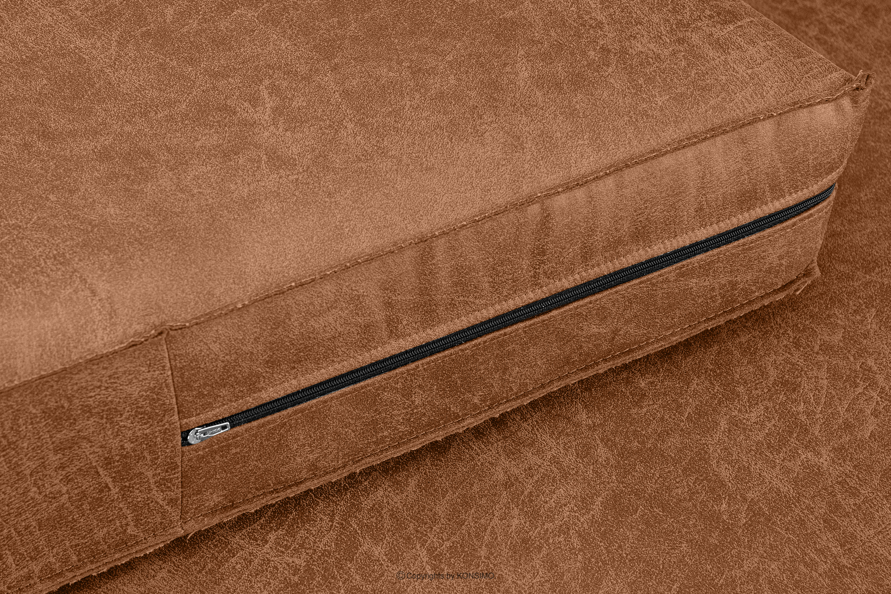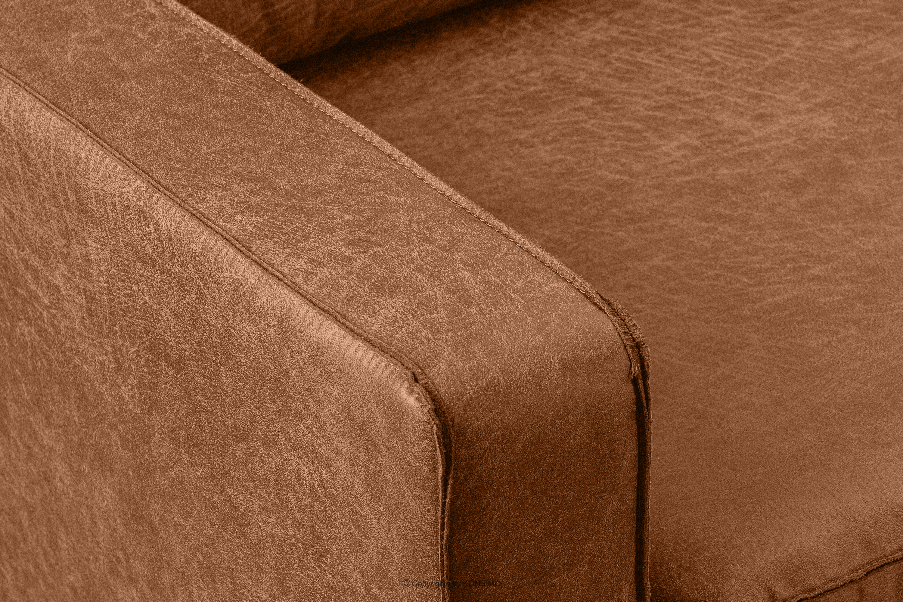 Sofa została wykonana z tkaniny składającej się w 70% z regenerowanej skóry i w 30% z poliestru. To połączenie tworzy materiał o trwałej strukturze i przyjemnej w dotyku powierzchni. Regenerowana skóra nadaje sofie elegancji i stylu, podkreślając jej loftowy charakter. Dodatek poliestru zwiększa wytrzymałość tkaniny, zapewniając długotrwałe użytkowanie sofy. Wewnątrz siedziska znajduje się sprężyna falista, która zapewnia doskonałe wsparcie dla ciała podczas siedzenia. Ta konstrukcja umożliwia równomierne rozłożenie ciężaru i minimalizuje odkształcenia siedziska, co przekłada się na wygodę użytkowania sofy. Dodatkowo, w siedzisku zastosowano piankę HR 3032 o grubości 5 cm oraz T 2842 o grubości 9 cm. Te dwie warstwy pianki gwarantują doskonałe dopasowanie do ciała i długotrwałą sprężystość.