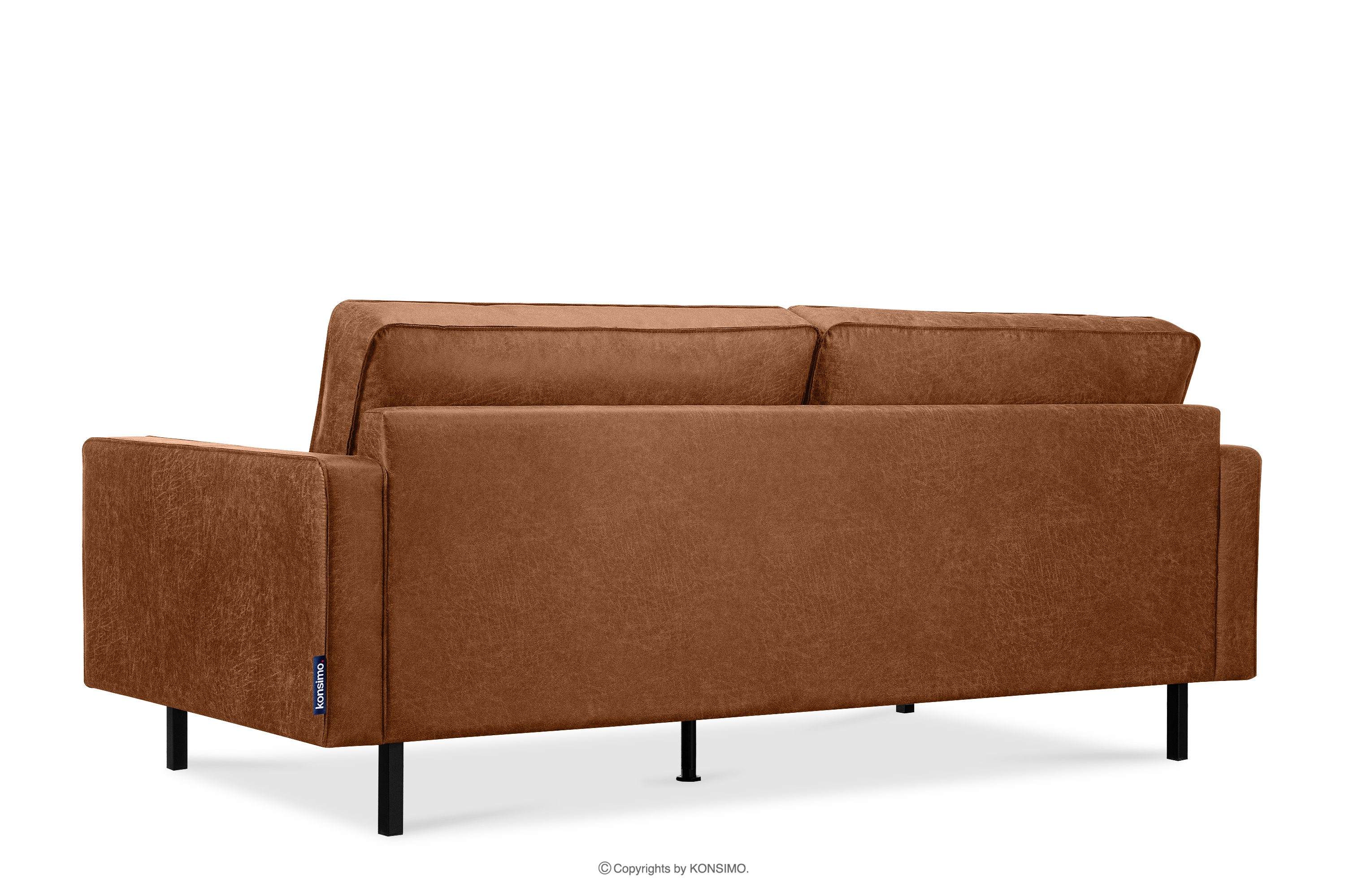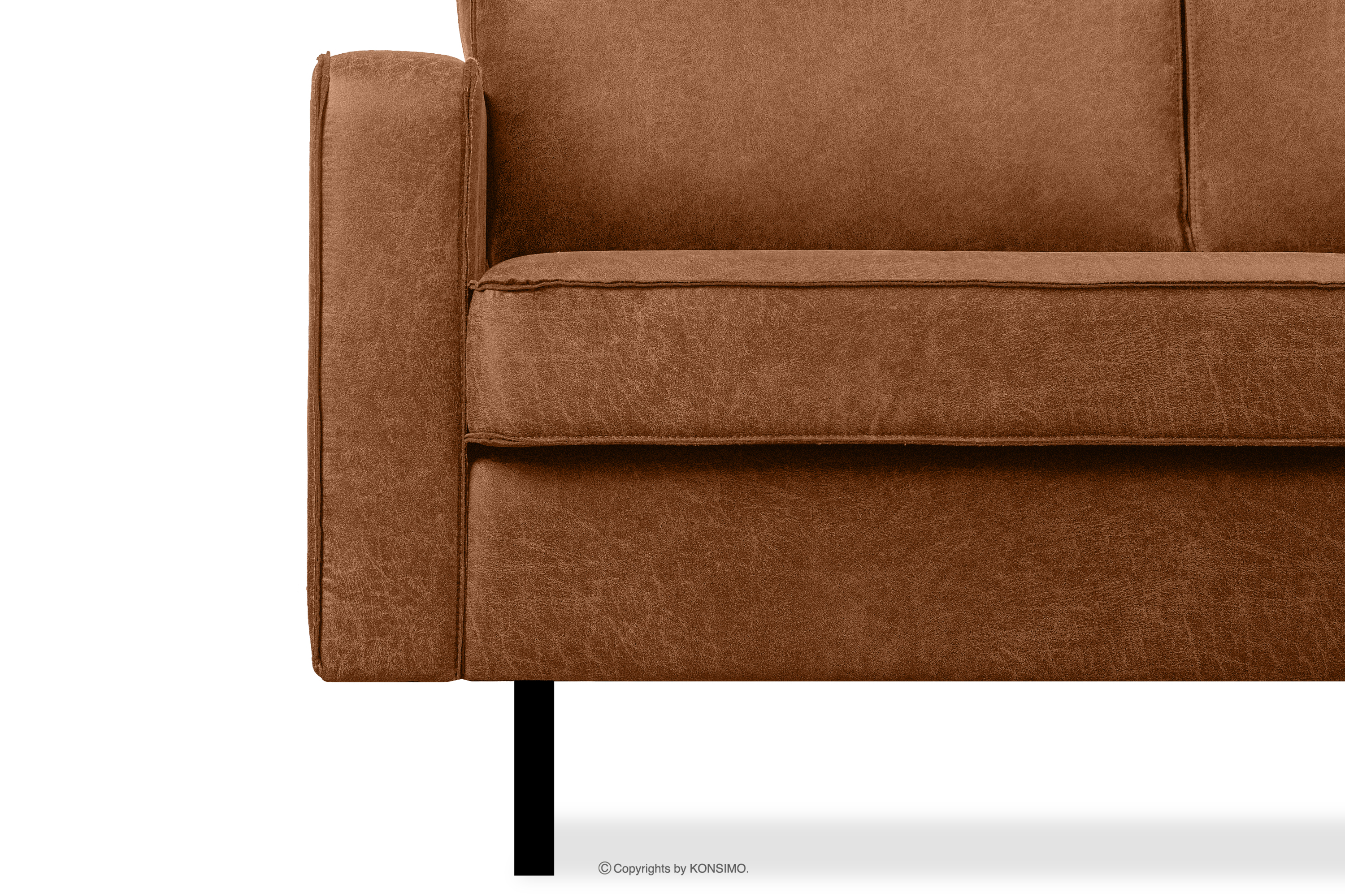 Sofa loftowa 3 osobowa rudy jest idealnym rozwiązaniem zarówno do dużych, jak i małych pomieszczeń. Jej wyjątkowy design i wysoka jakość wykonania sprawiają, że jest to mebel, który nie tylko zachwyca estetycznie, ale także zapewnia wygodę i komfort. Sofa posiada również metalowe nóżki w kolorze czarnym, które doskonale komponują się ze stylem loftowym i vintage.