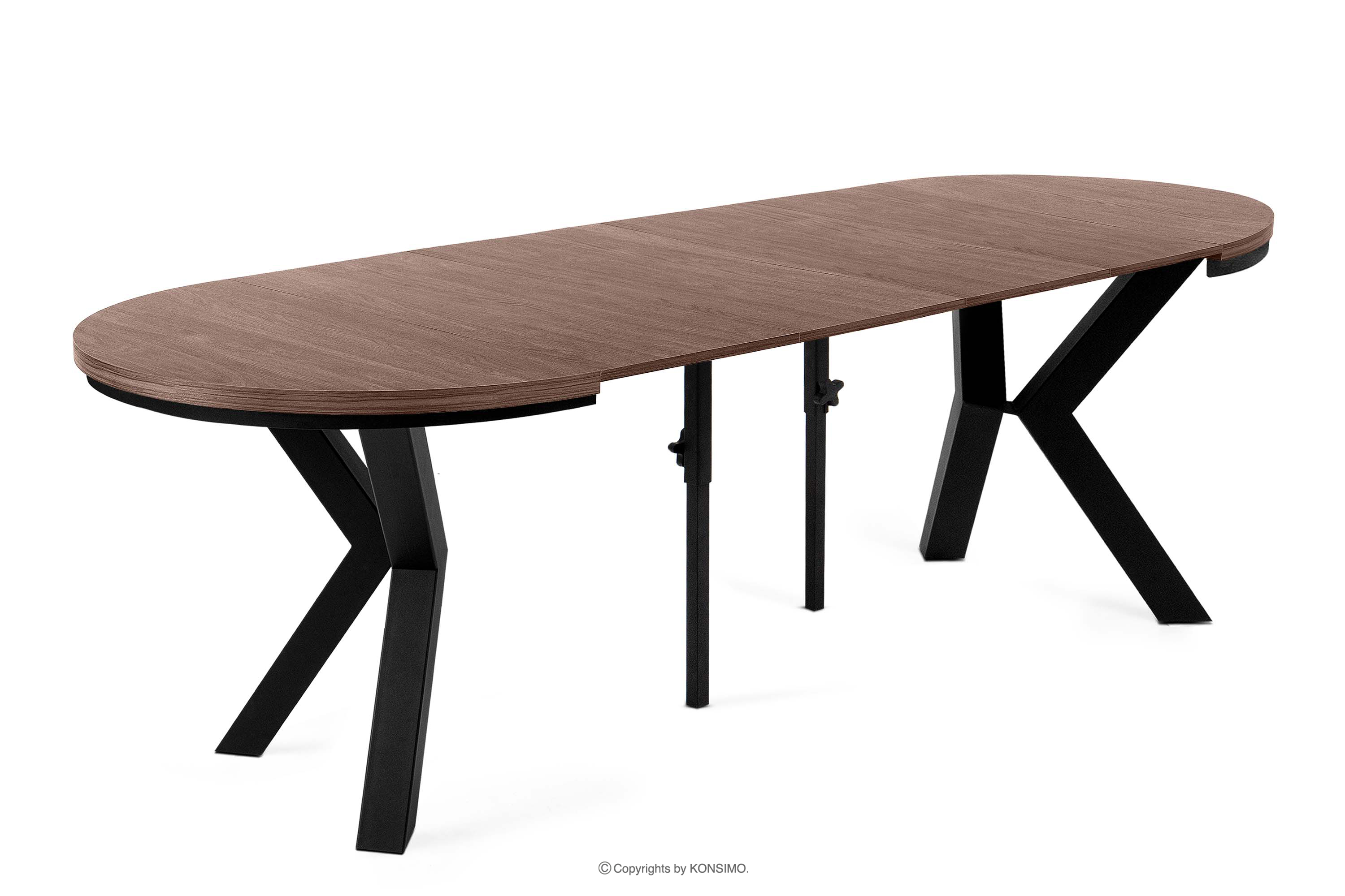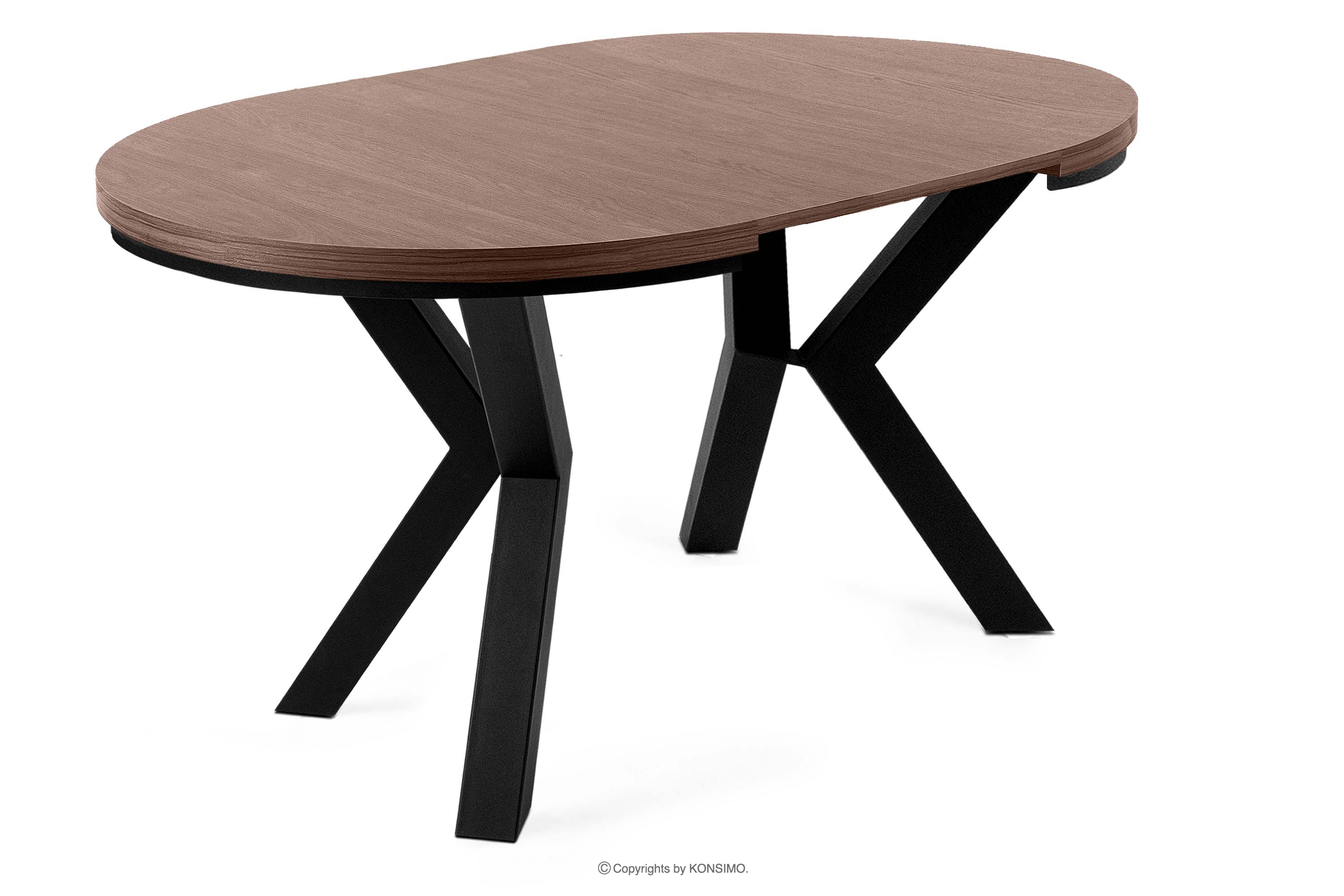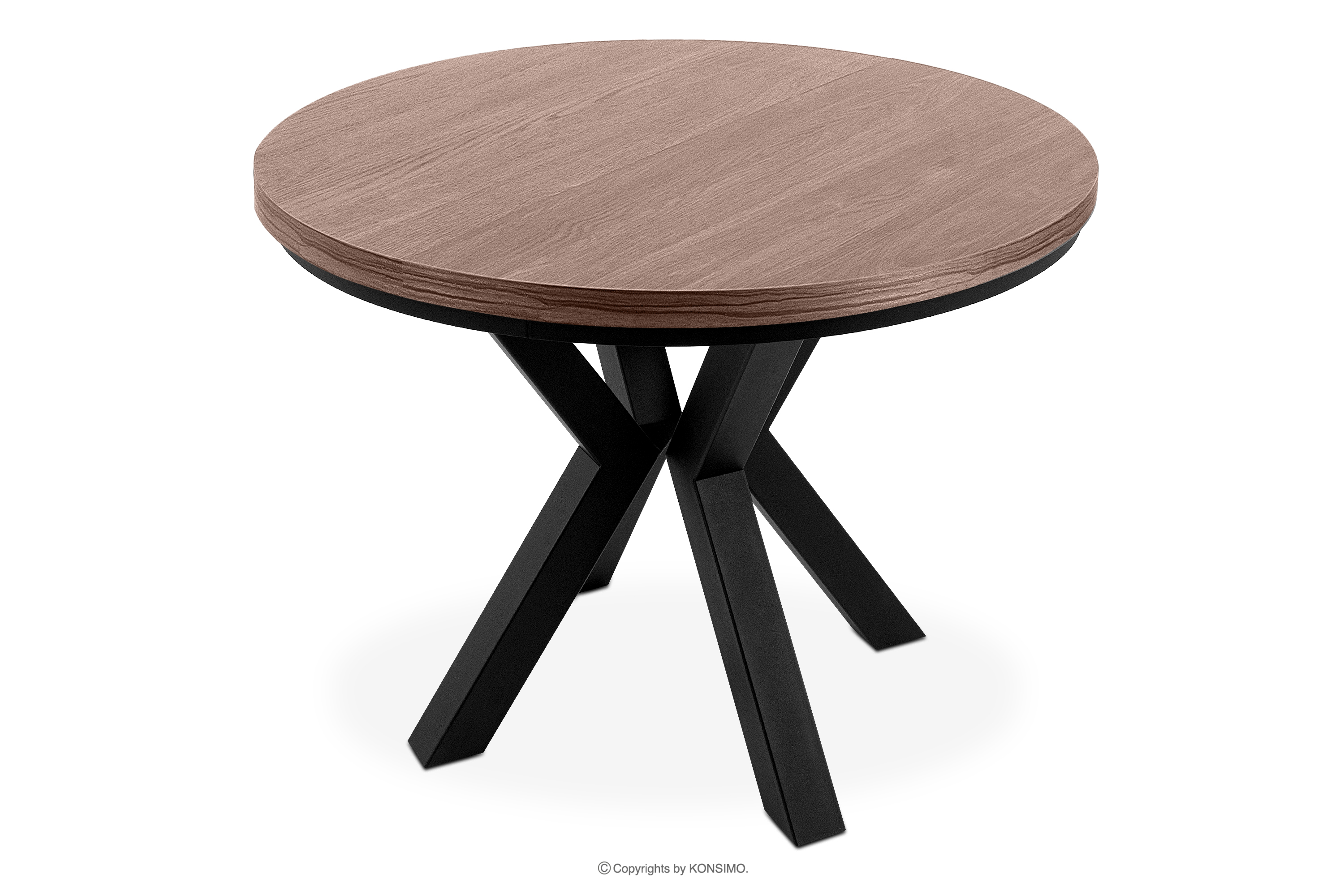 Okrągły stół rozkładany 100-260 orzech średni zachwyci swoim minimalistycznym designem, ale także zapewni funkcjonalność na najwyższym poziomie. Nogi stołu, wykonane z solidnego czarnego metalu malowanego proszkowo, nie tylko nadają mu industrialnego charakteru, ale także zapewniają trwałość i stabilność. Blat stołu wykonany z najwyższej jakości płyty laminowanej podkreśla estetykę, a także gwarantuje łatwość utrzymania w czystości.