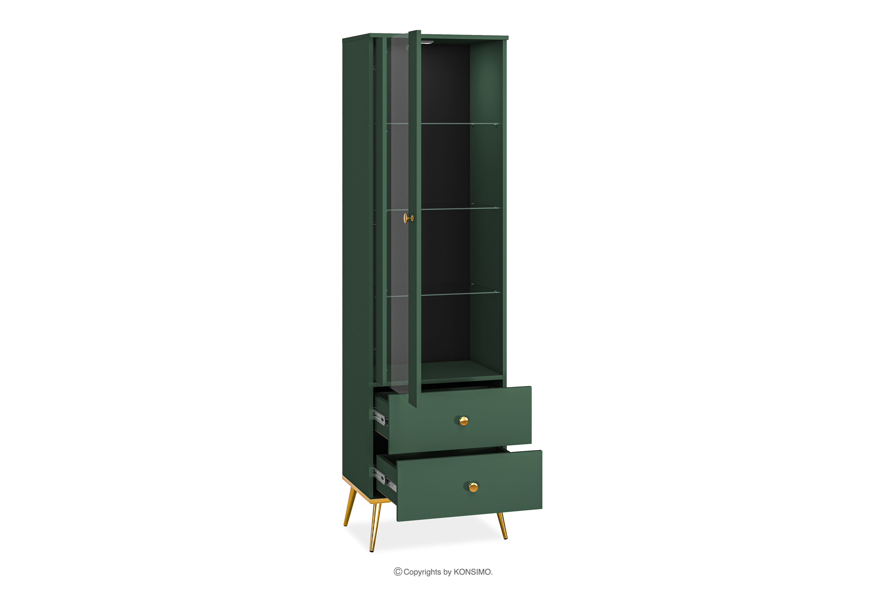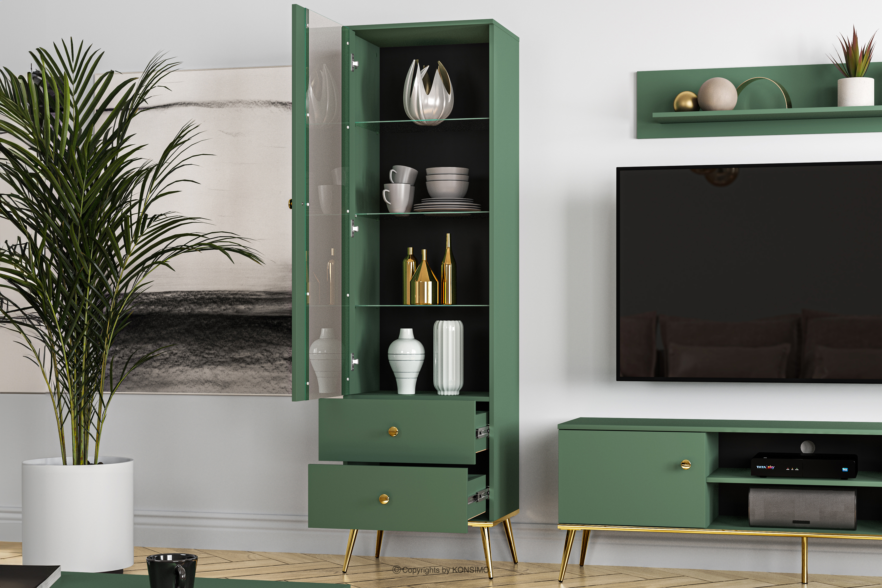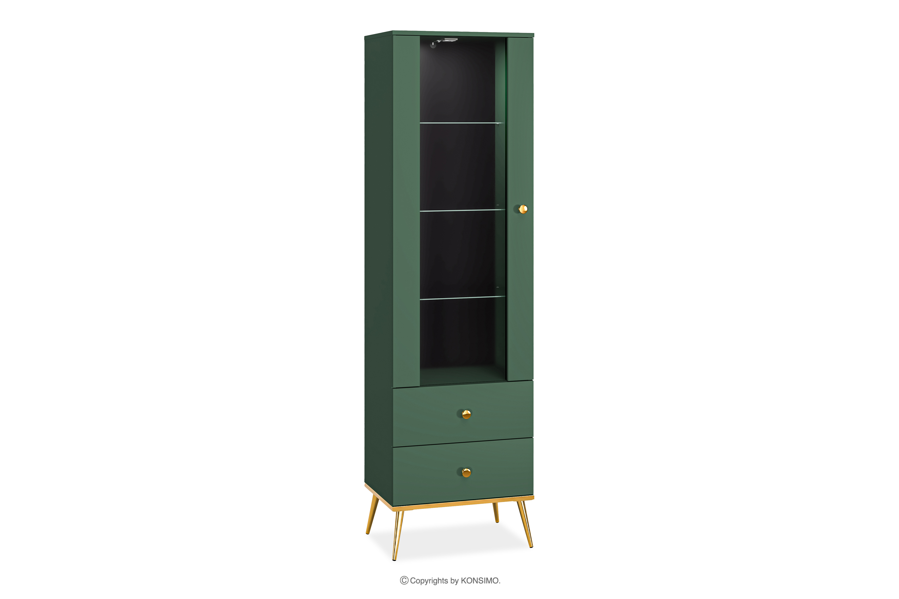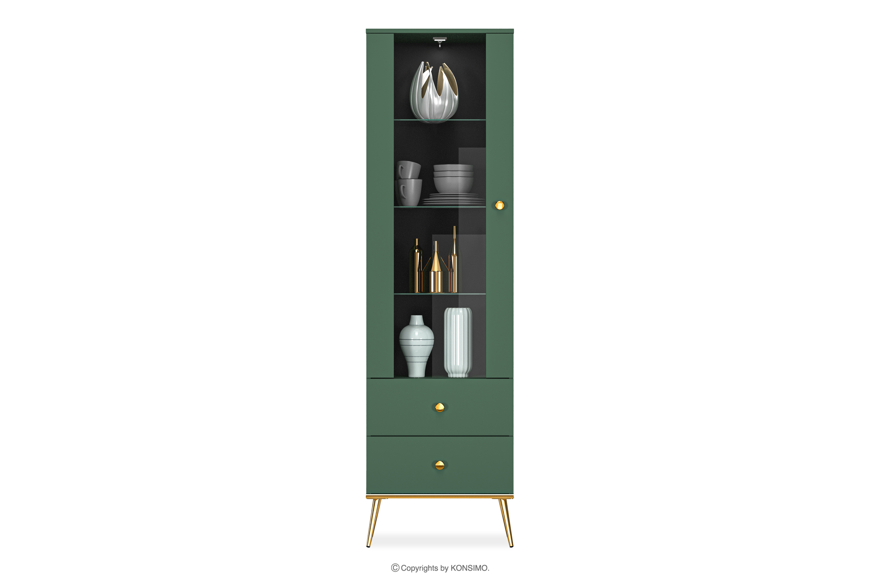 ARICIA zobacz całą kolekcję Witryna na wysokich złotych nogach zielona- kolor zielony