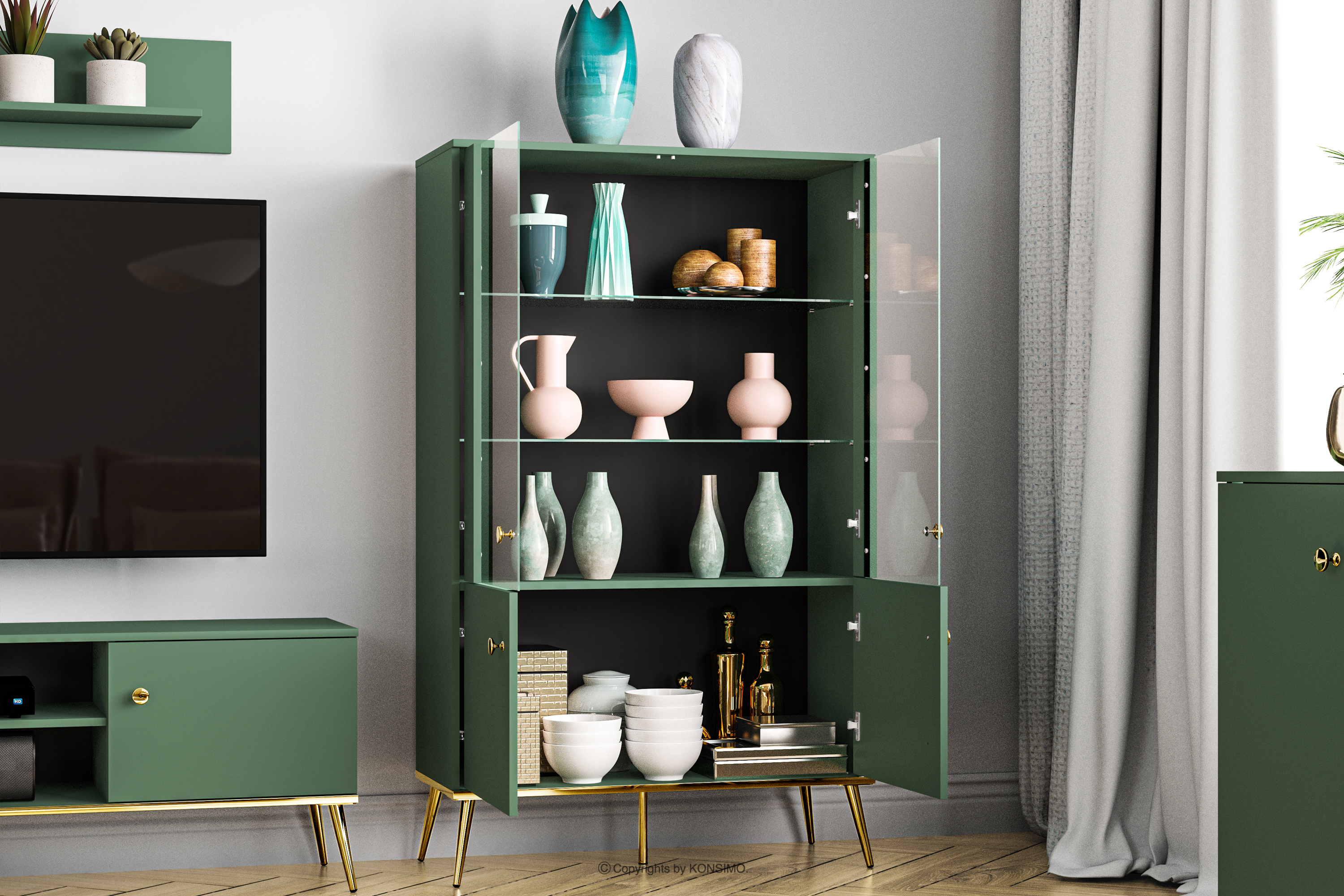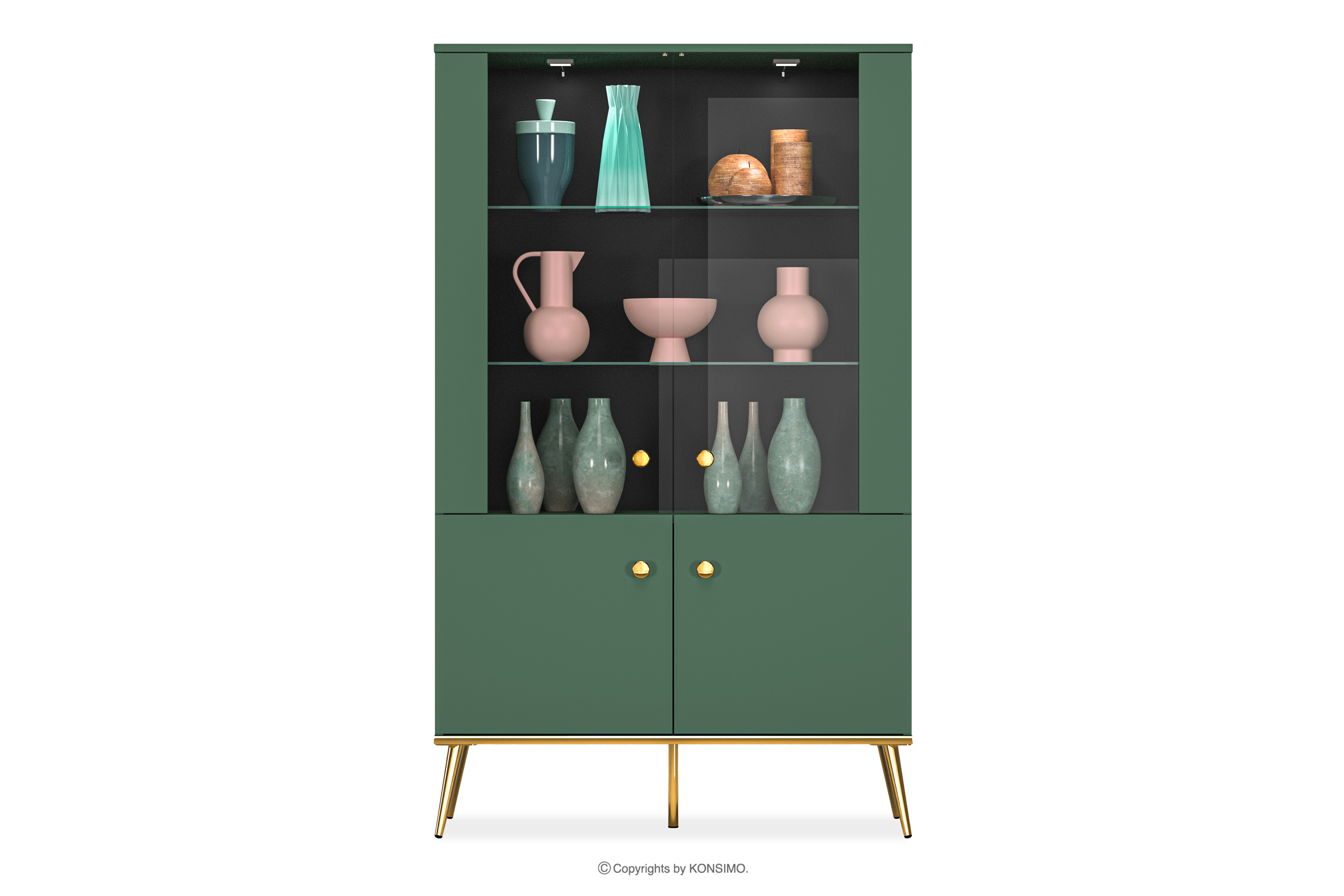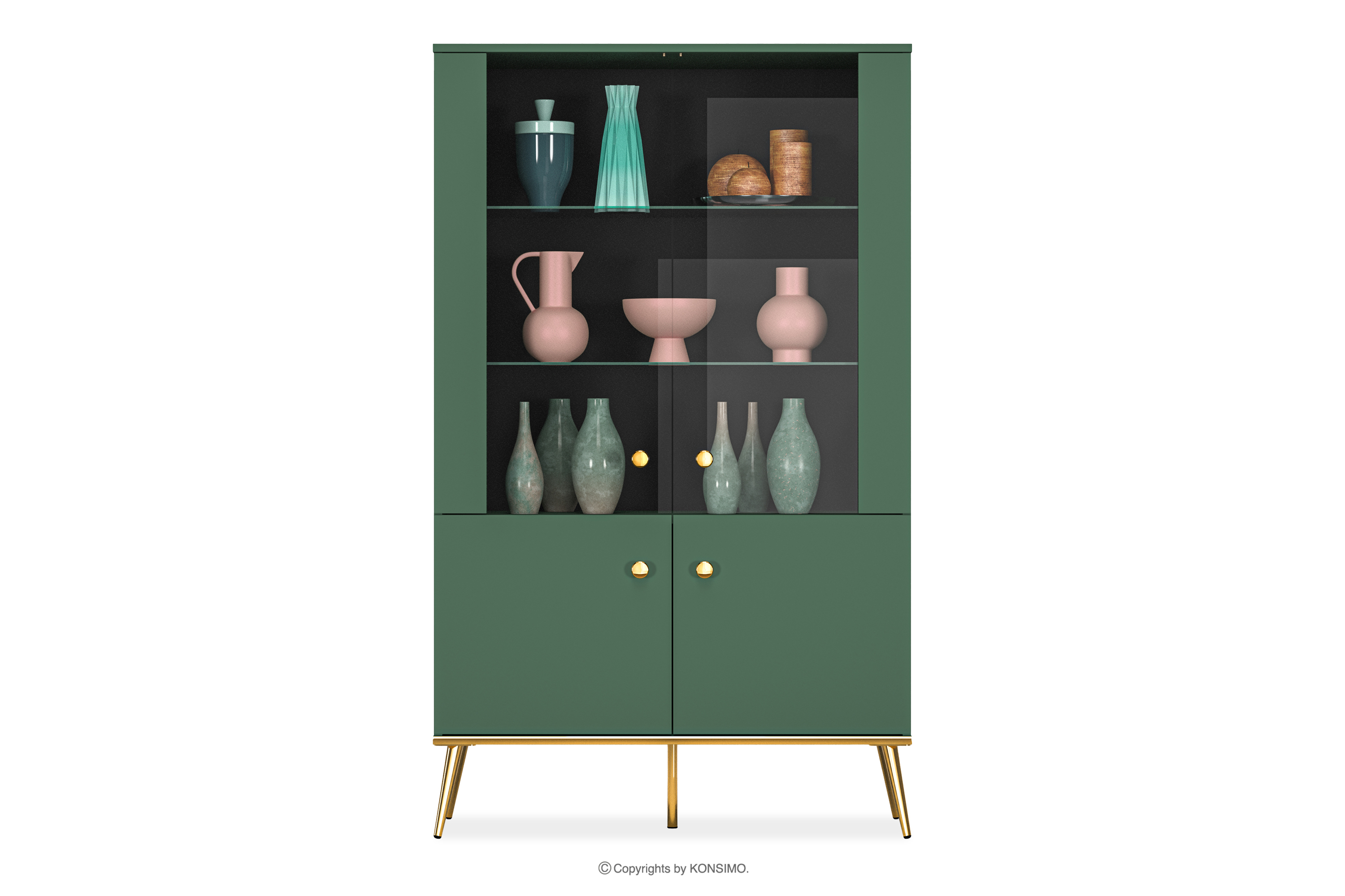 ARICIA zobacz całą kolekcję Zielona witryna na wysokich złotych nogach- kolor zielony