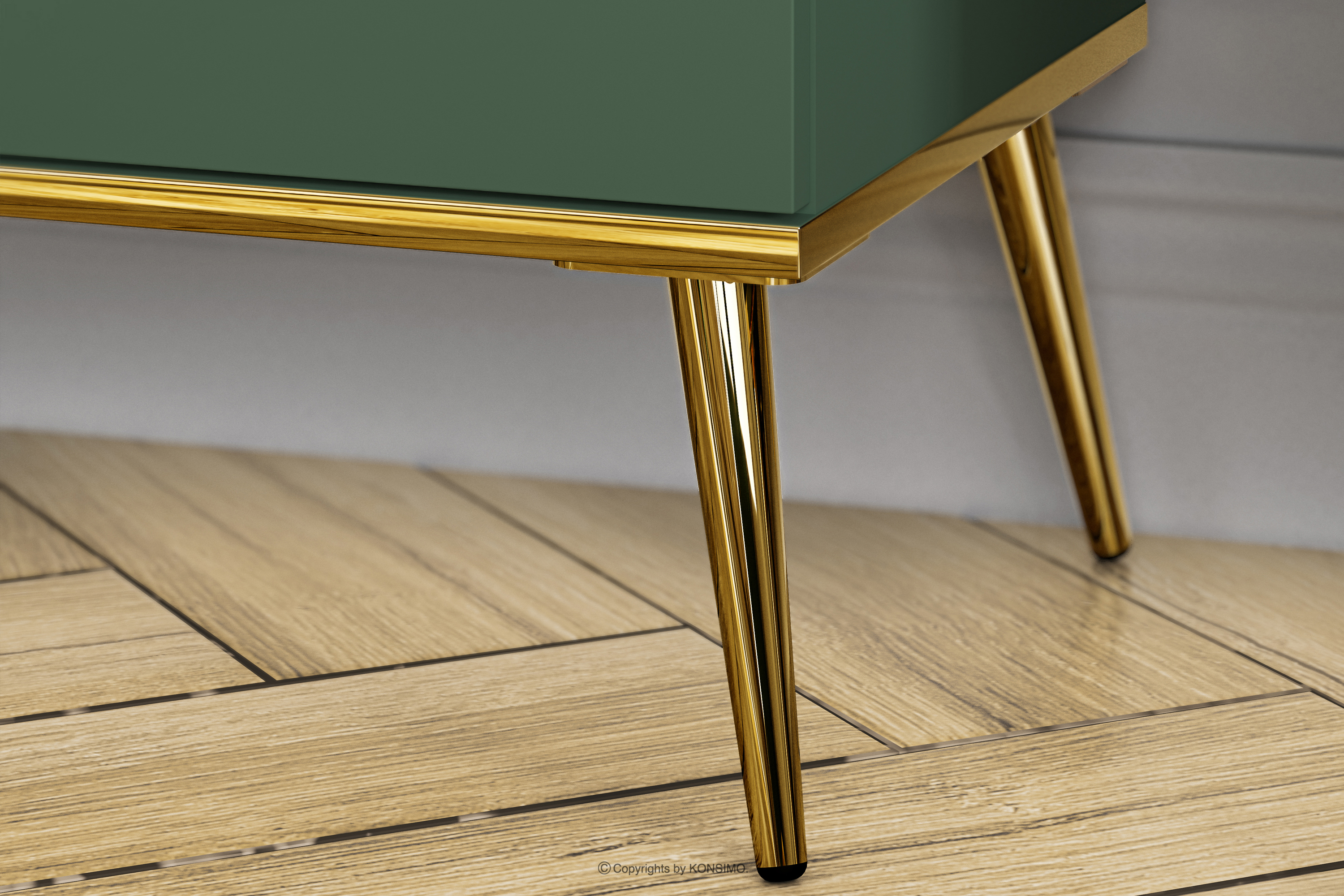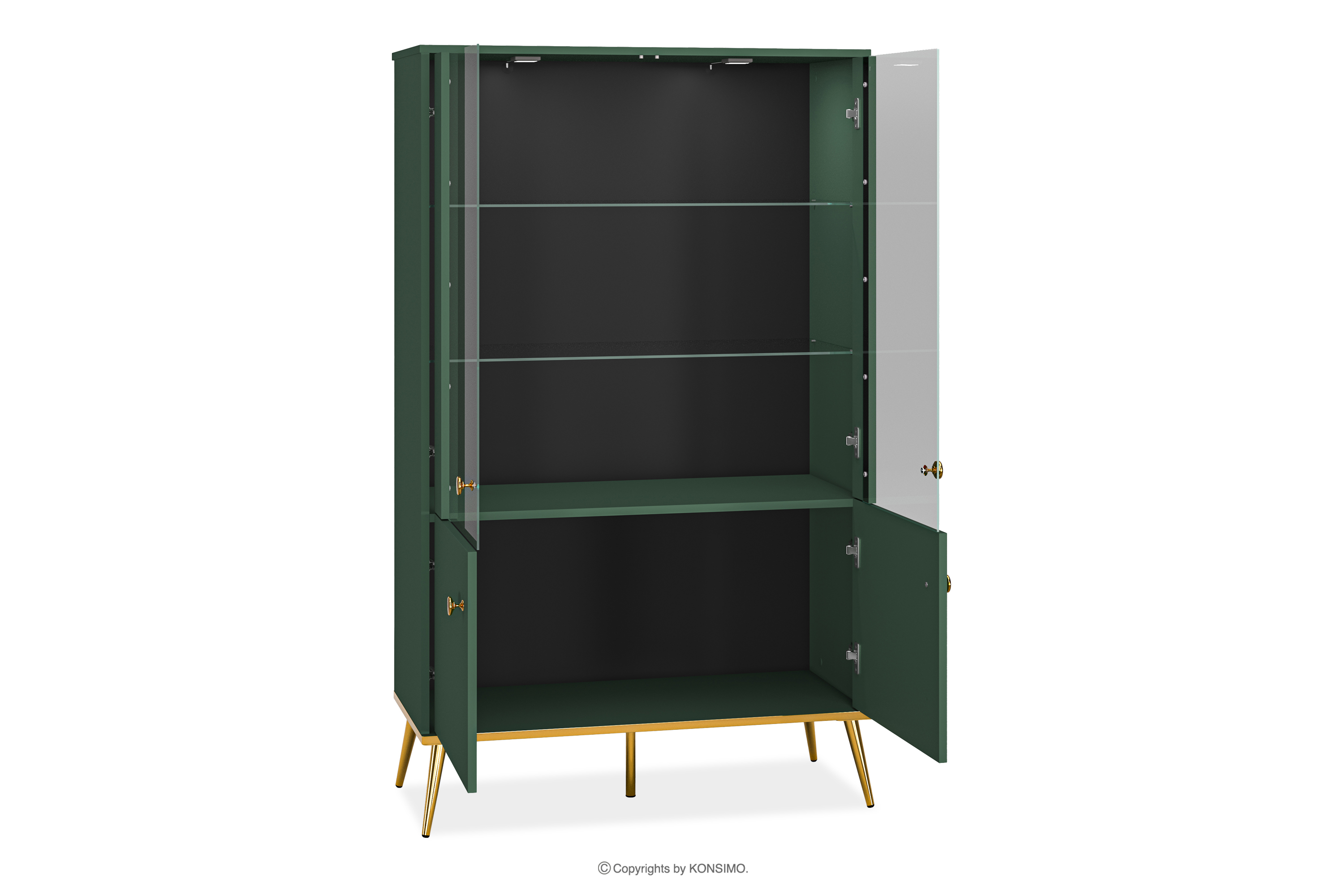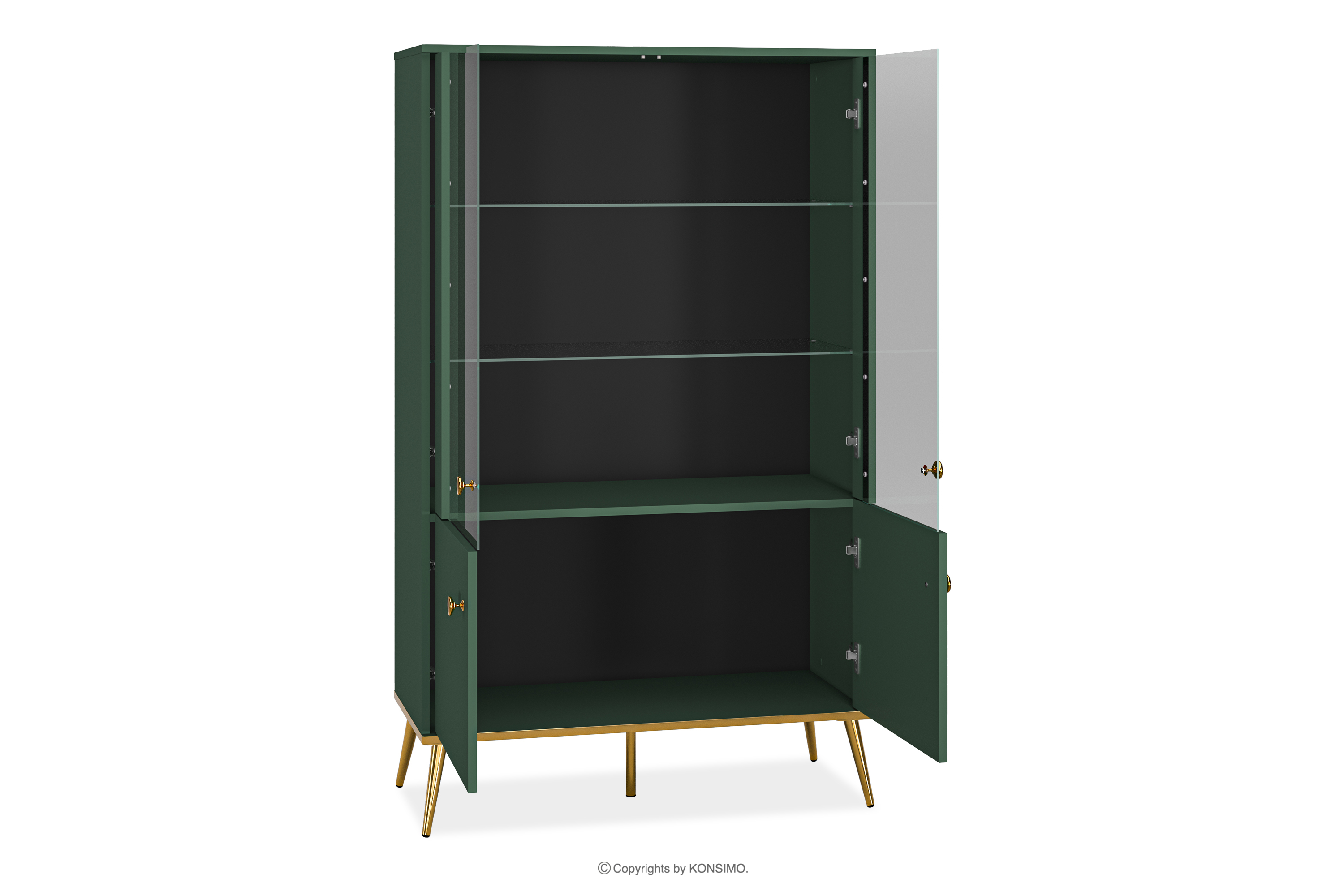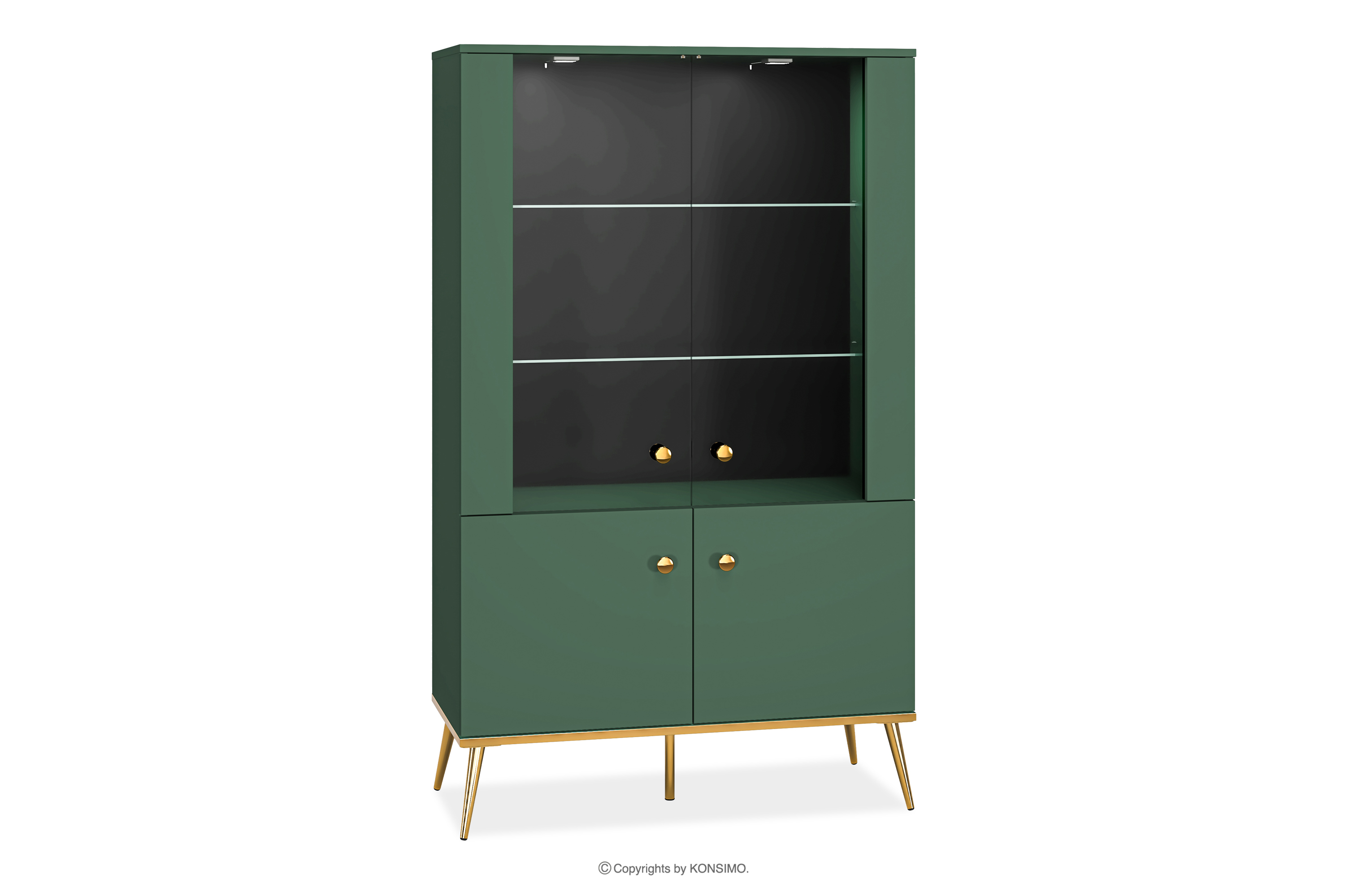 ARICIA zobacz całą kolekcję Zielona witryna na wysokich złotych nogach- kolor zielony