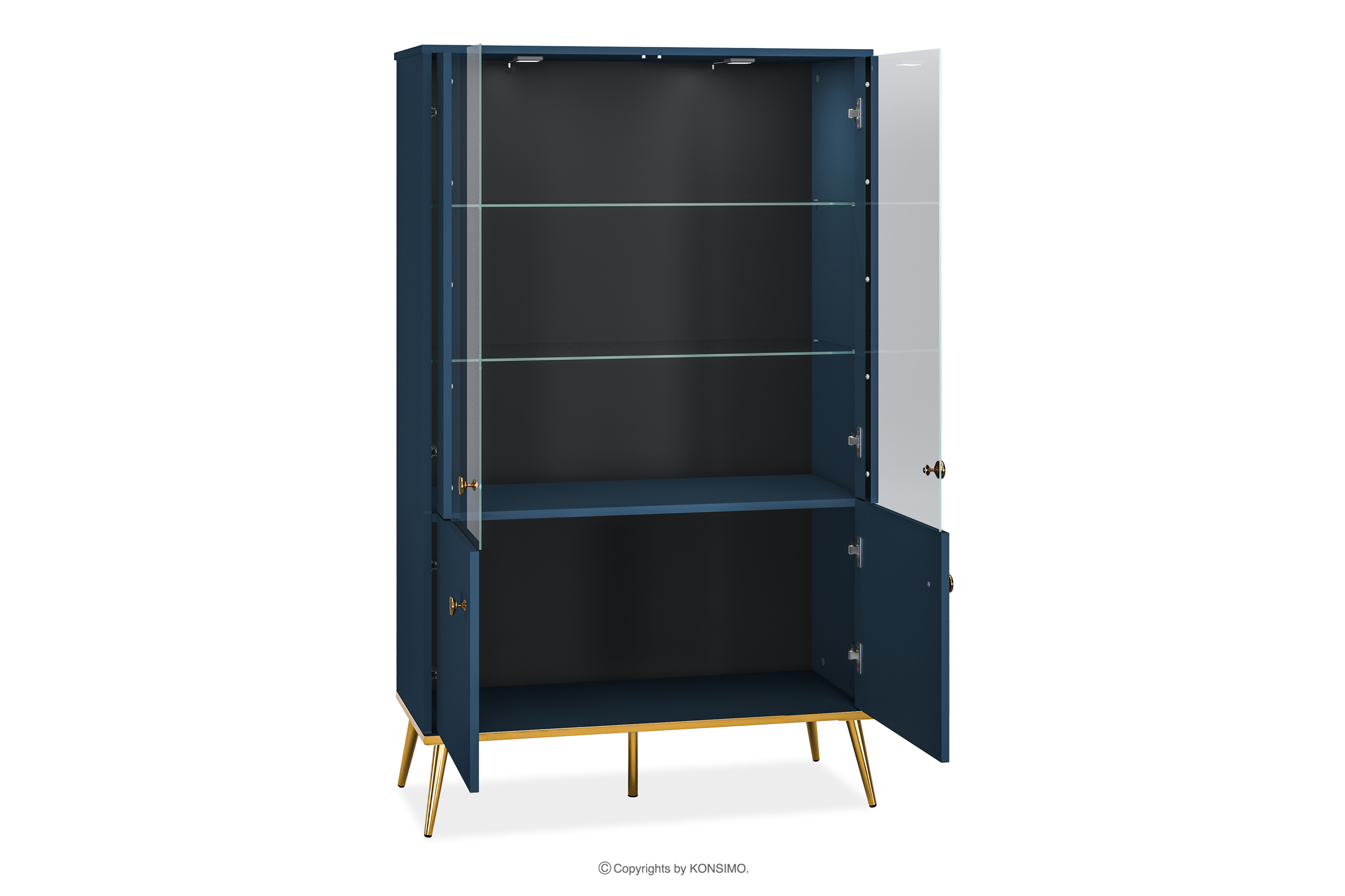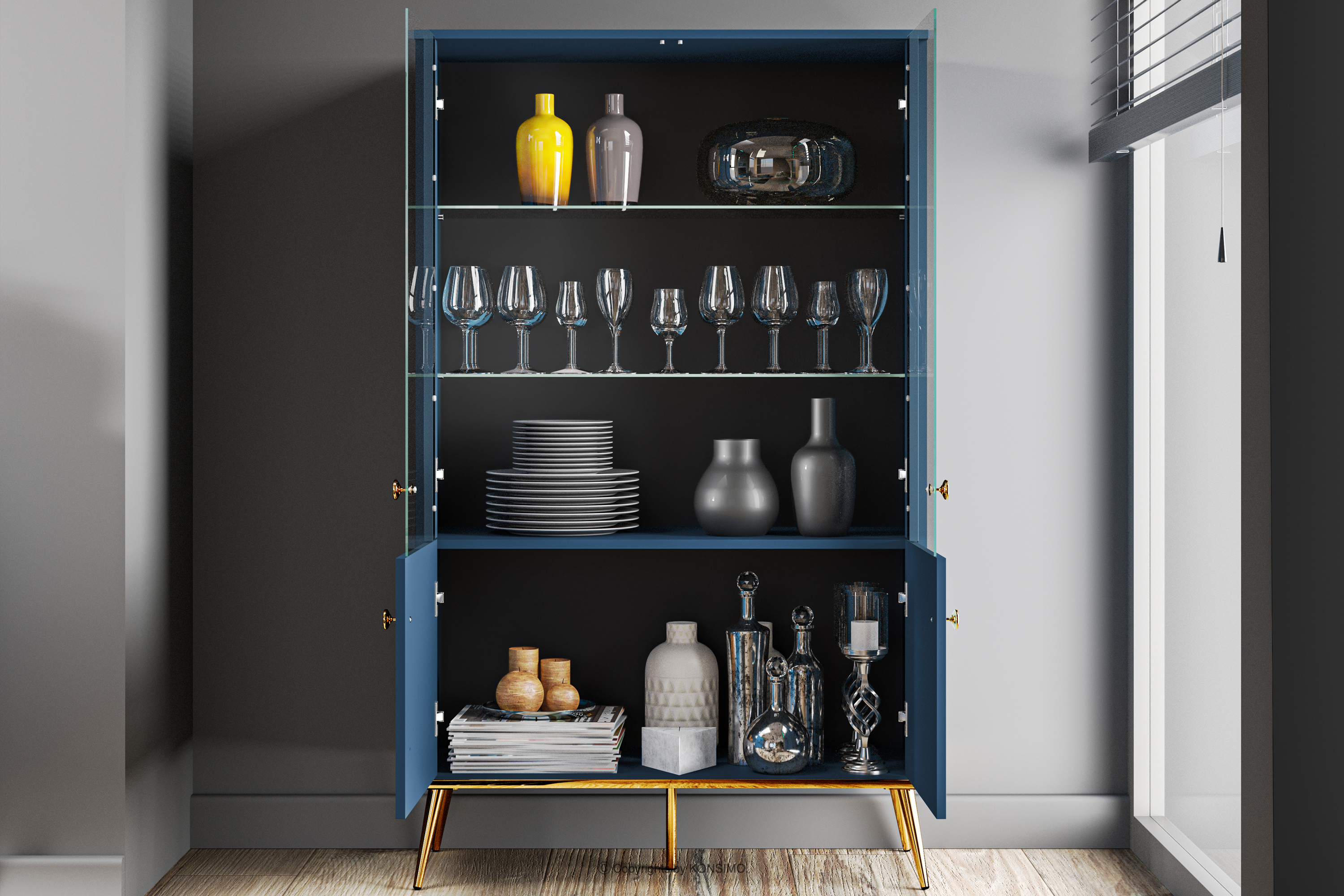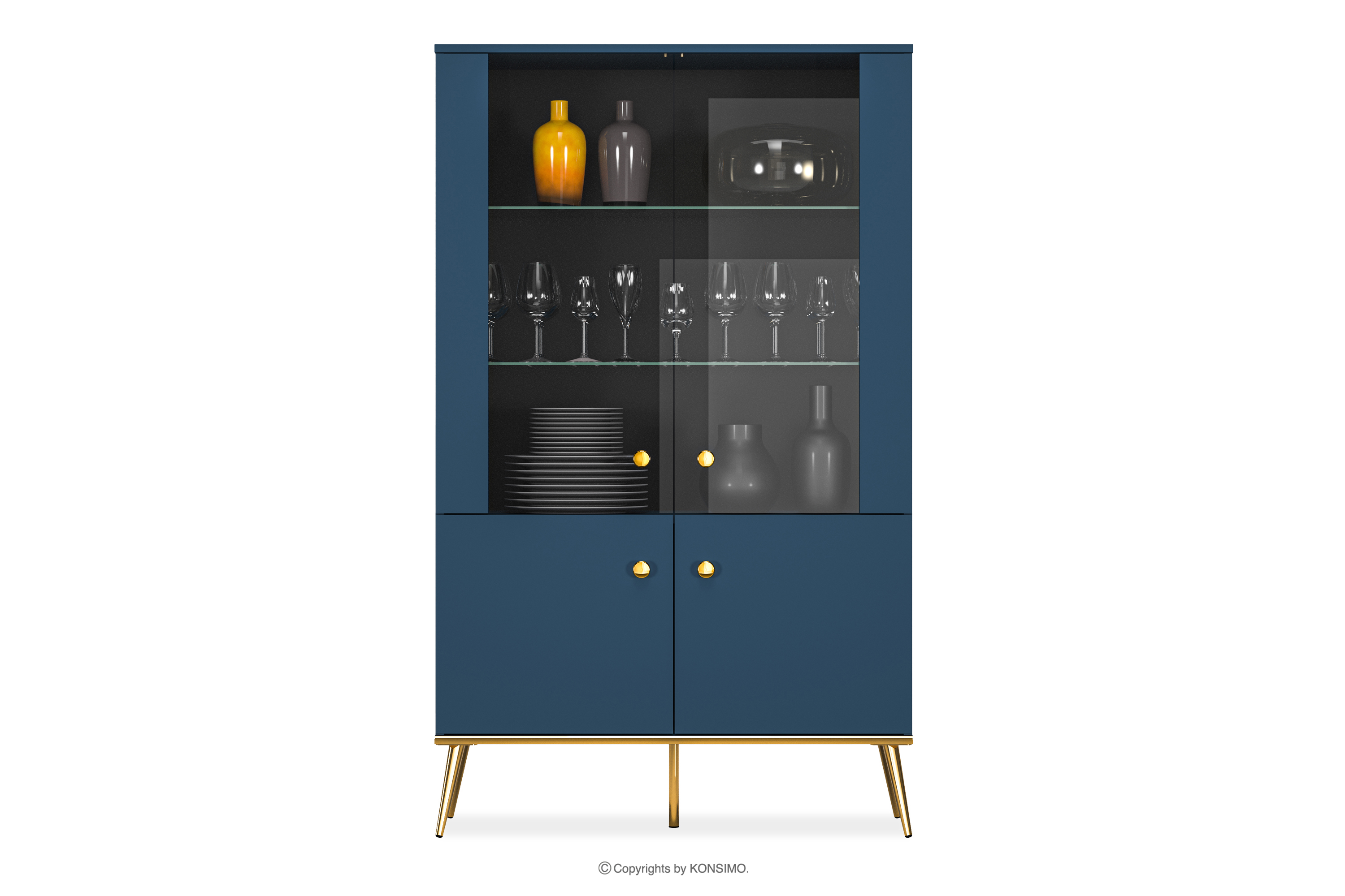 ARICIA zobacz całą kolekcję Granatowa witryna na wysokich złotych nogach- kolor granatowy