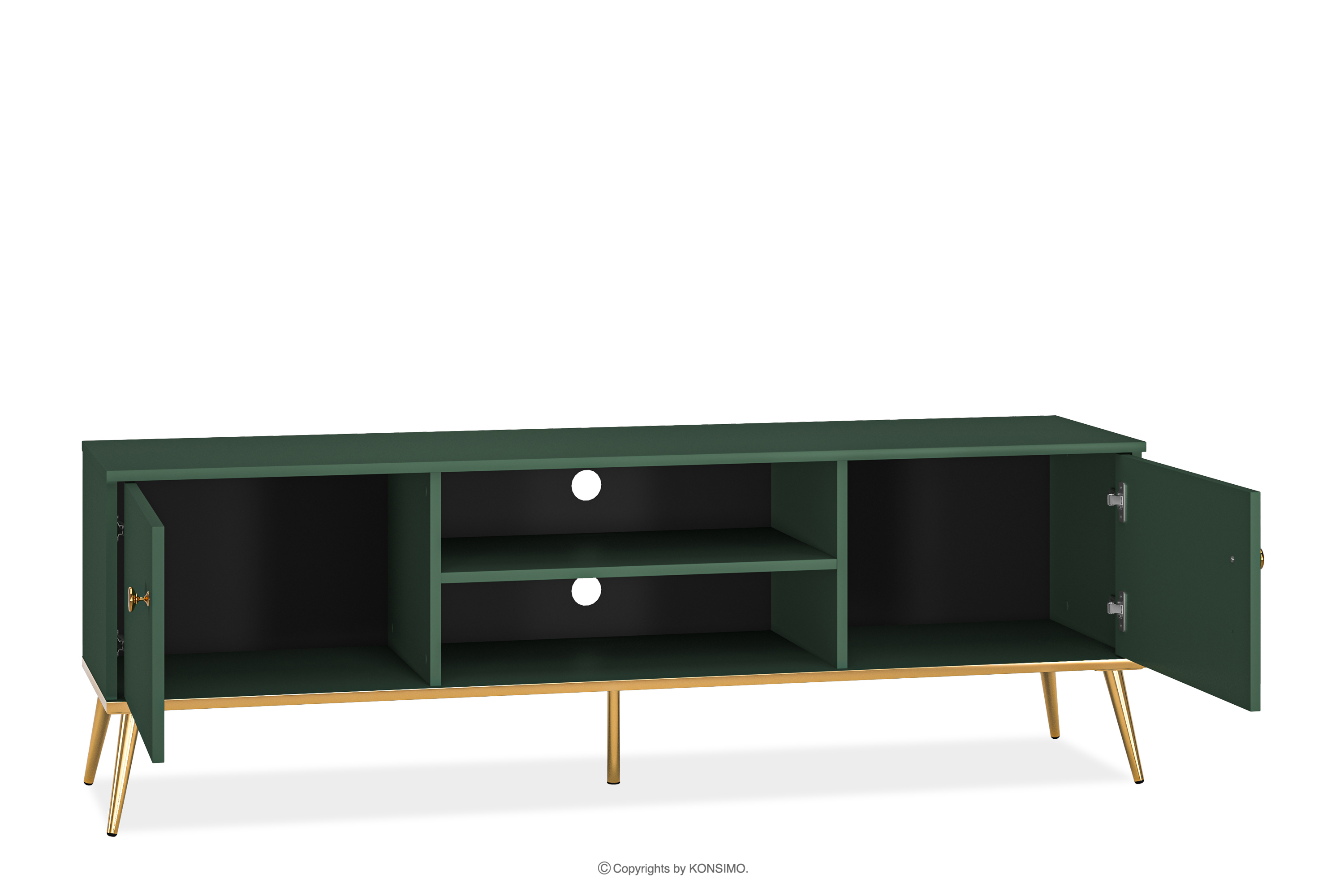 Zielona szafka RTV na wysokich złotych nogach ARICIA - kolor zielony