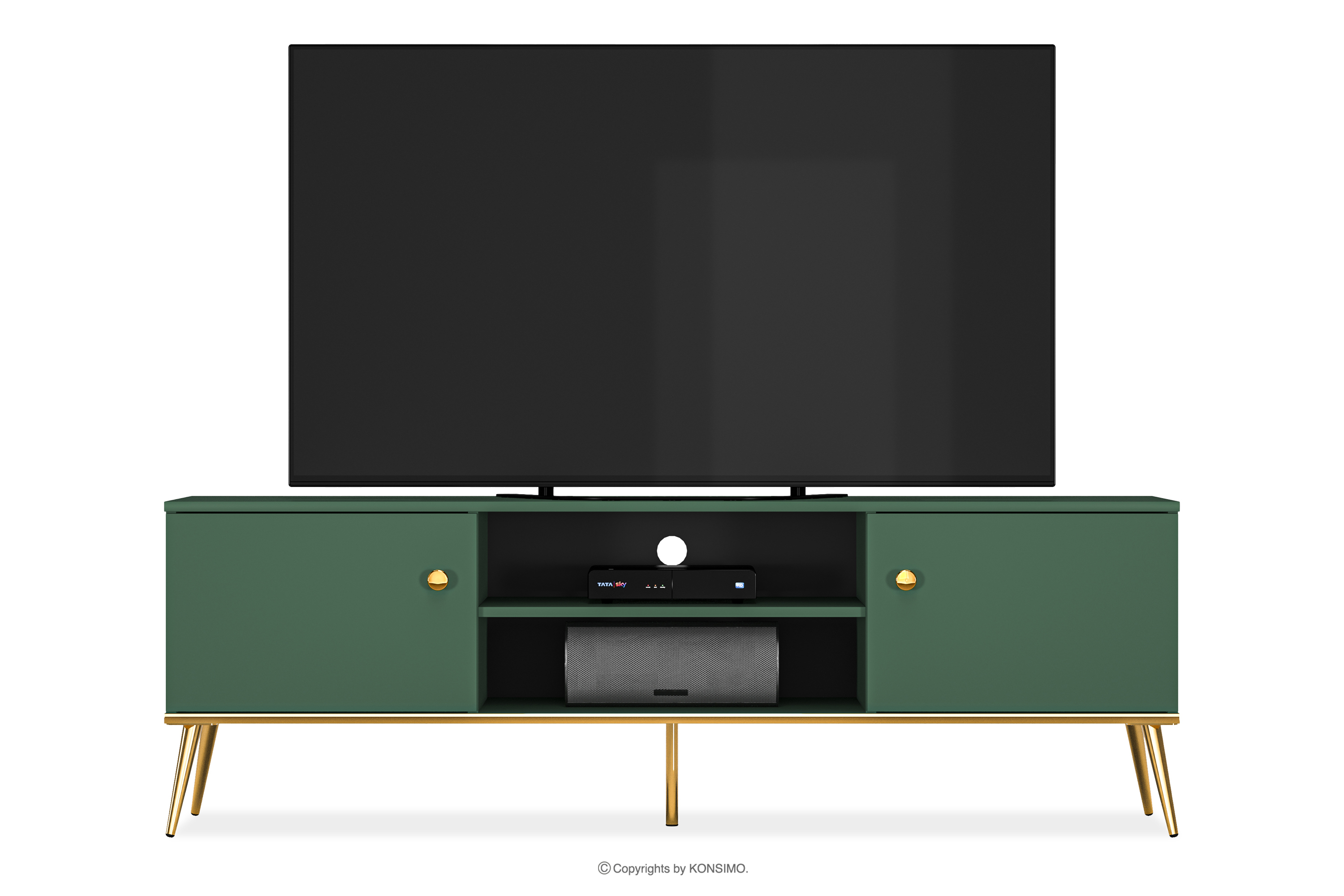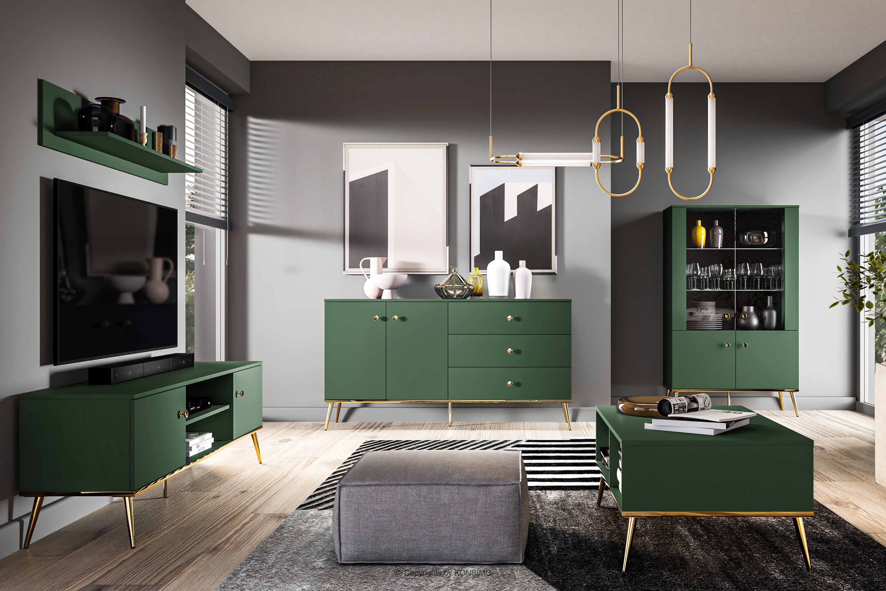 ARICIA zobacz całą kolekcję Zielona szafka RTV na wysokich złotych nogach- kolor zielony