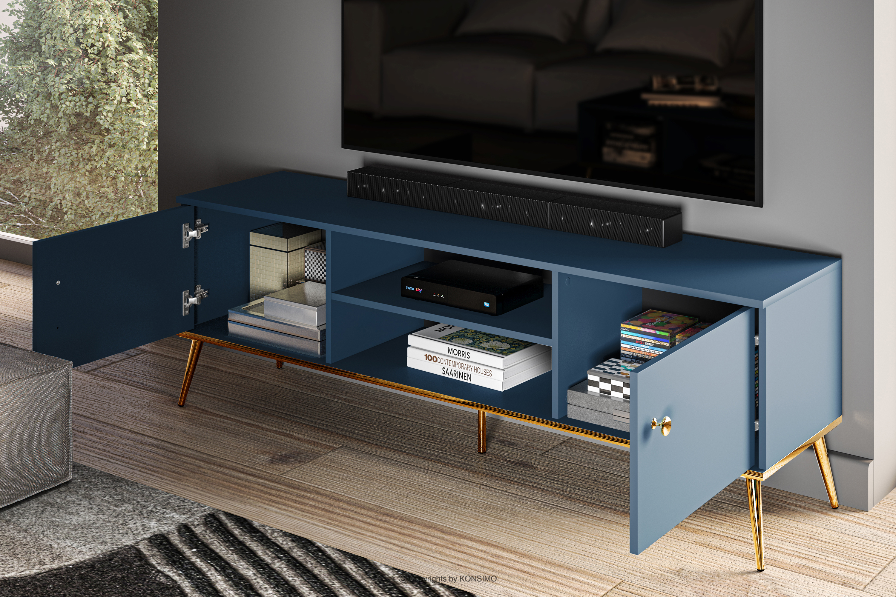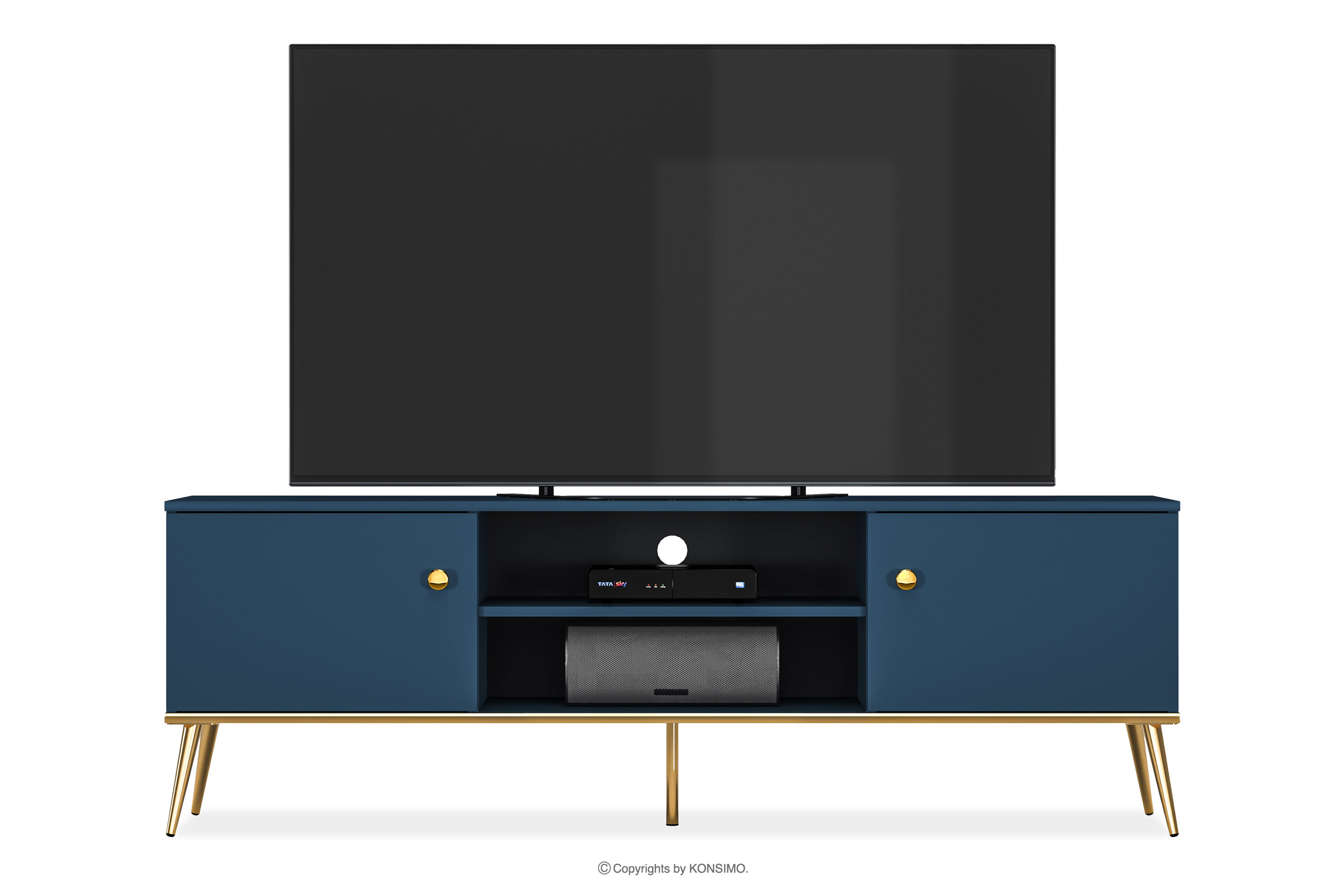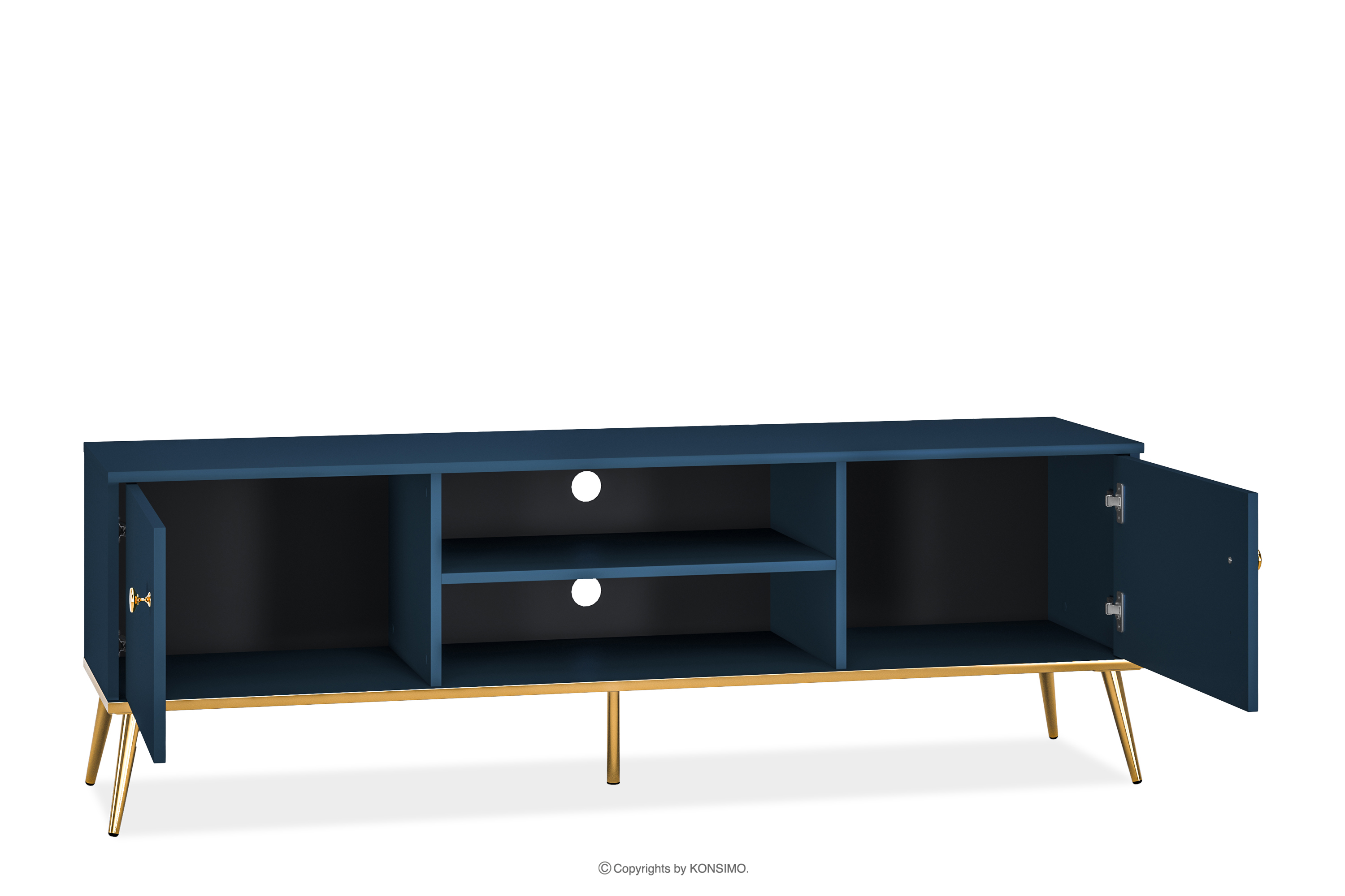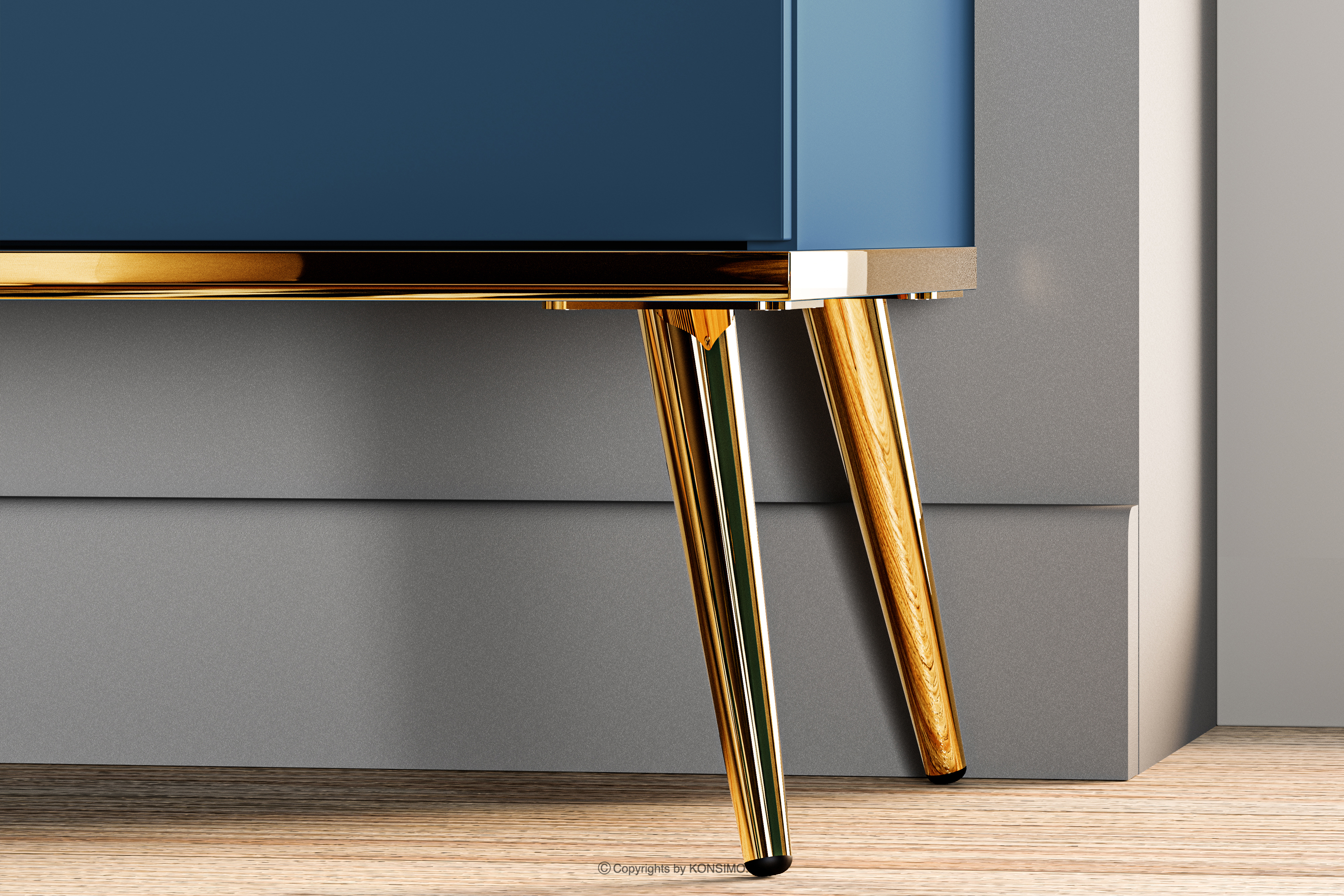 ARICIA zobacz całą kolekcję Granatowa szafka RTV na wysokich złotych nogach- kolor granatowy