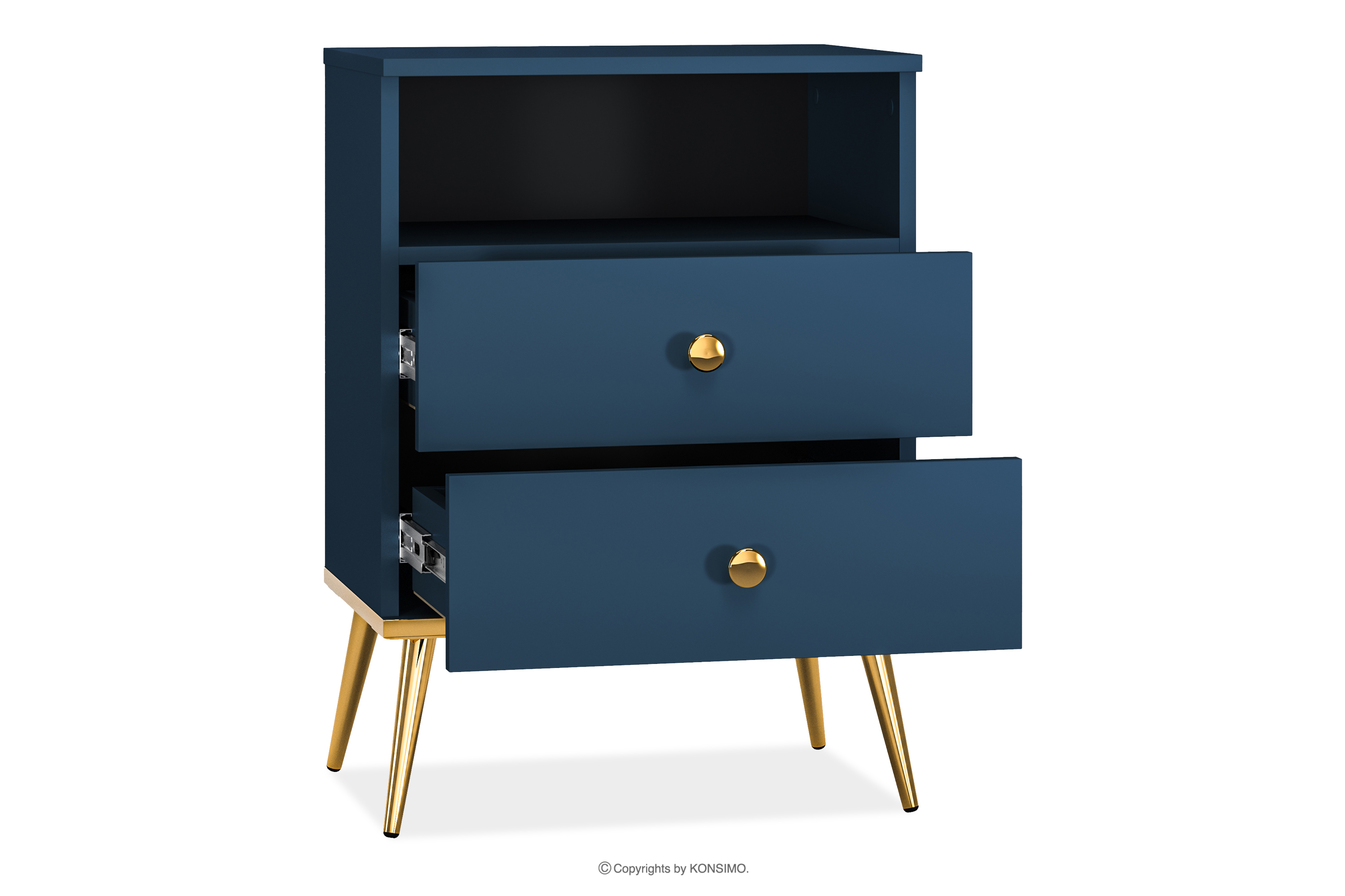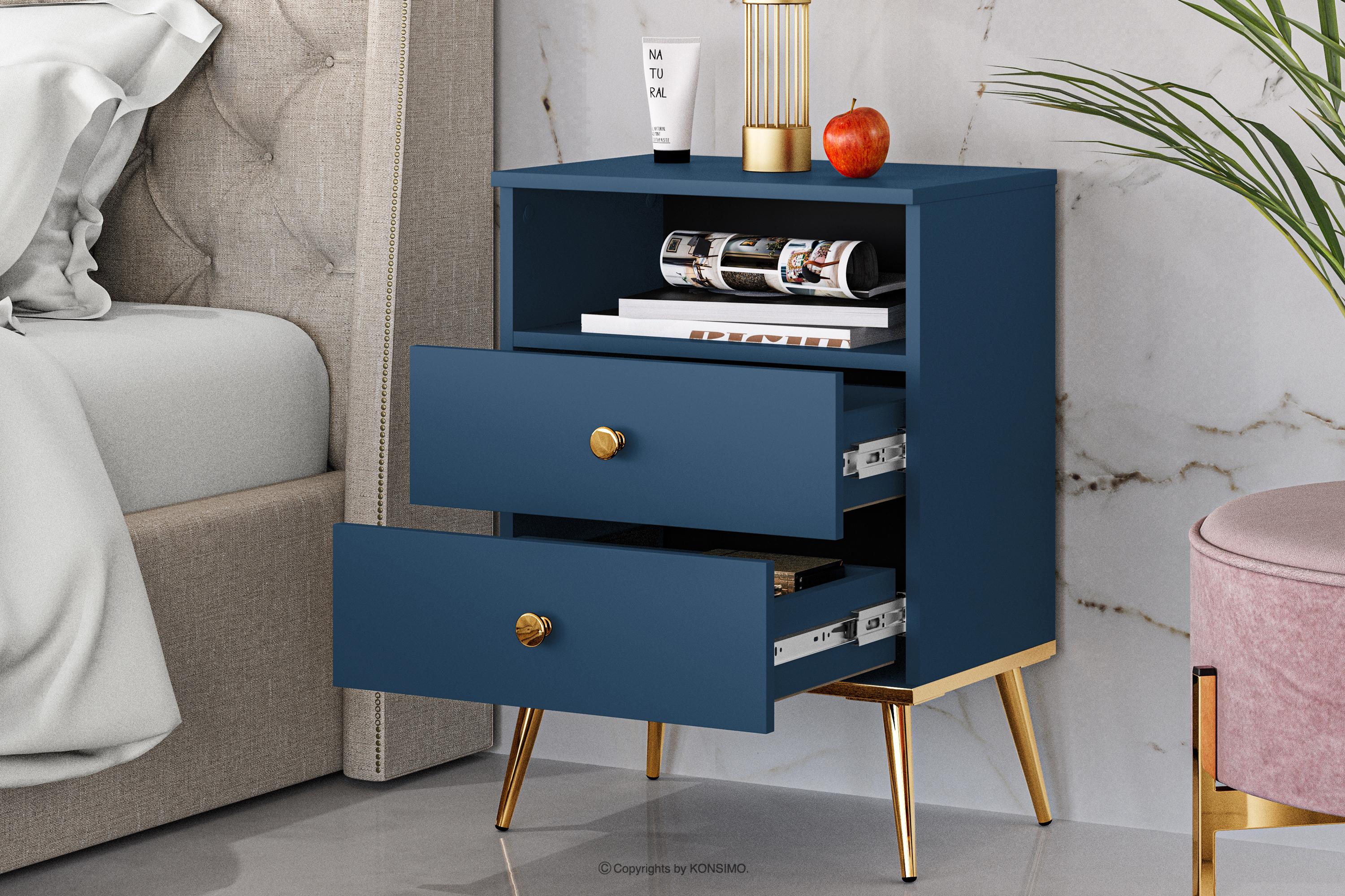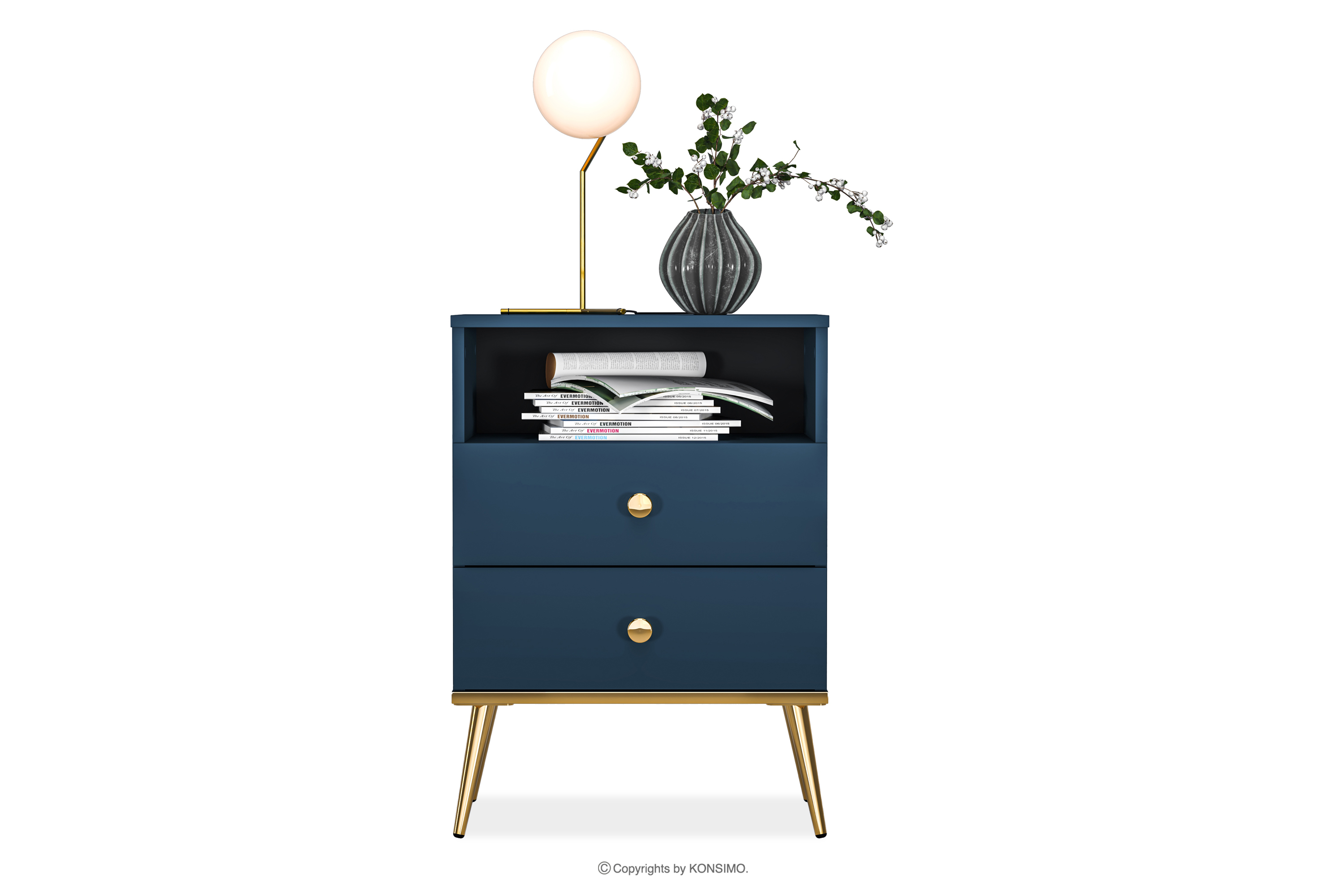 ARICIA zobacz całą kolekcję Granatowy stolik nocny na wysokich nogach- kolor granatowy