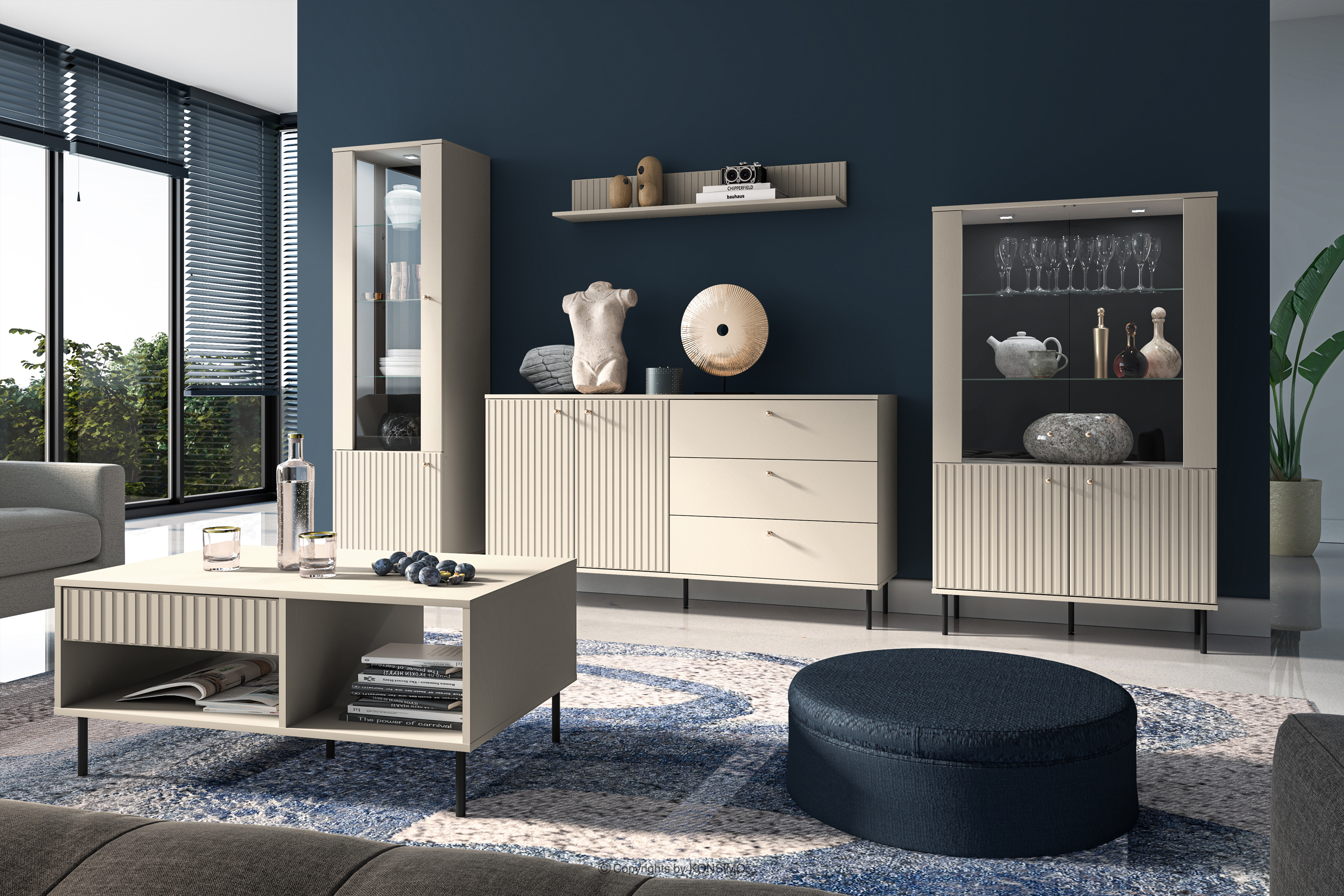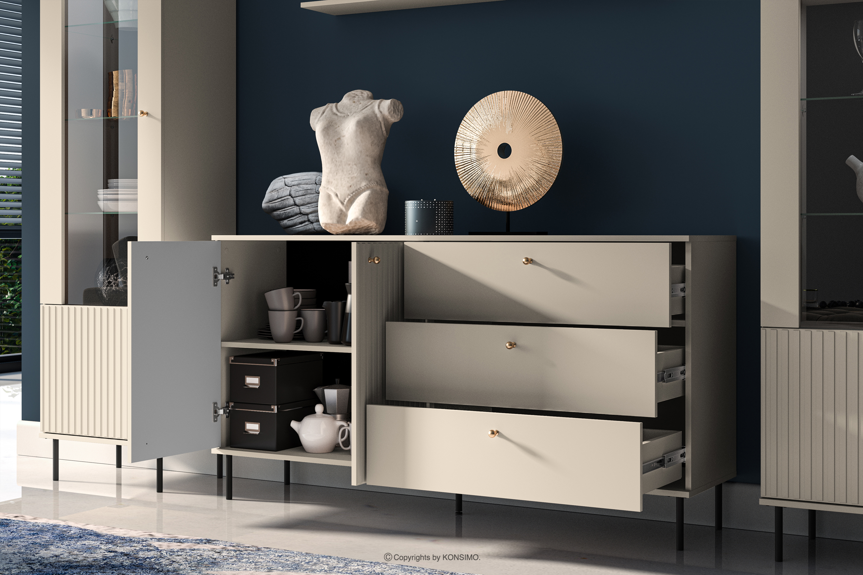 DROMA zobacz całą kolekcję Elegancka szeroka komoda w kolorze kremowym- kolor kremowy