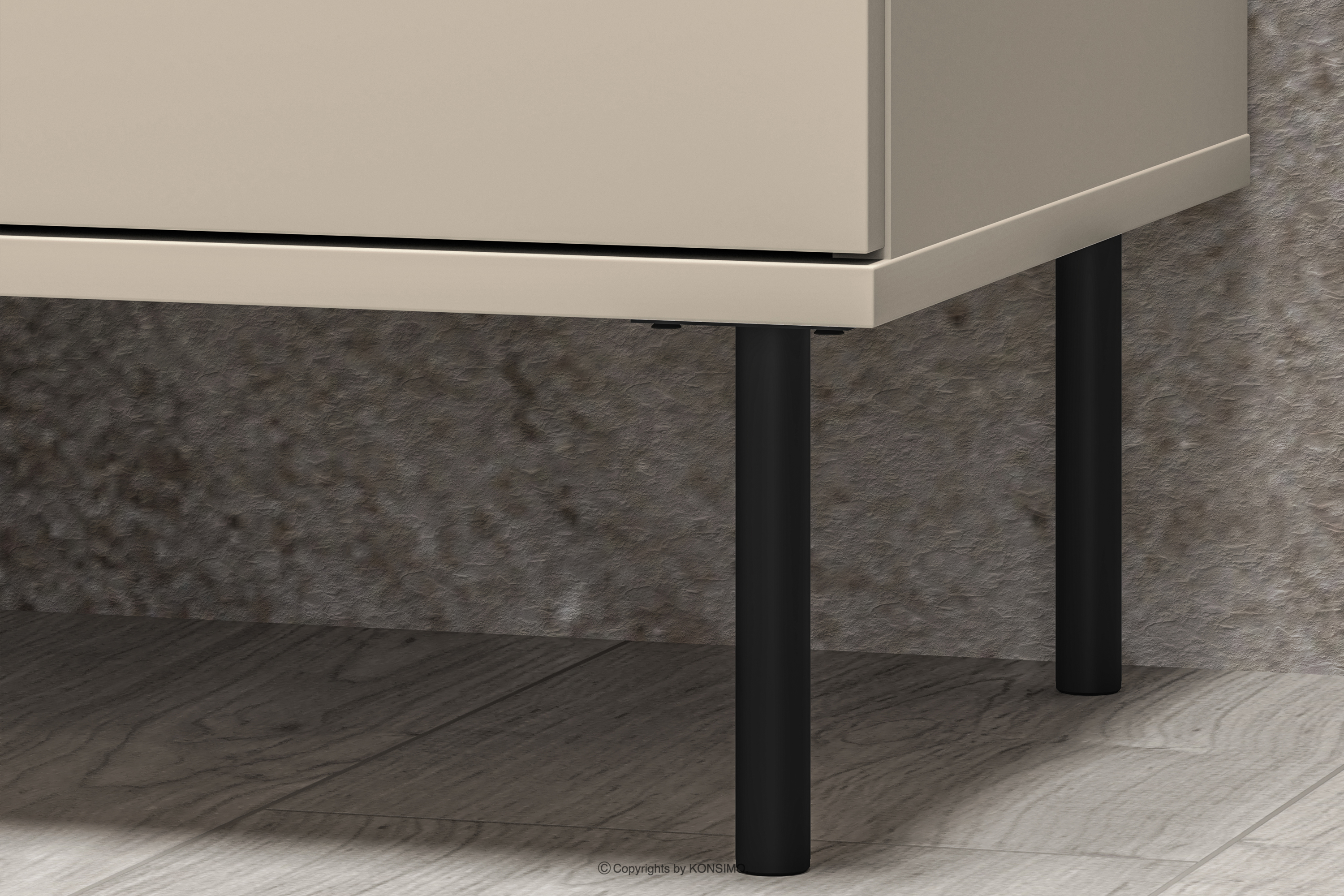 Elegancka komoda w kolorze kremowy wprowadzi do Twojego wnętrza subtelny akcent elegancji. Zaprojektowana z myślą o miłośnikach stylu eleganckiego i funkcjonalności, korpus z płyty laminowanej/MDF stanowi solidny fundament dla mebli. Czarne metalowe nóżki i złote uchwyty nadają meblowi subtelnej elegancji. Ale to jeszcze nie wszystko! Obrzeża ABS to nie tylko elegancki detal, ale także gwarancja odporności na uszkodzenia i wilgoć, sprawiając, że mebel nie tylko prezentuje się efektownie, ale również jest łatwy do utrzymania w czystości.