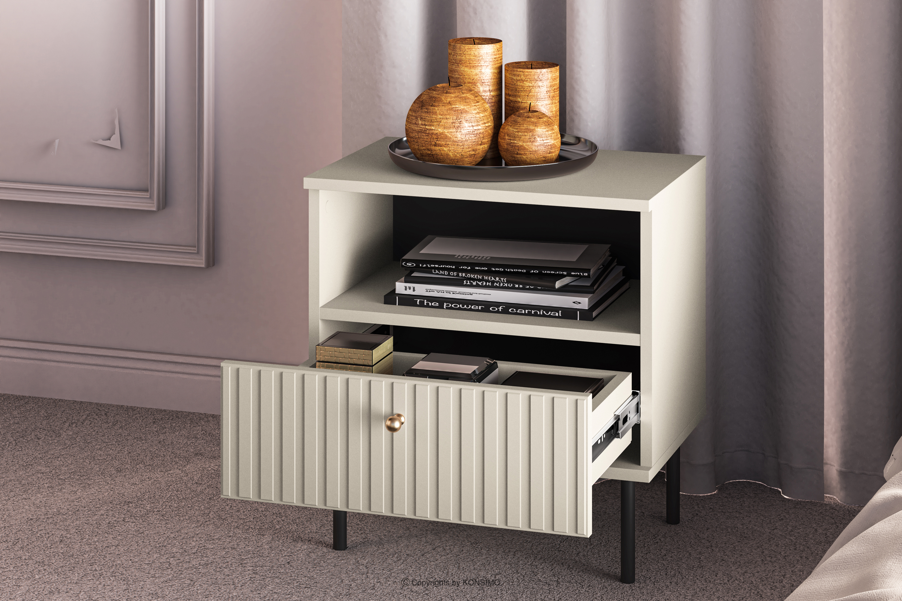 DROMA zobacz całą kolekcję Elegancki stolik nocny w kolorze kremowym- kolor kremowy