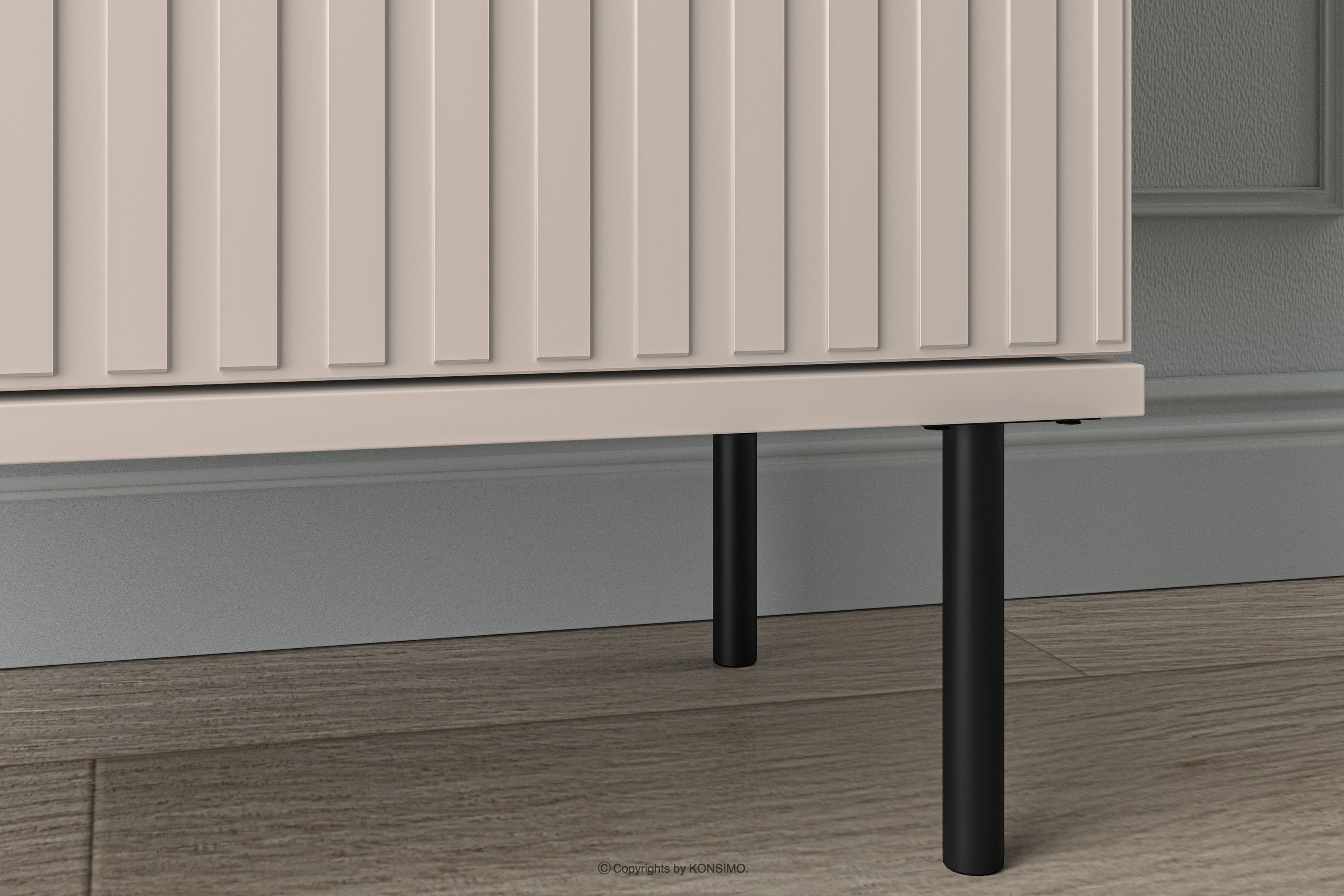 Elegancka szafa jednodrzwiowa w kolorze kremowym z ryflowaniem wprowadzi do Twojego wnętrza subtelny akcent elegancji. Zaprojektowana z myślą o miłośnikach stylu eleganckiego i funkcjonalności, korpus z płyty laminowanej/MDF stanowi solidny fundament dla mebli. Czarne metalowe nóżki i złote uchwyty nadają meblowi subtelnej elegancji. Ale to jeszcze nie wszystko! Obrzeża ABS to nie tylko elegancki detal, ale także gwarancja odporności na uszkodzenia i wilgoć, sprawiając, że mebel nie tylko prezentuje się efektownie, ale również jest łatwy do utrzymania w czystości.