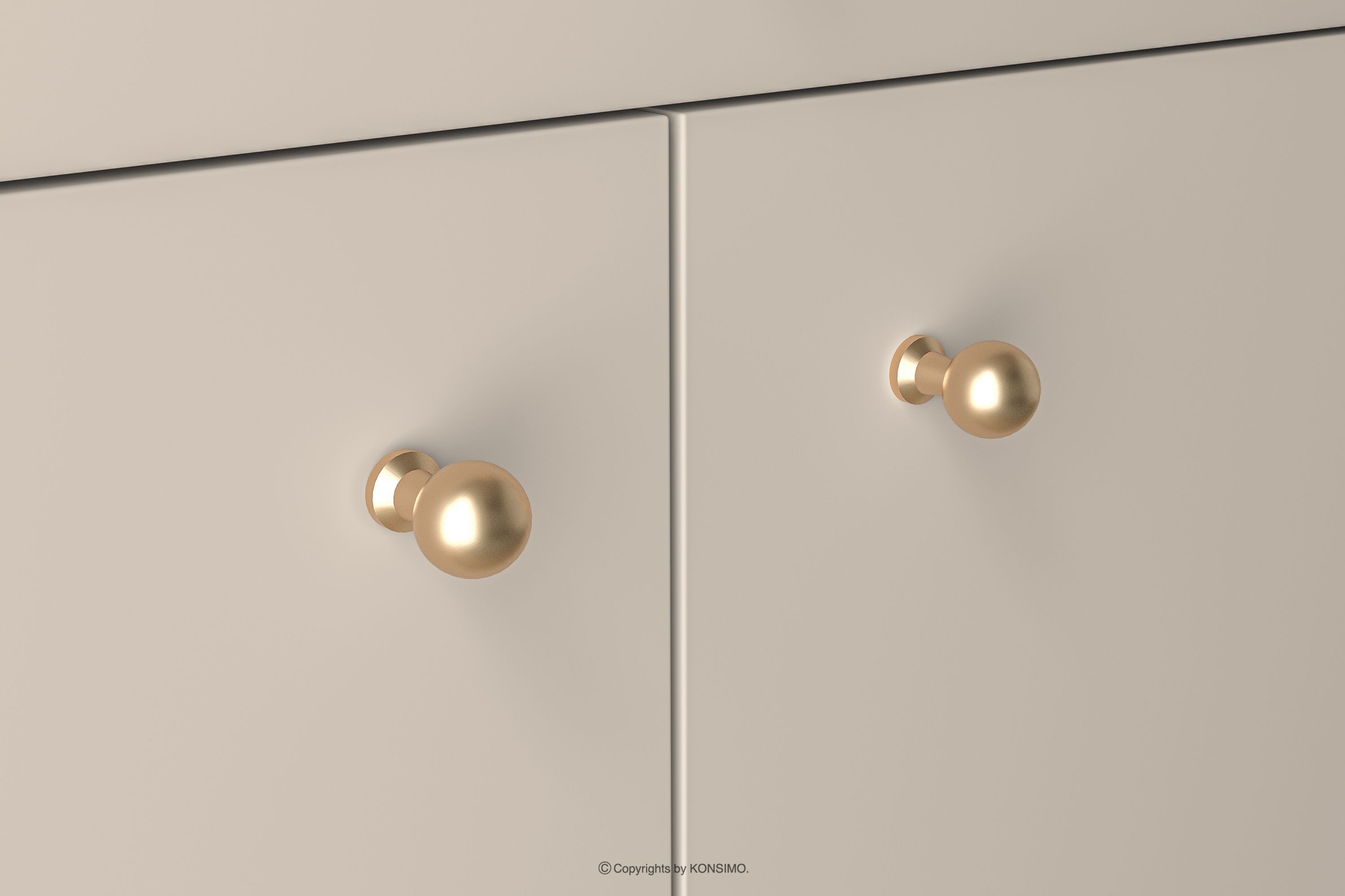 Szafka na buty w kolorze kremowym z ryflowaniem wprowadzi do Twojego wnętrza subtelny akcent elegancji. Zaprojektowana z myślą o miłośnikach stylu eleganckiego i funkcjonalności, korpus z płyty laminowanej/MDF stanowi solidny fundament dla mebli. Czarne metalowe nóżki i złote uchwyty nadają meblowi subtelnej elegancji. Ale to jeszcze nie wszystko! Obrzeża ABS to nie tylko elegancki detal, ale także gwarancja odporności na uszkodzenia i wilgoć, sprawiając, że mebel nie tylko prezentuje się efektownie, ale również jest łatwy do utrzymania w czystości.