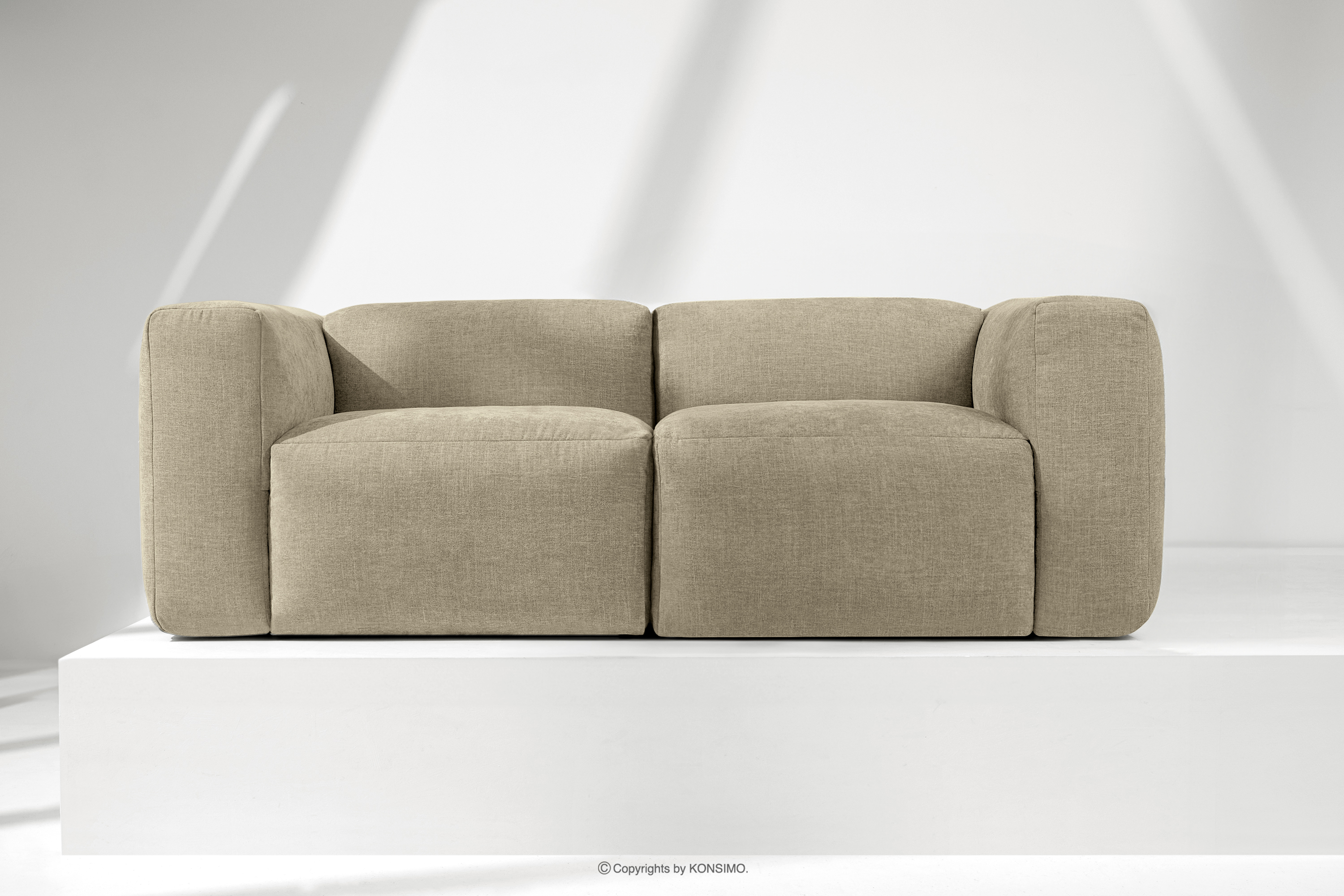 BUFFO zobacz całą kolekcję Sofa boho modułowa dwuosobowa w tkaninie plecionej piaskowa- kolor piaskowy