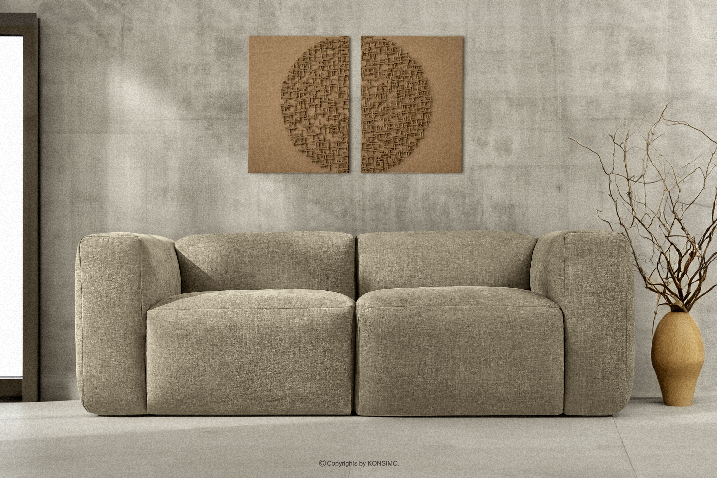 dla produktu Sofa boho modułowa dwuosobowa w tkaninie plecionej piaskowa
