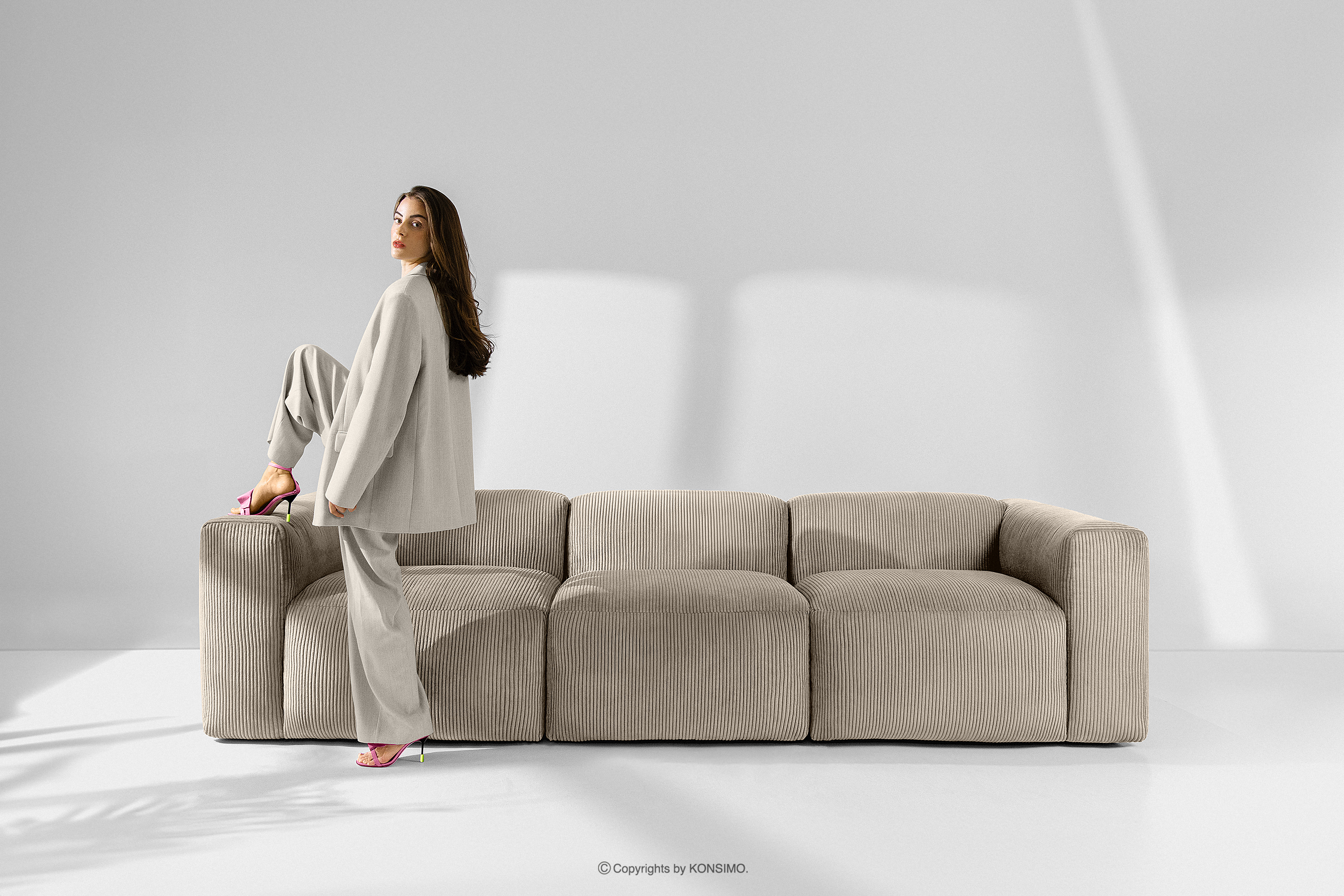 BUFFO zobacz całą kolekcję Sofa modułowa dwuosobowa w tkaninie sztruks beżowa- kolor beżowy