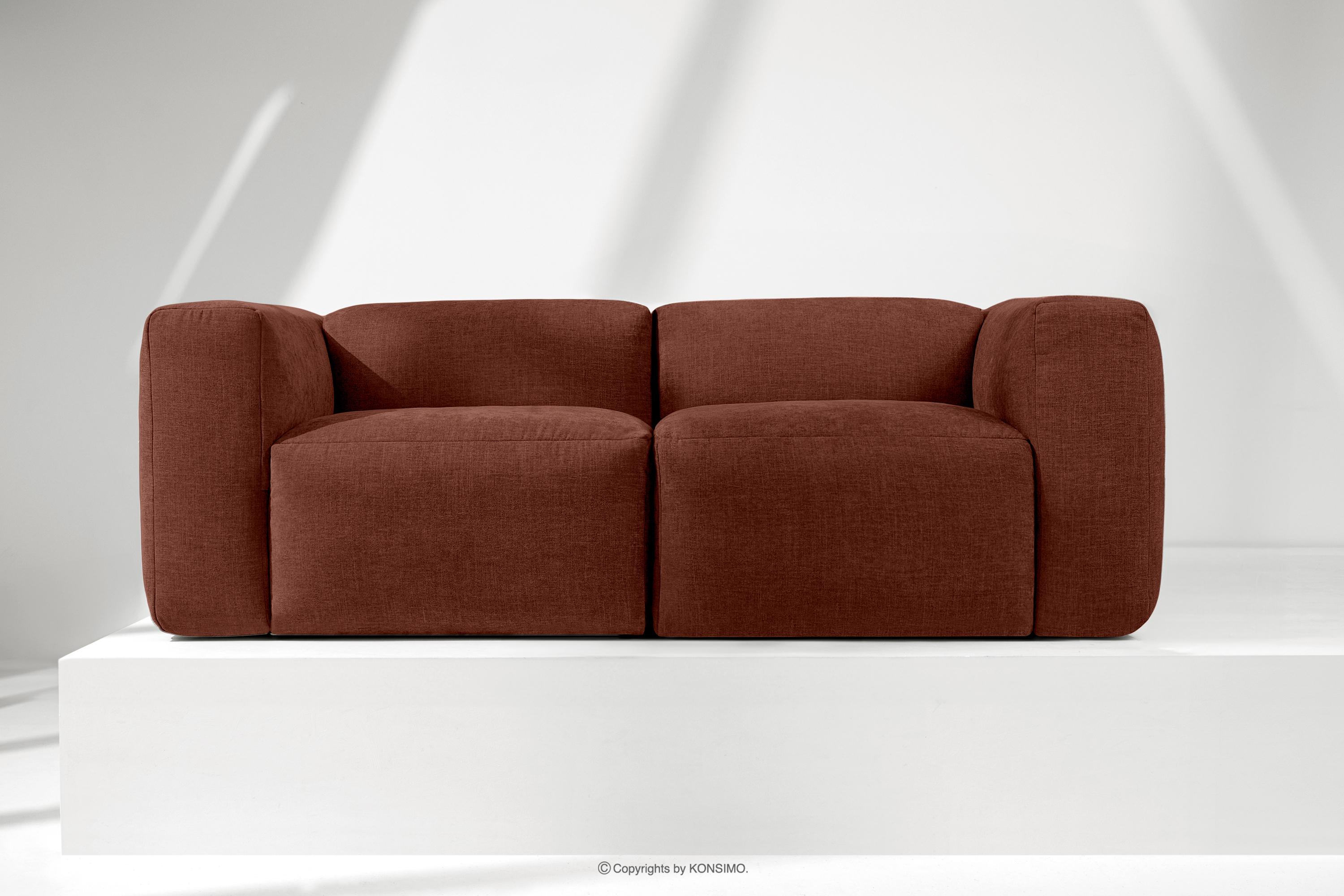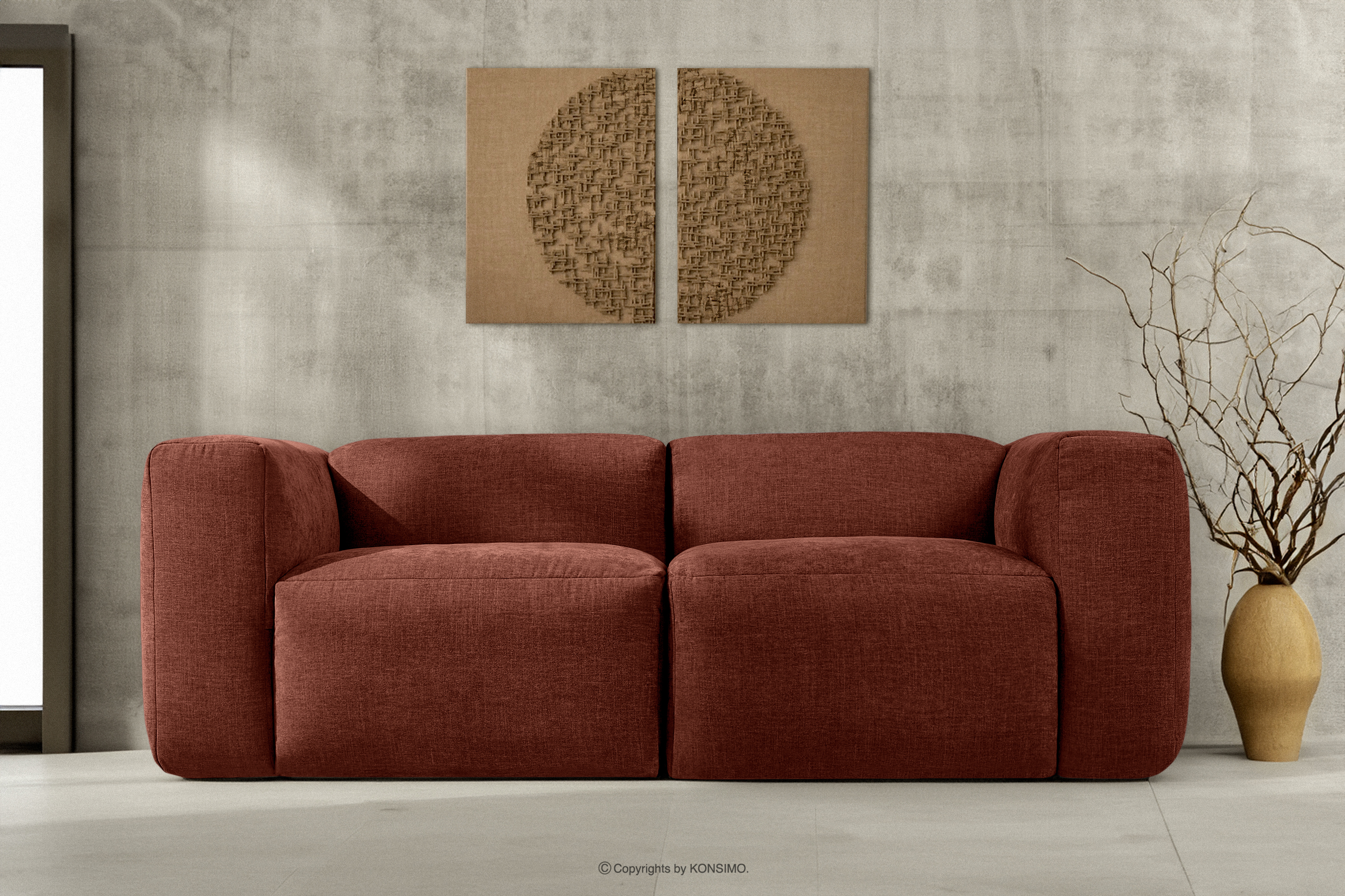 BUFFO zobacz całą kolekcję Sofa boho modułowa dwuosobowa w tkaninie plecionej pomarańczowa- kolor pomarańczowy