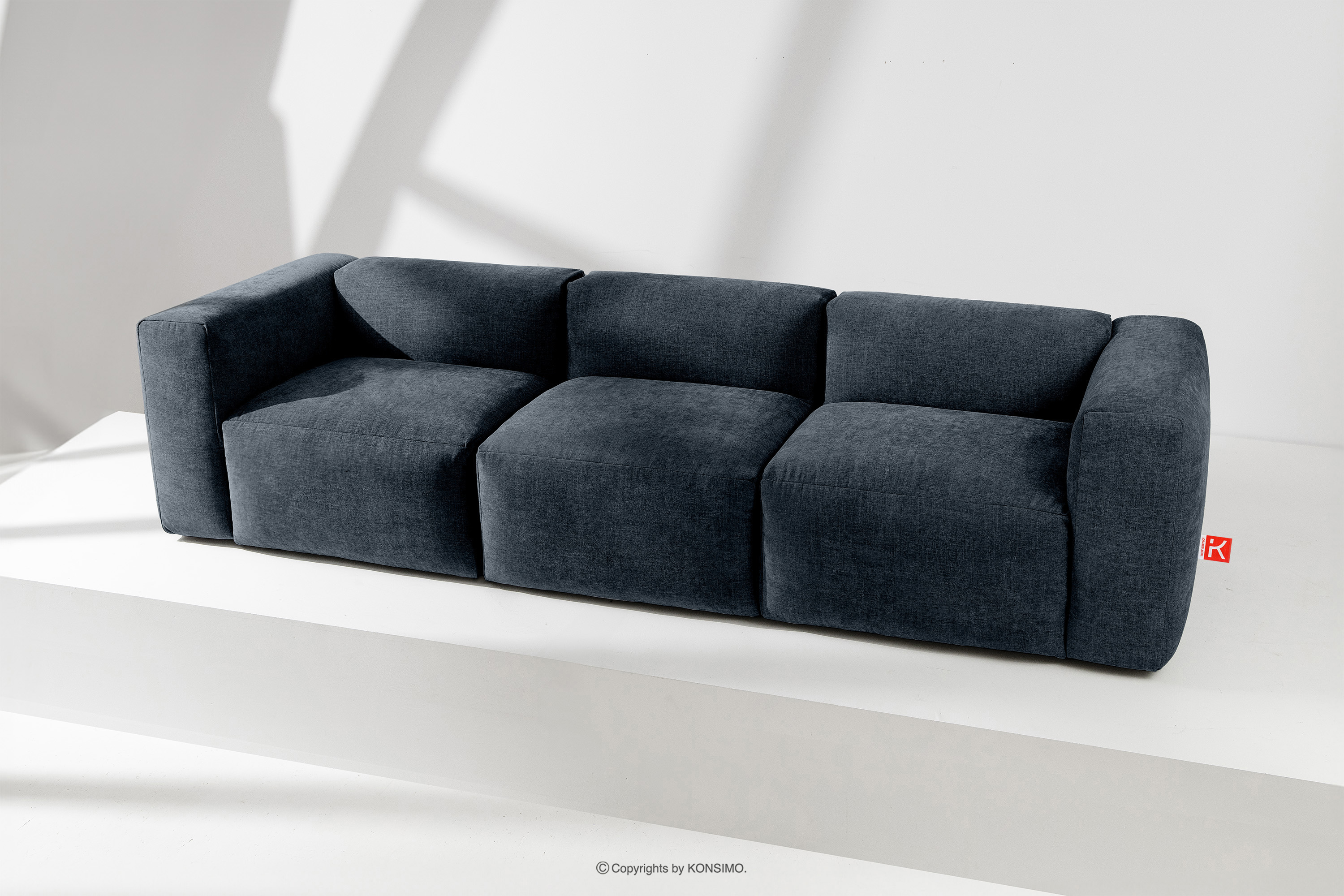 BUFFO Sofa 3 boho modułowa w tkaninie plecionej ciemny niebieski