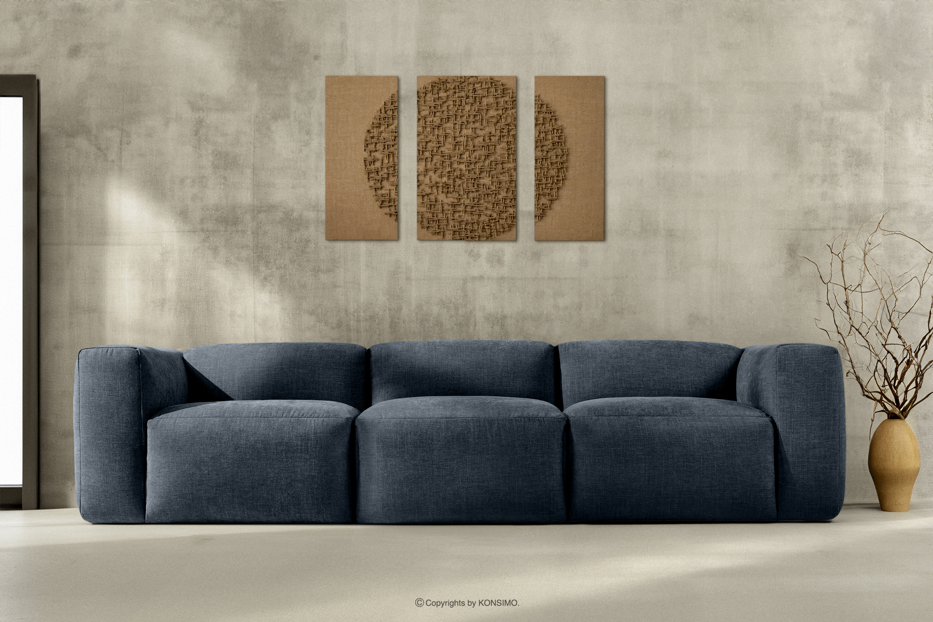 Sofa 3 boho modułowa w tkaninie plecionej ciemny niebieski BUFFO - kolor ciemny niebieski
