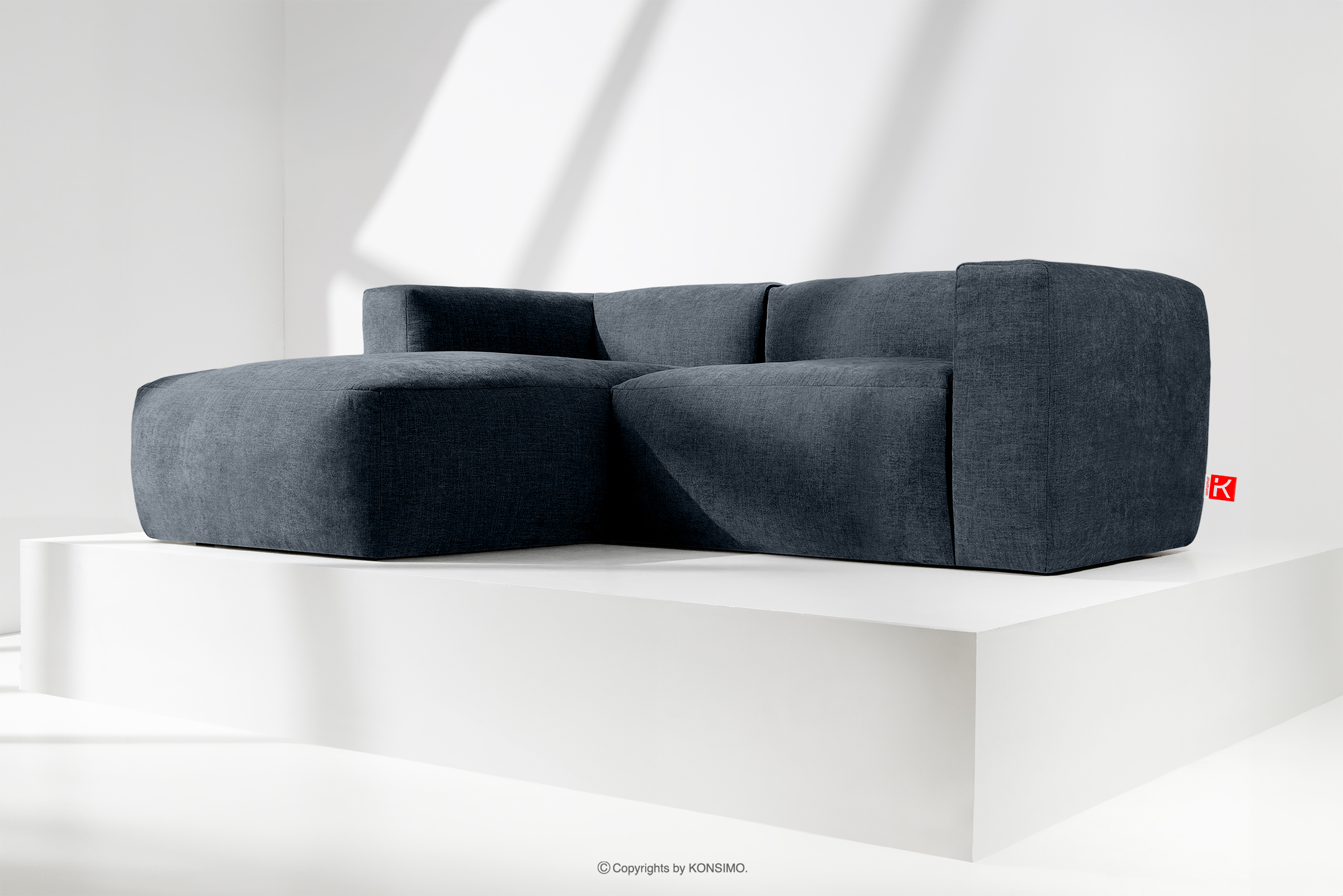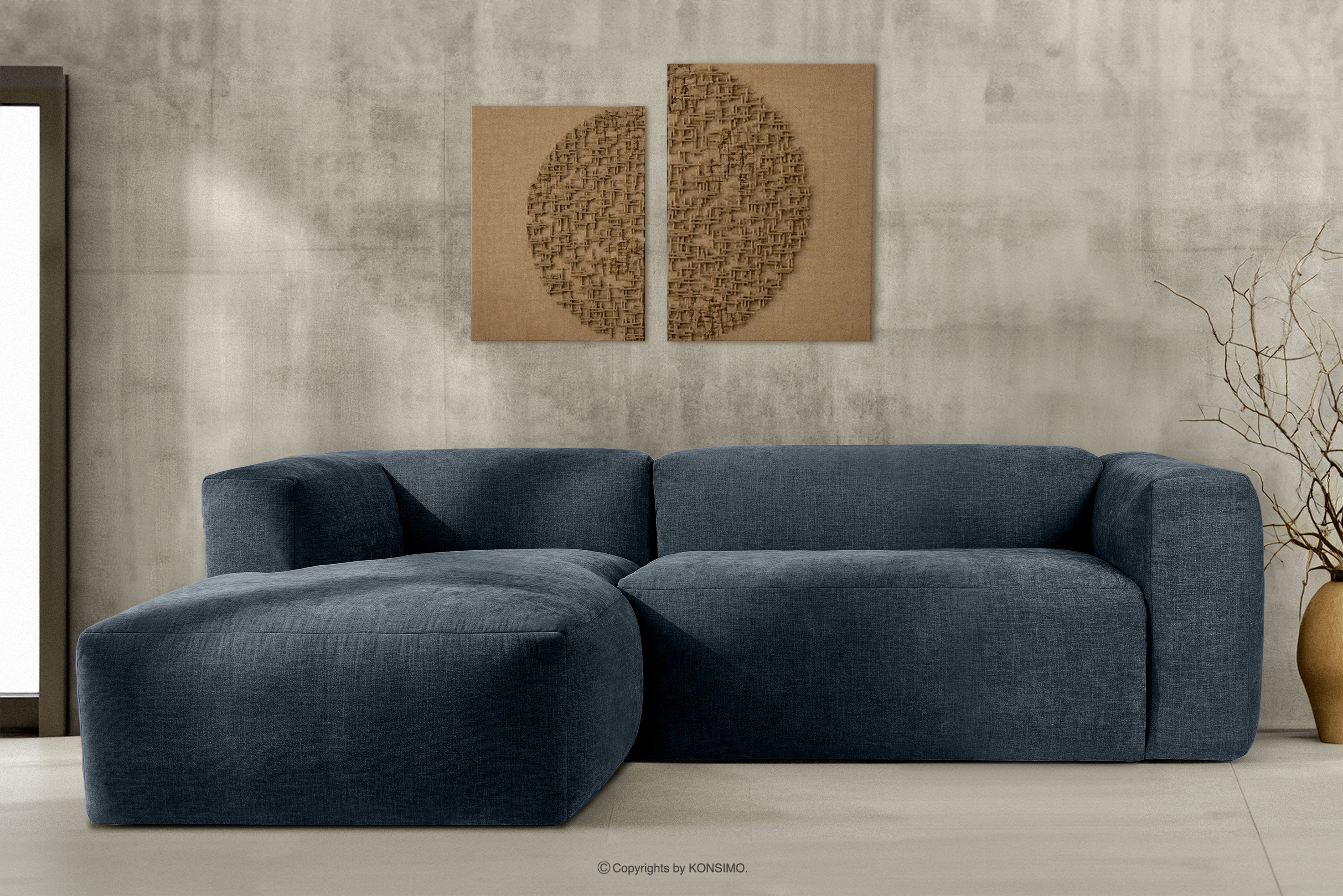 BUFFO Narożnik modułowy do salonu w tkaninie plecionej ciemny niebieski lewy