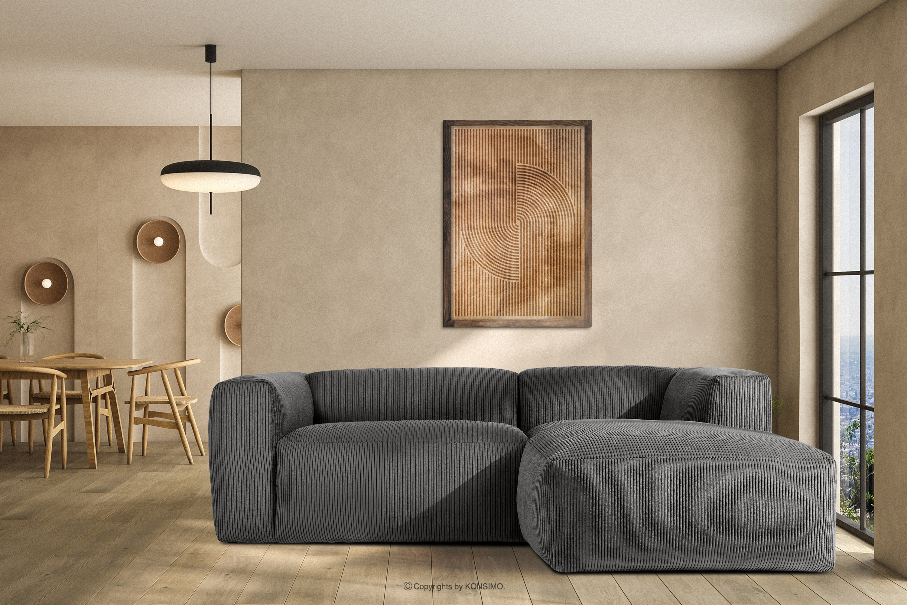 BUFFO zobacz całą kolekcję Narożnik modułowy do salonu w tkaninie sztruks szary prawy- kolor szary