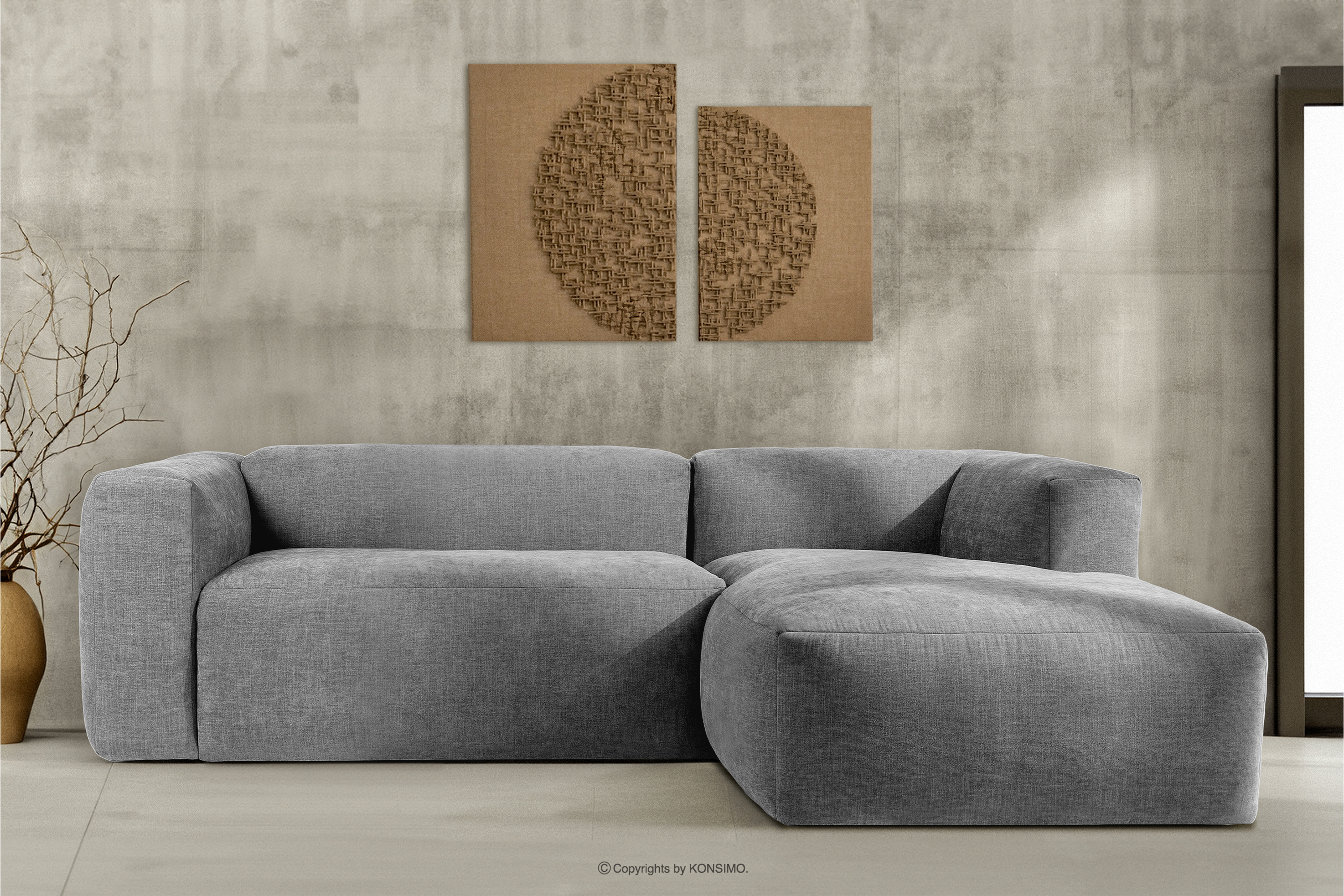 BUFFO zobacz całą kolekcję Narożnik modułowy do salonu w tkaninie plecionej jasny popielaty prawy- kolor jasny popielaty