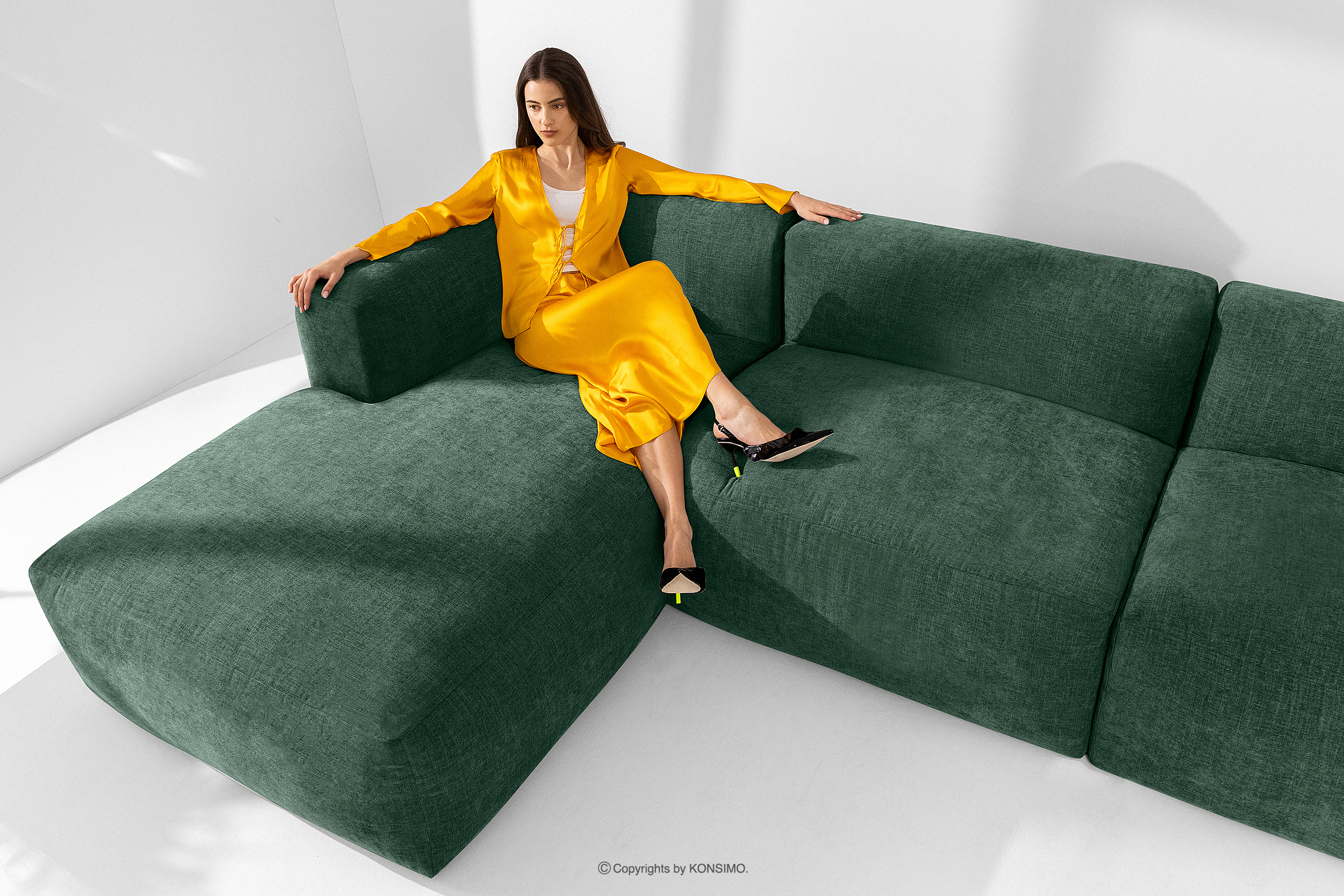 BUFFO zobacz całą kolekcję Narożnik modułowy do salonu w tkaninie plecionej morski prawy- kolor morski