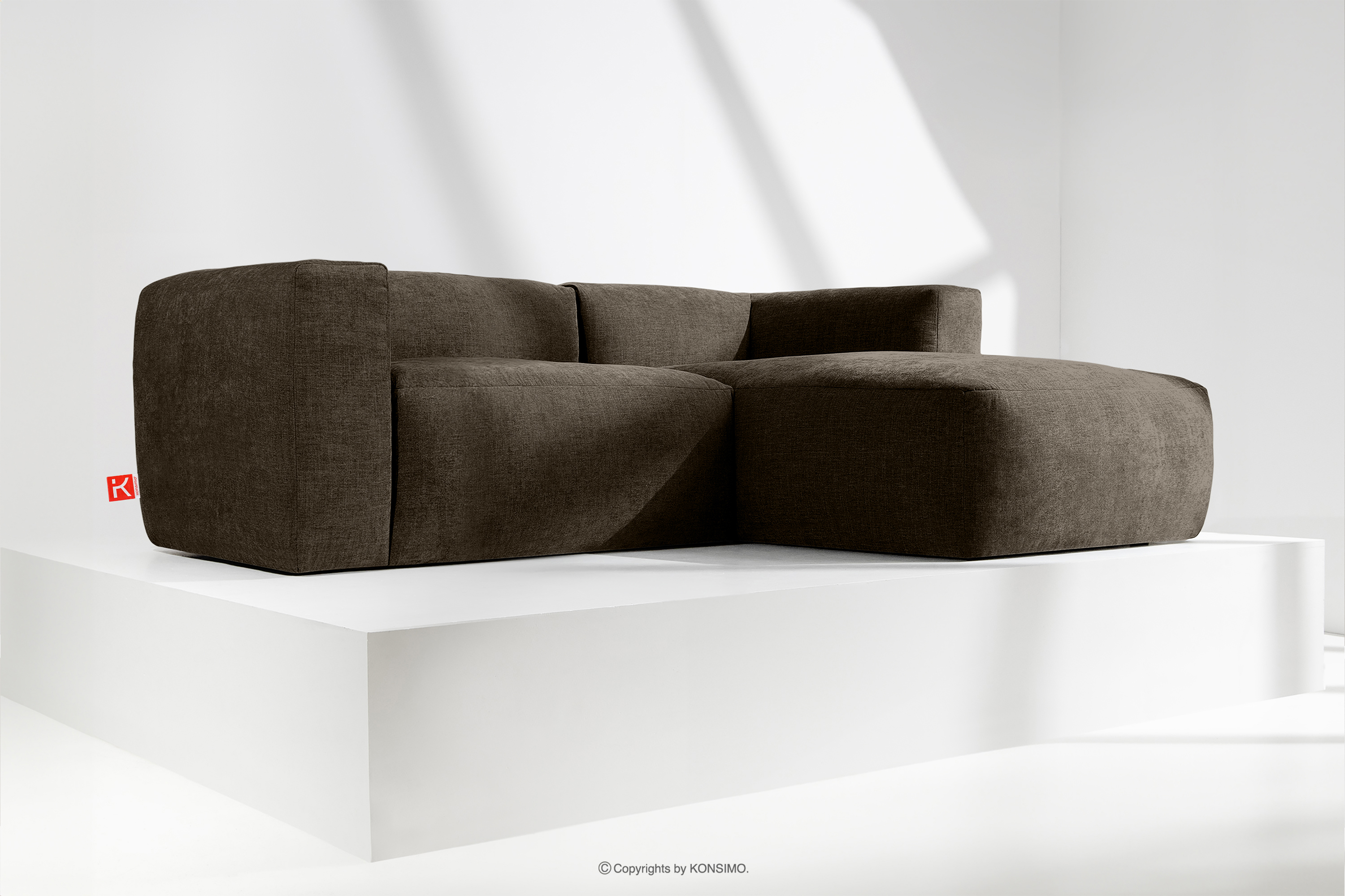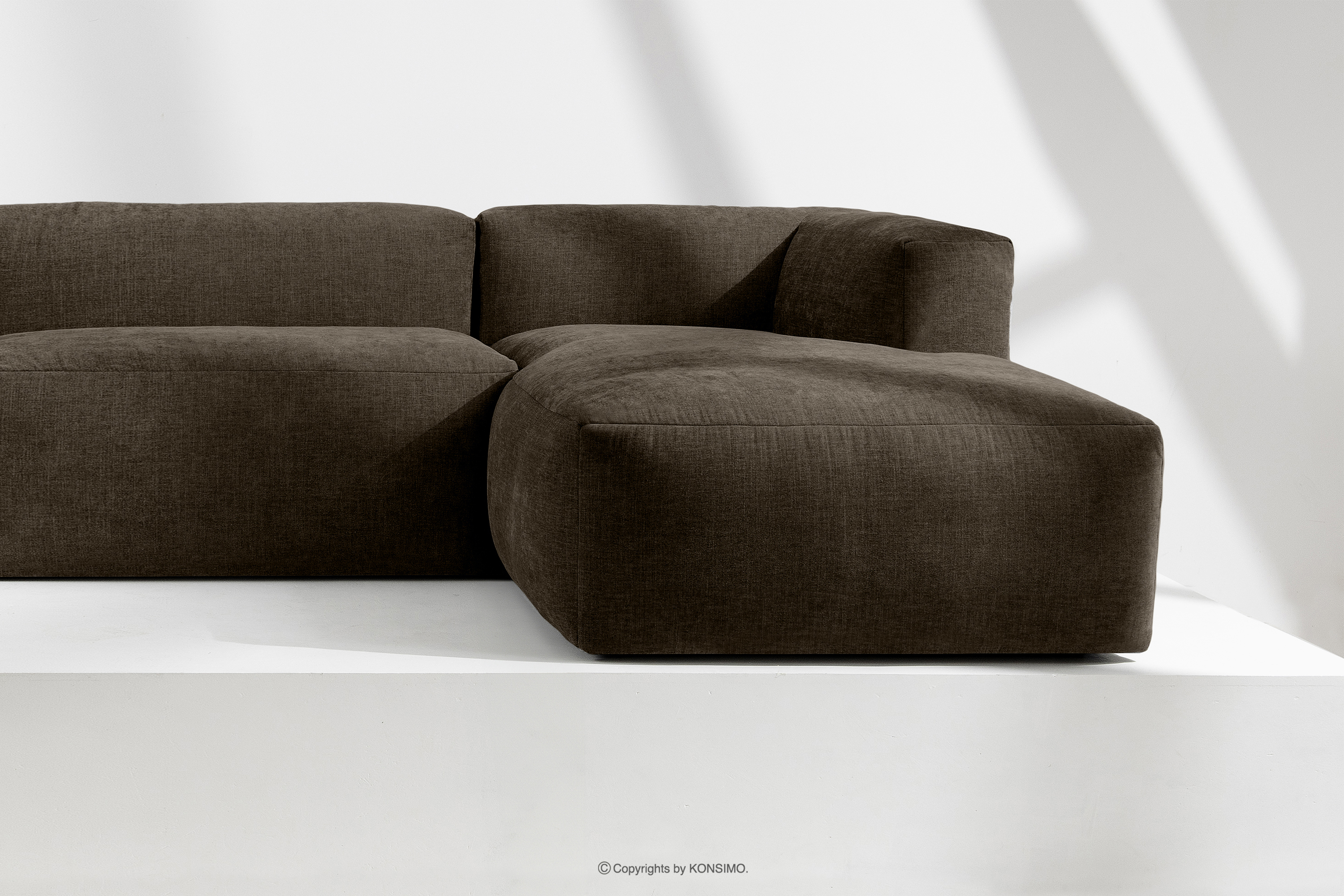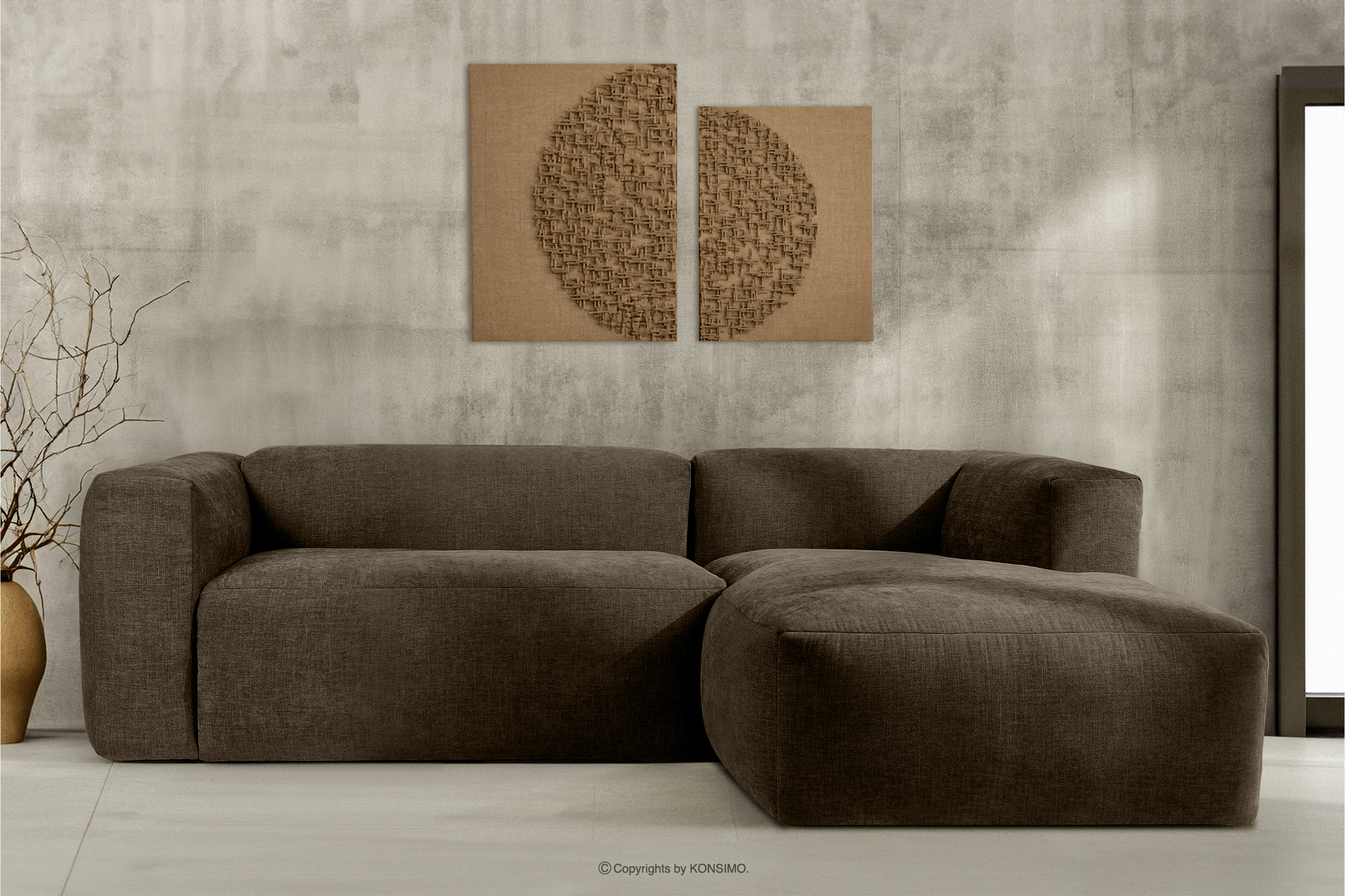 BUFFO zobacz całą kolekcję Narożnik modułowy do salonu w tkaninie plecionej brązowy prawy- kolor brązowy