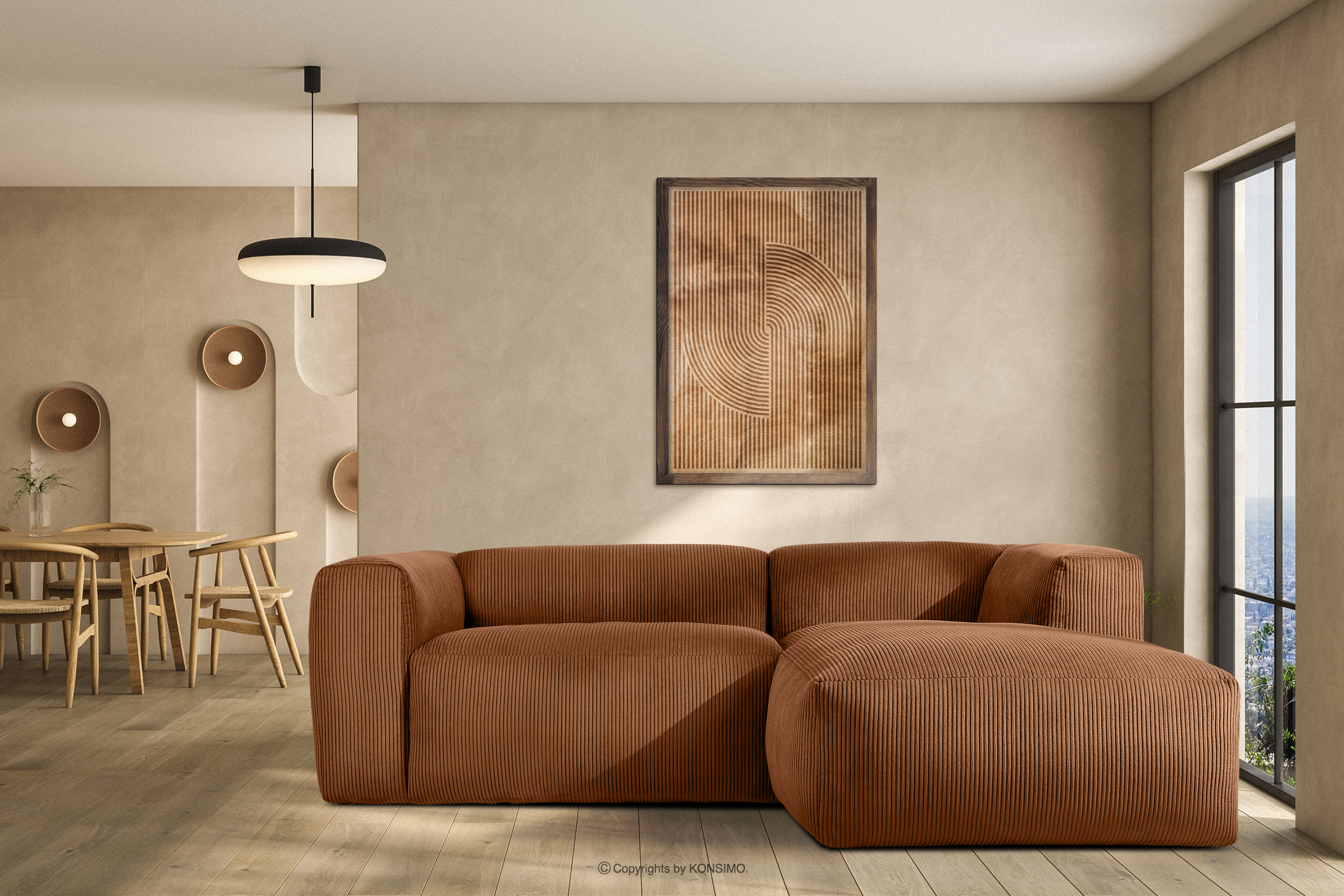 dla produktu Narożnik modułowy do salonu w tkaninie sztruks rudy prawy