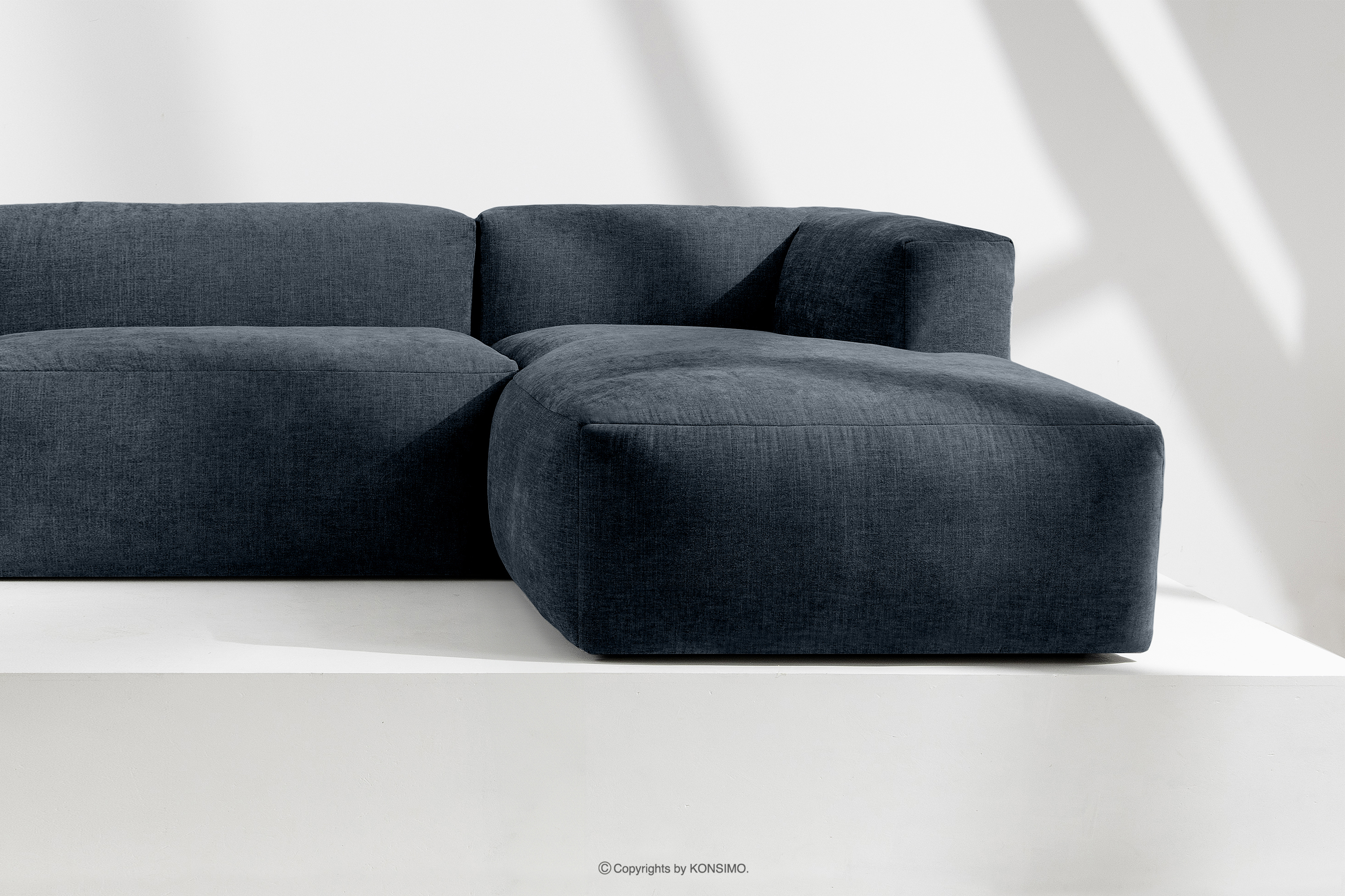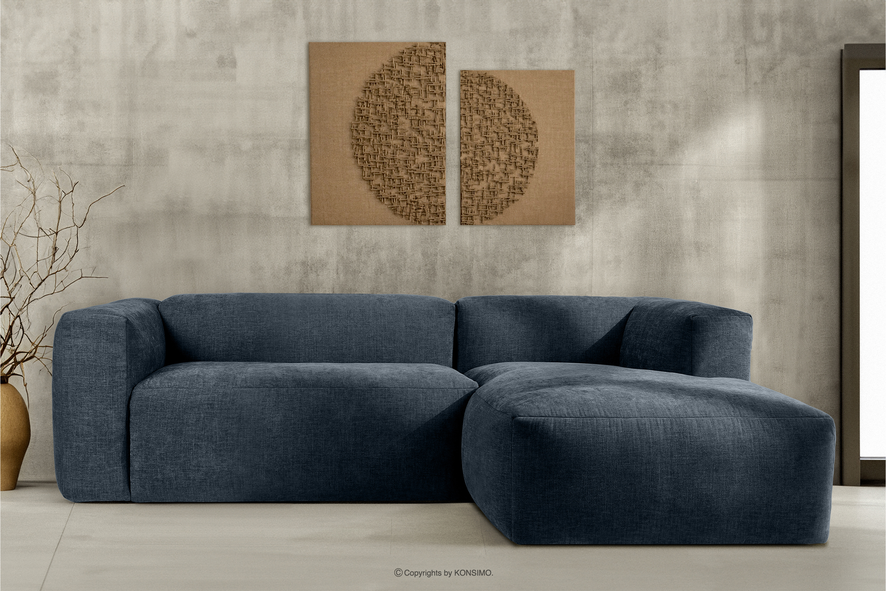 BUFFO zobacz całą kolekcję Narożnik modułowy do salonu w tkaninie plecionej ciemny niebieski prawy- kolor ciemny niebieski