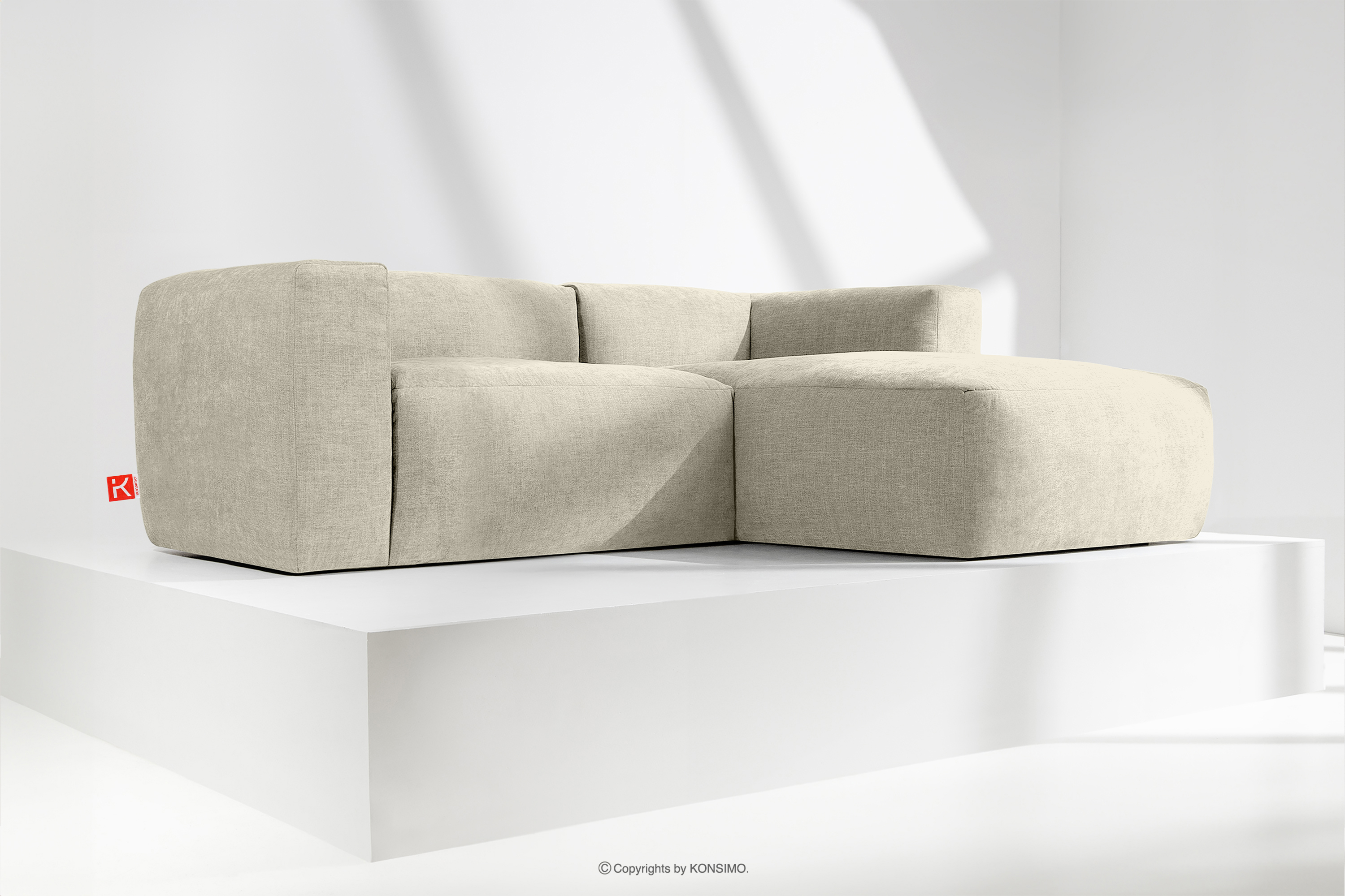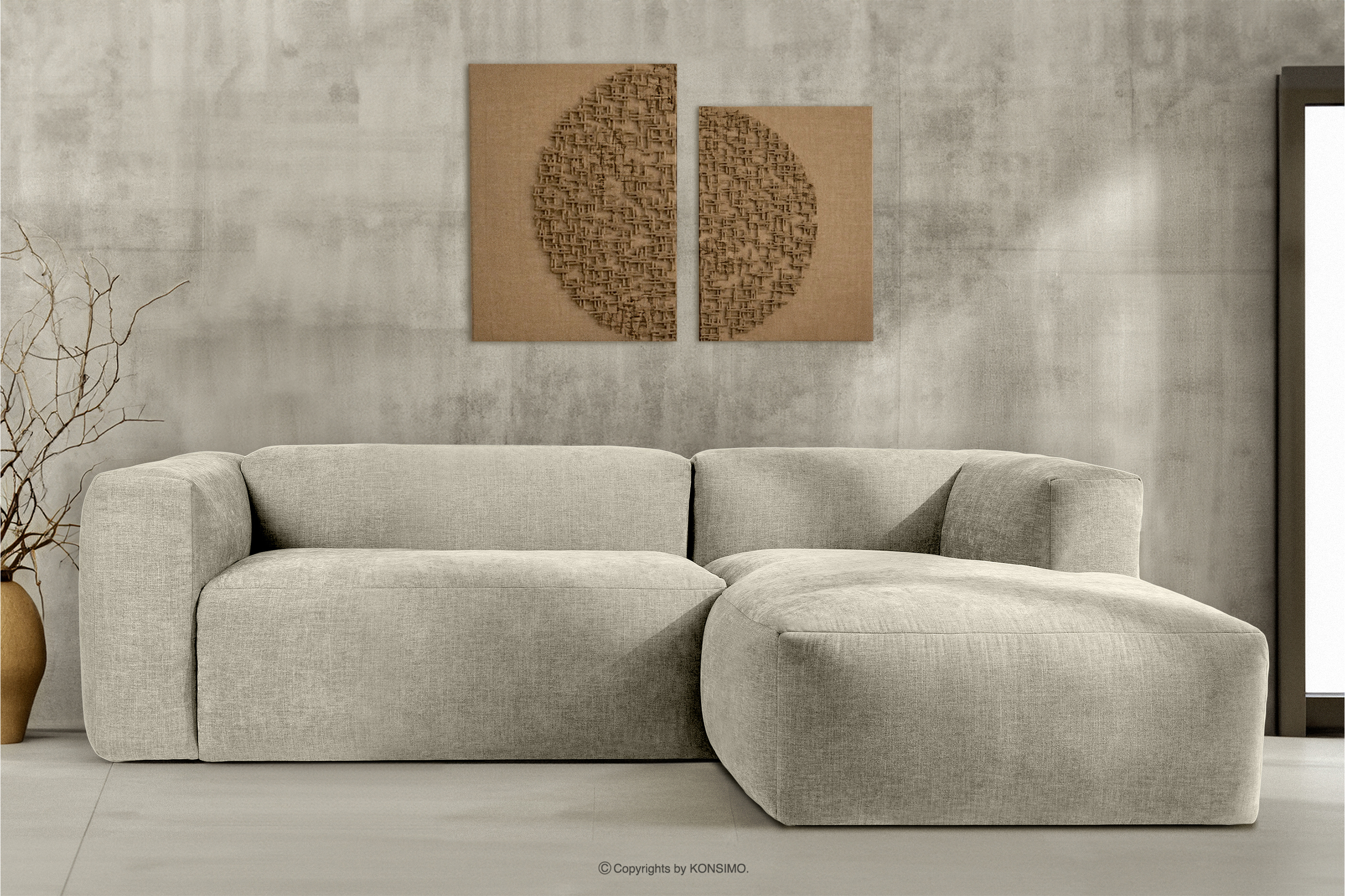 BUFFO zobacz całą kolekcję Narożnik modułowy do salonu w tkaninie plecionej ecru prawy- kolor ecru