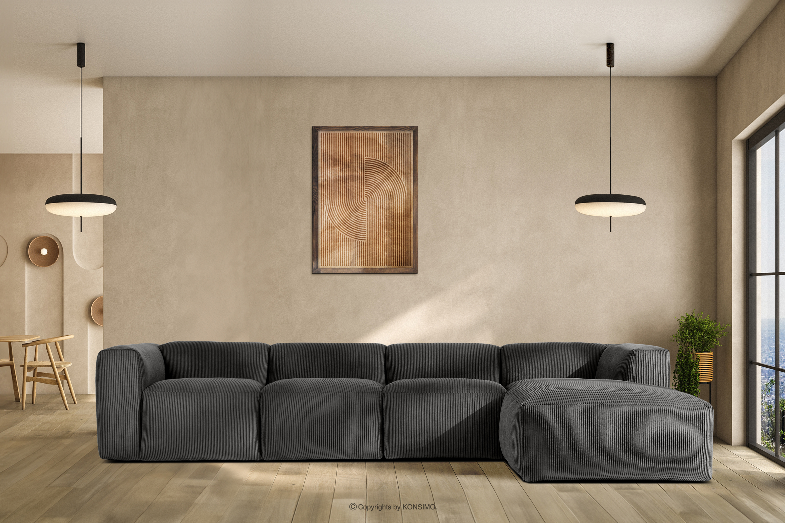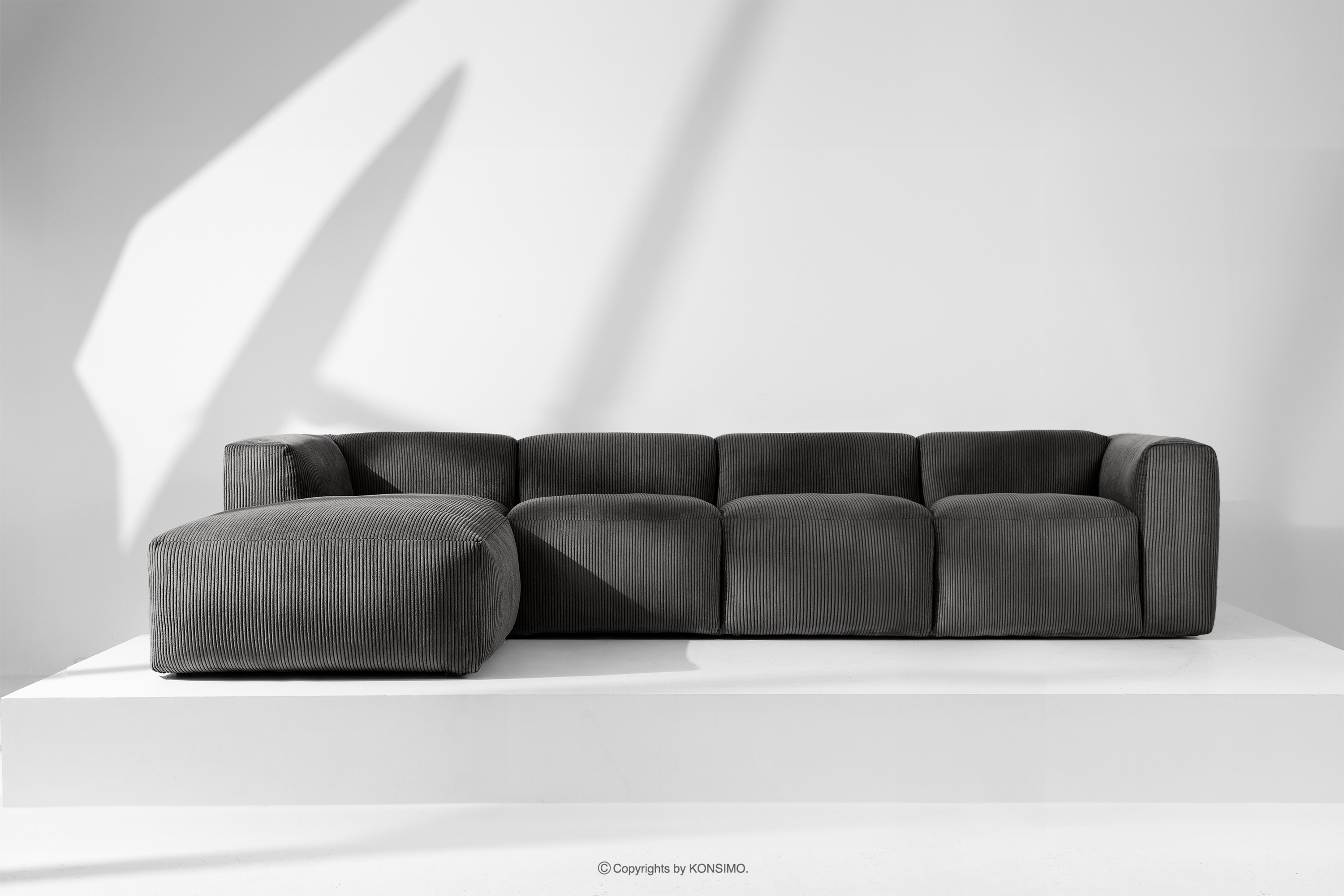 BUFFO zobacz całą kolekcję Duży narożnik modułowy do salonu w tkaninie sztruks szary lewy- kolor szary