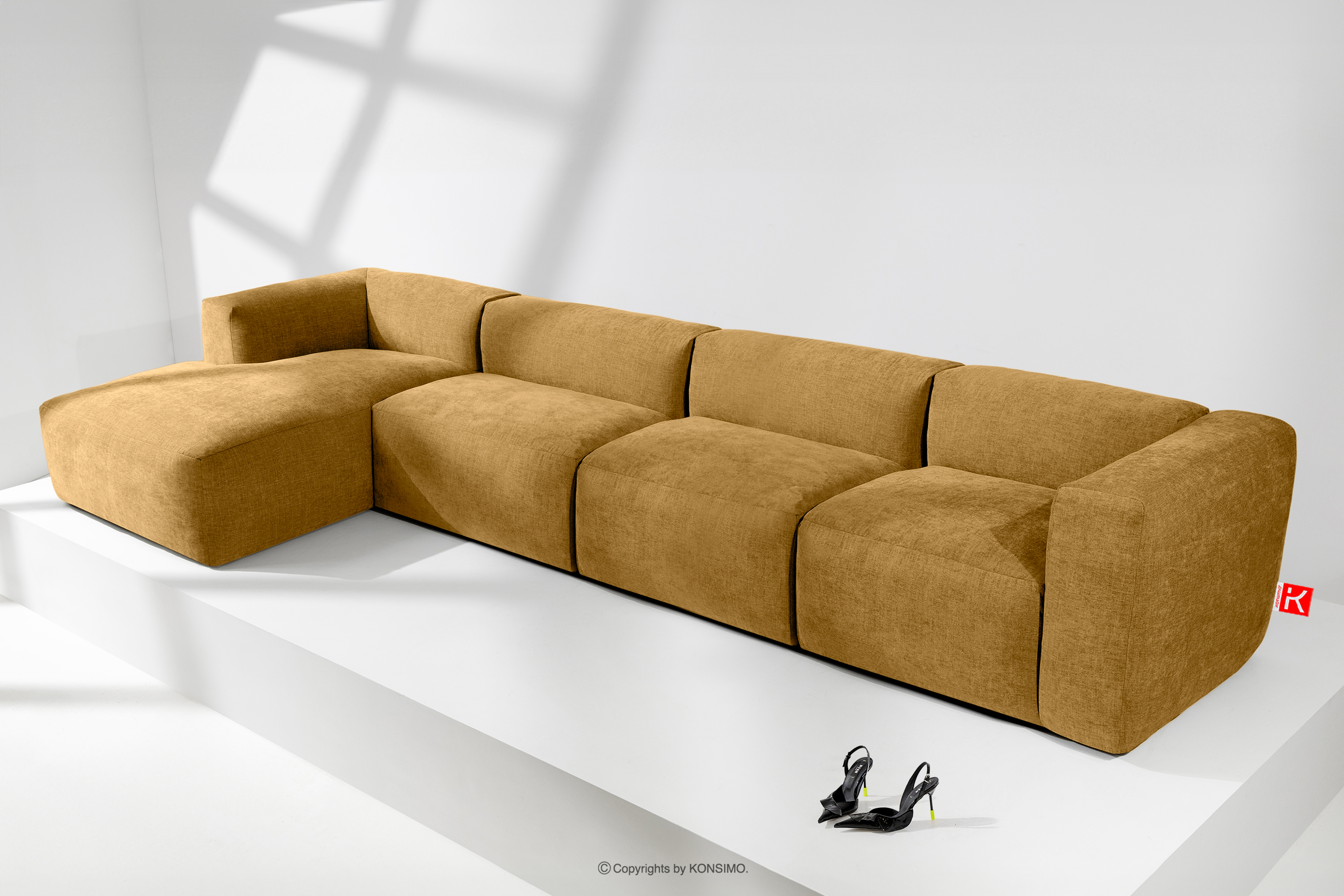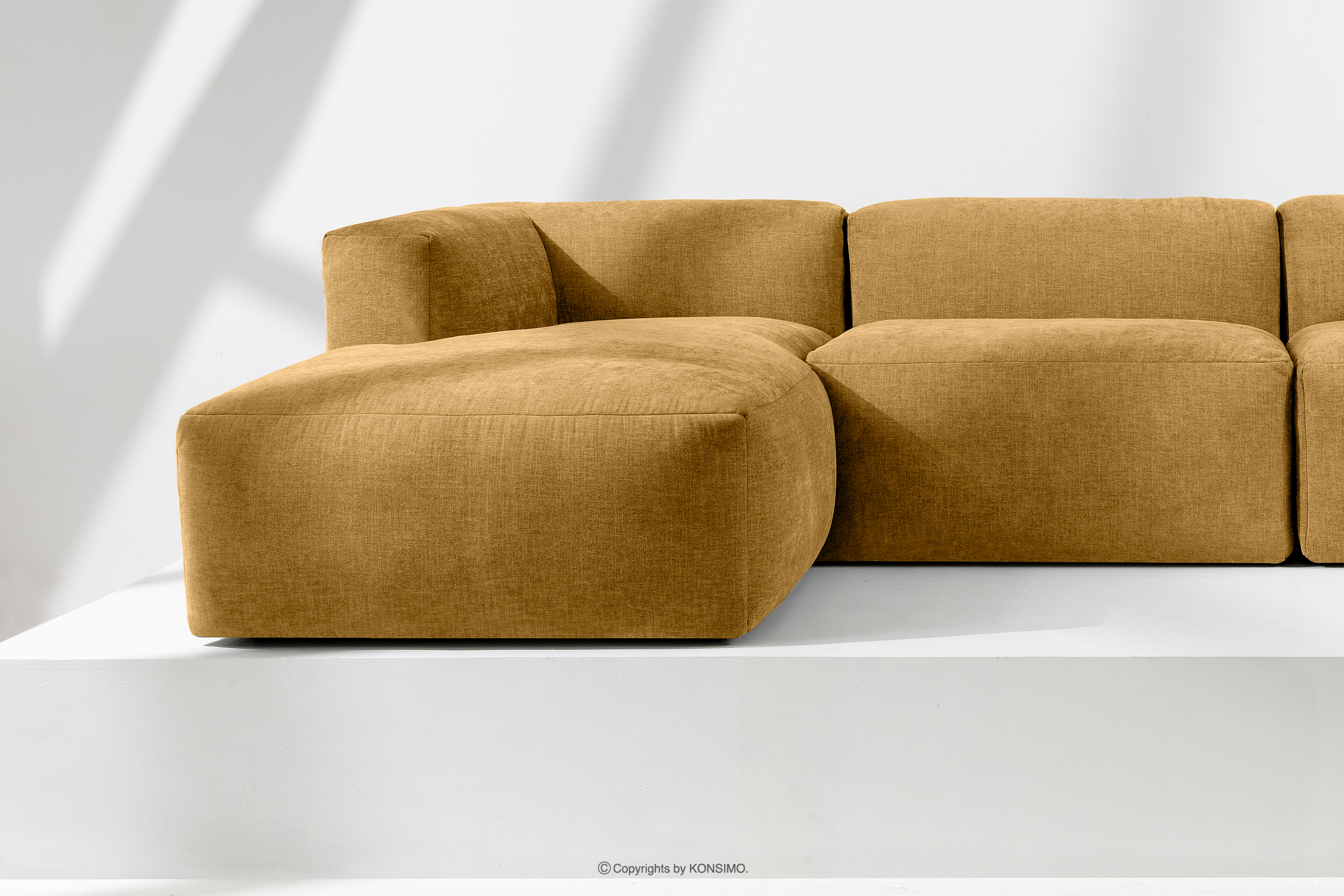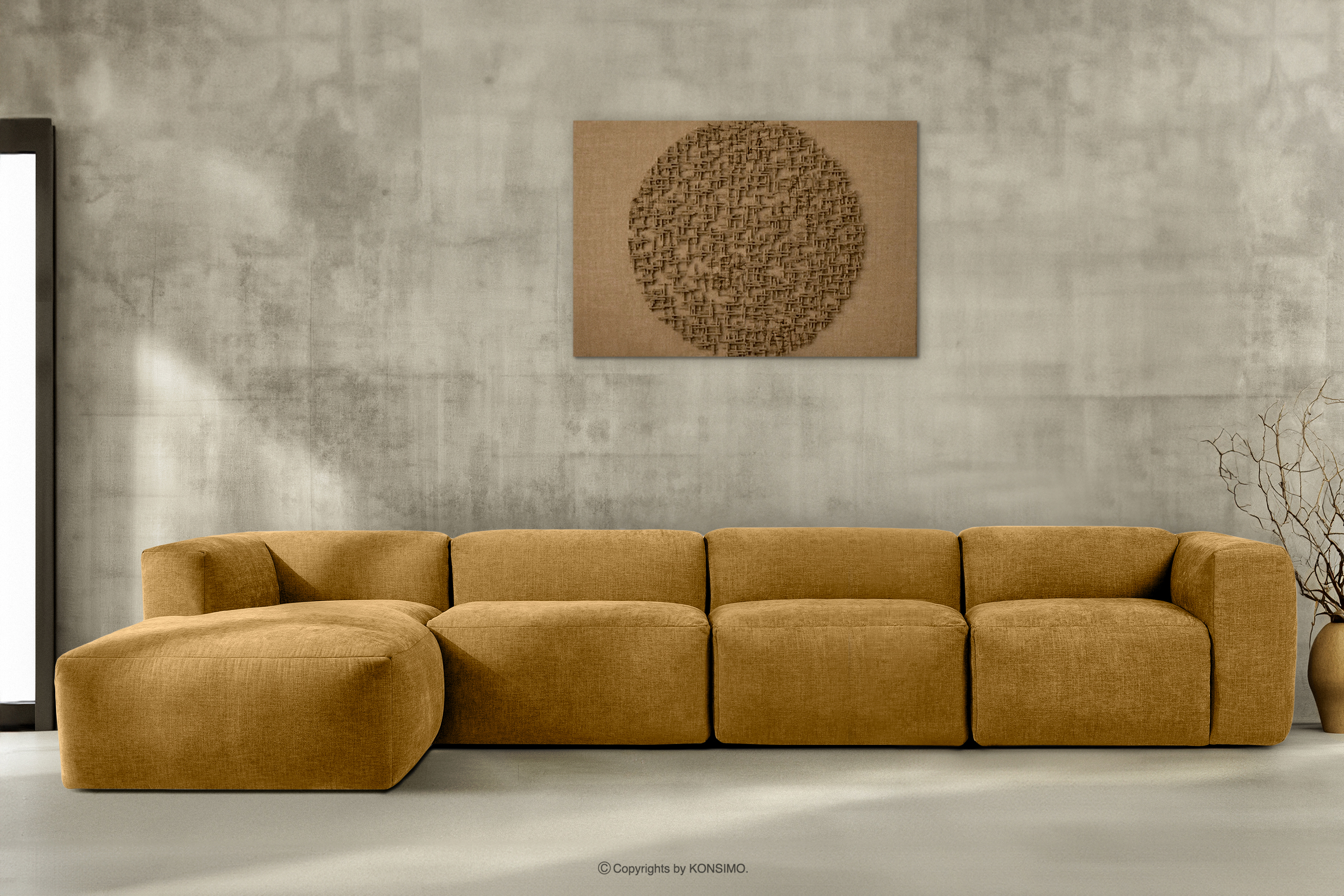 BUFFO zobacz całą kolekcję Duży narożnik modułowy do salonu w tkaninie plecionej miodowy lewy- kolor miodowy