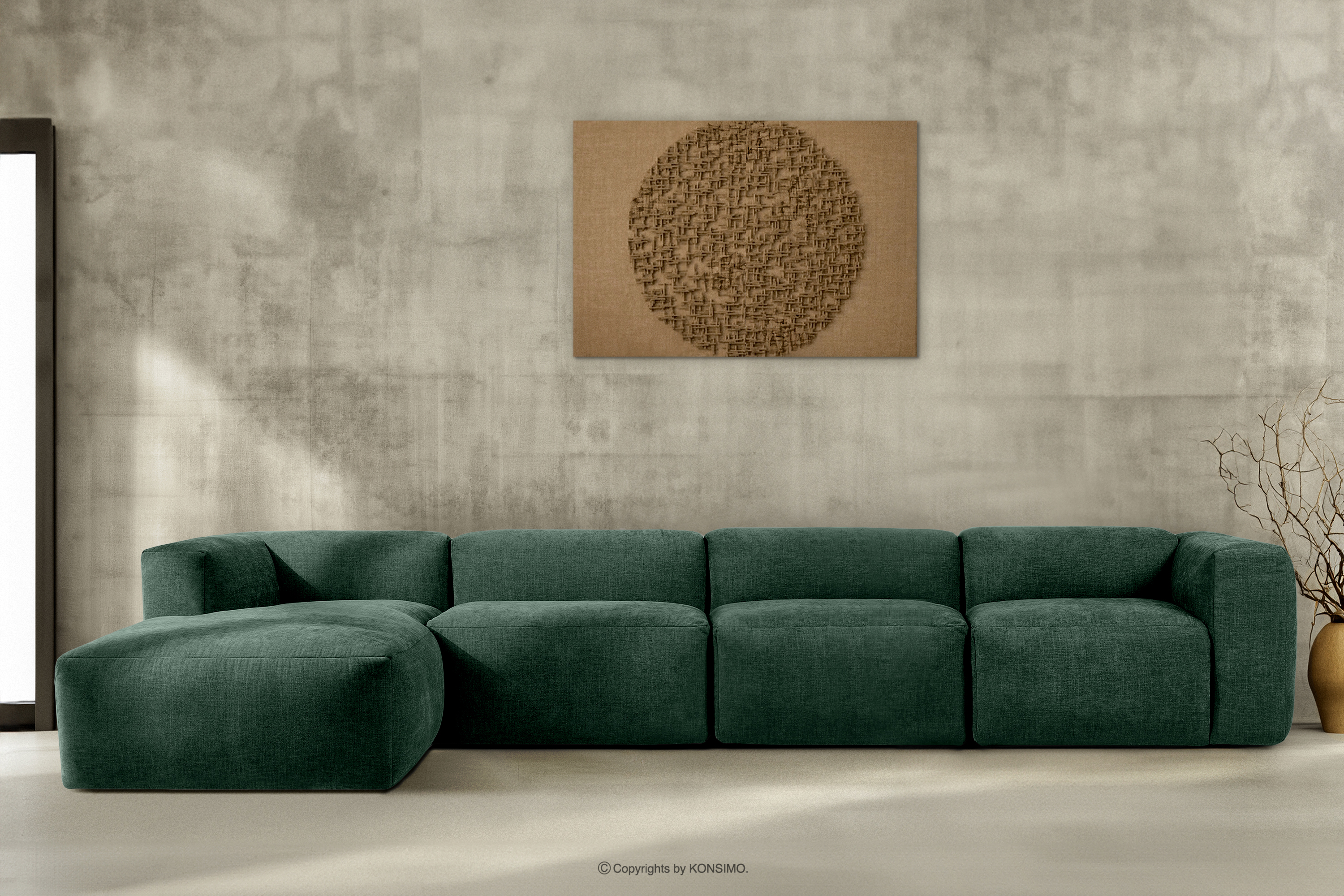 BUFFO zobacz całą kolekcję Duży narożnik modułowy do salonu w tkaninie plecionej morski lewy- kolor morski
