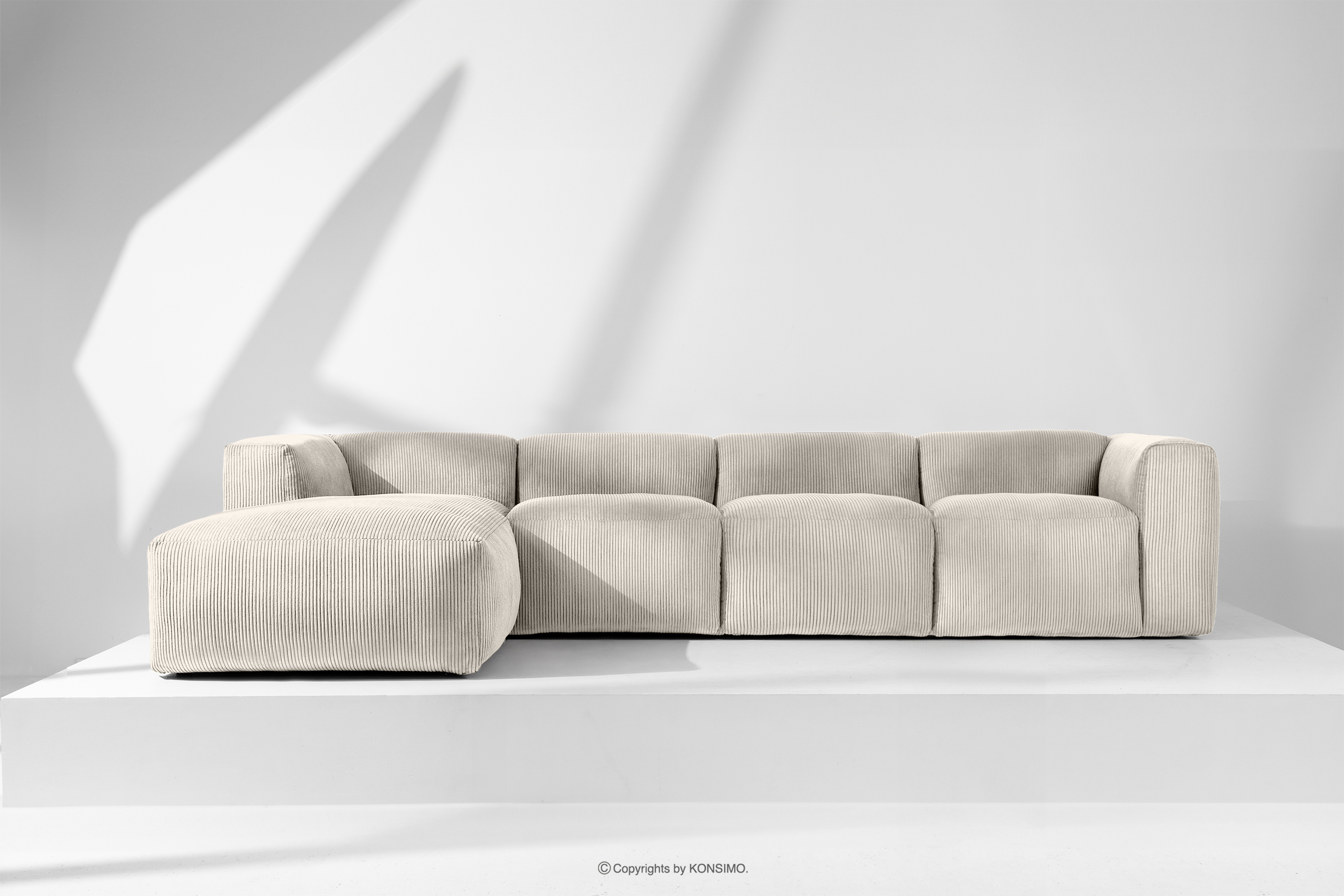 BUFFO zobacz całą kolekcję Duży narożnik modułowy do salonu w tkaninie sztruks kremowy lewy- kolor kremowy