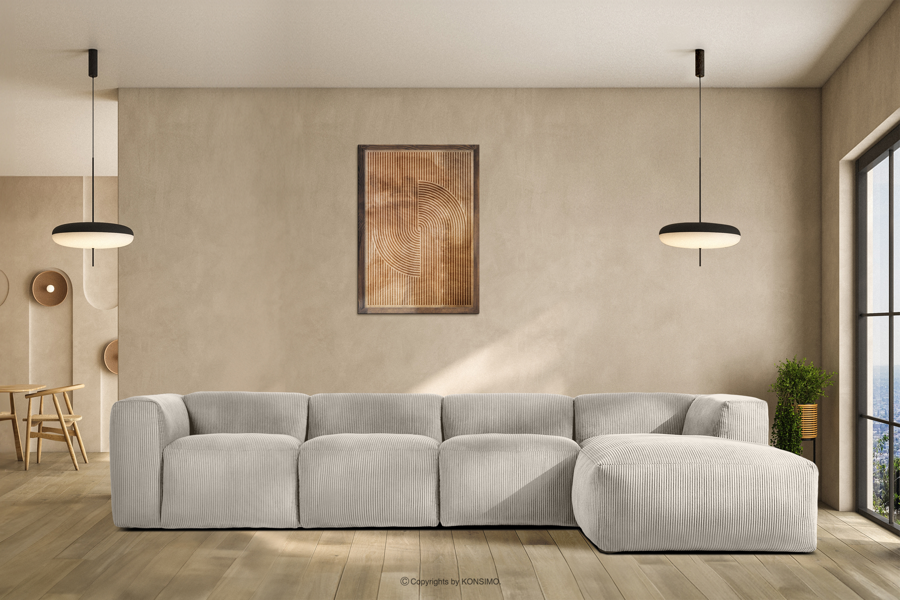 dla produktu Duży narożnik modułowy do salonu w tkaninie sztruks kremowy lewy