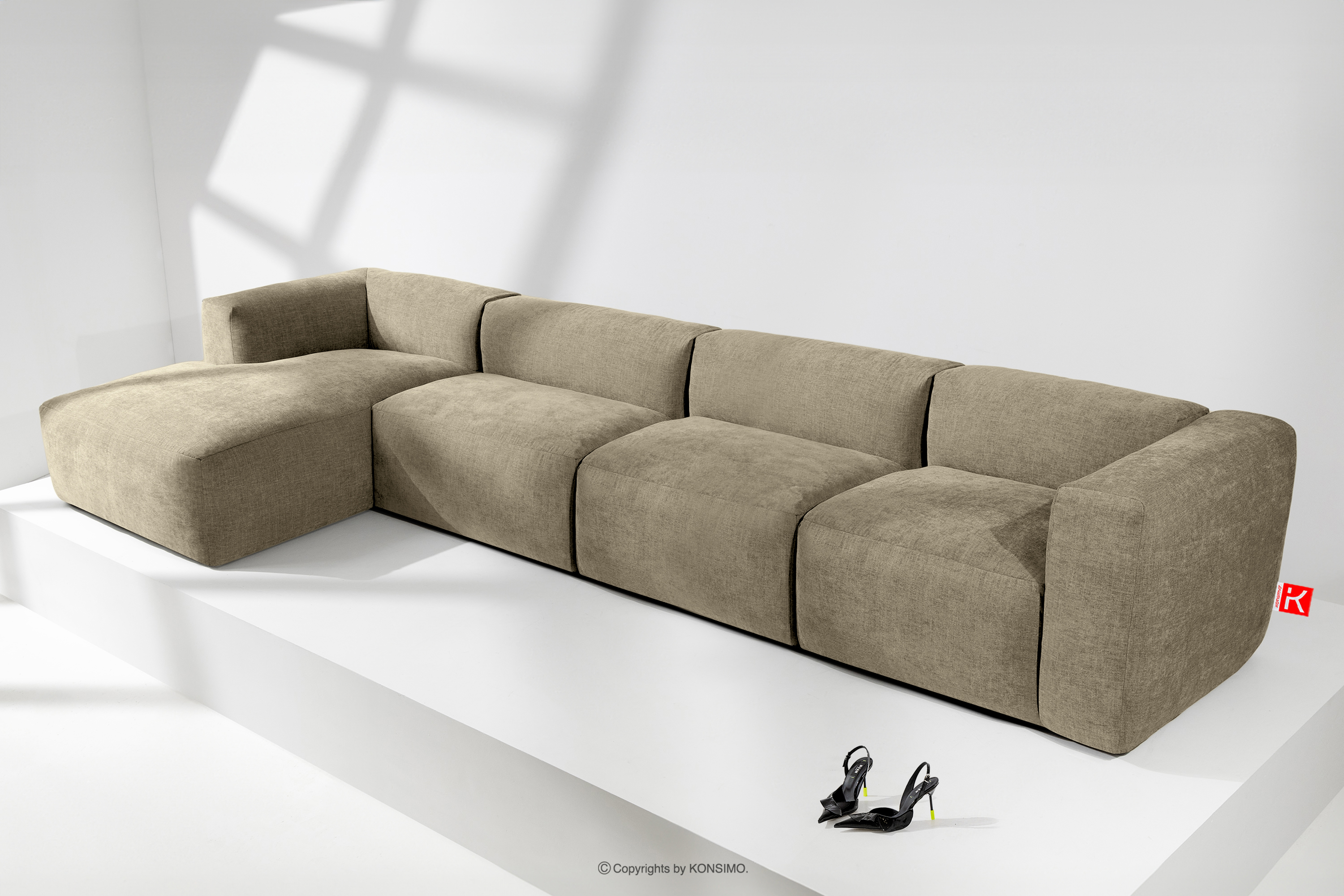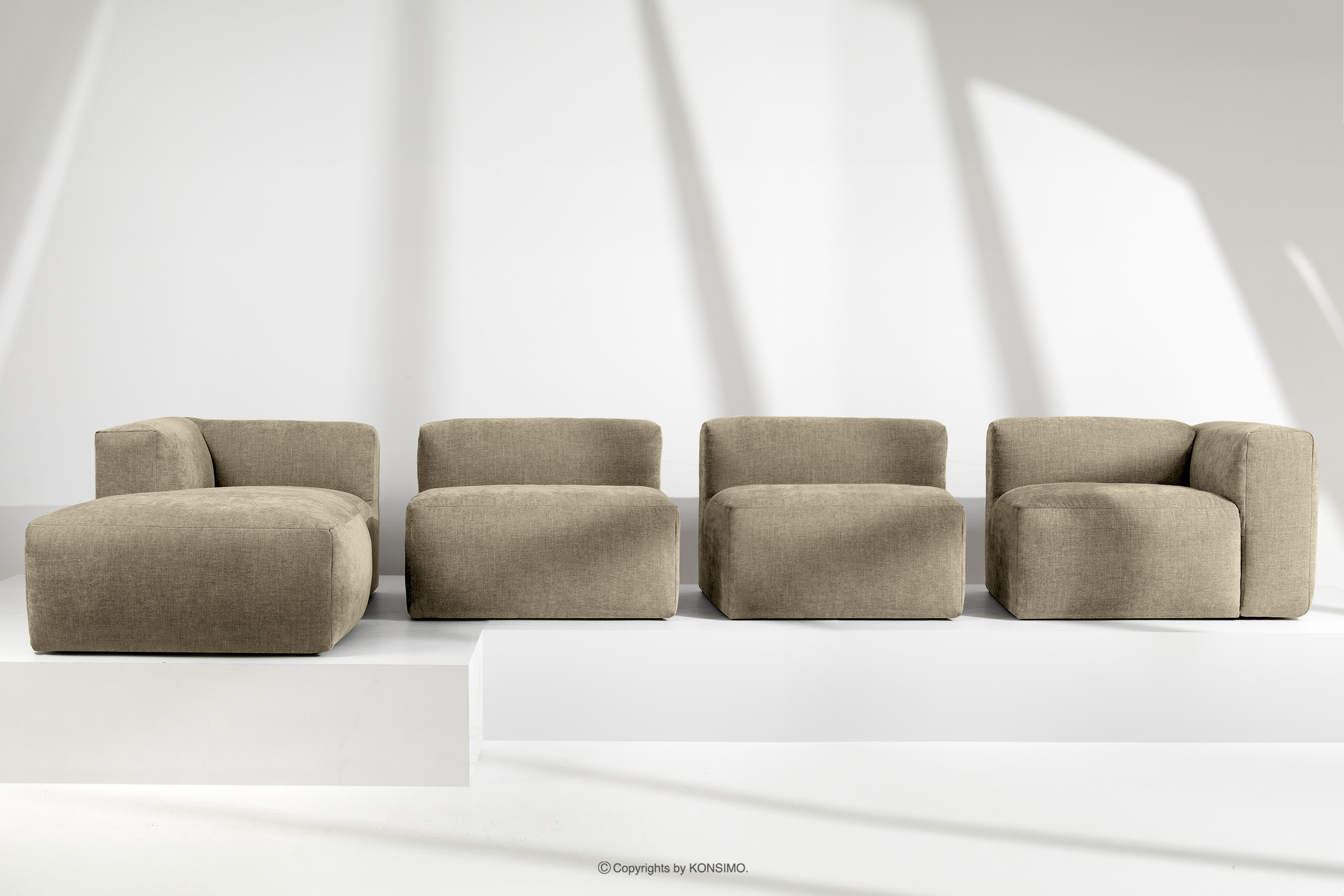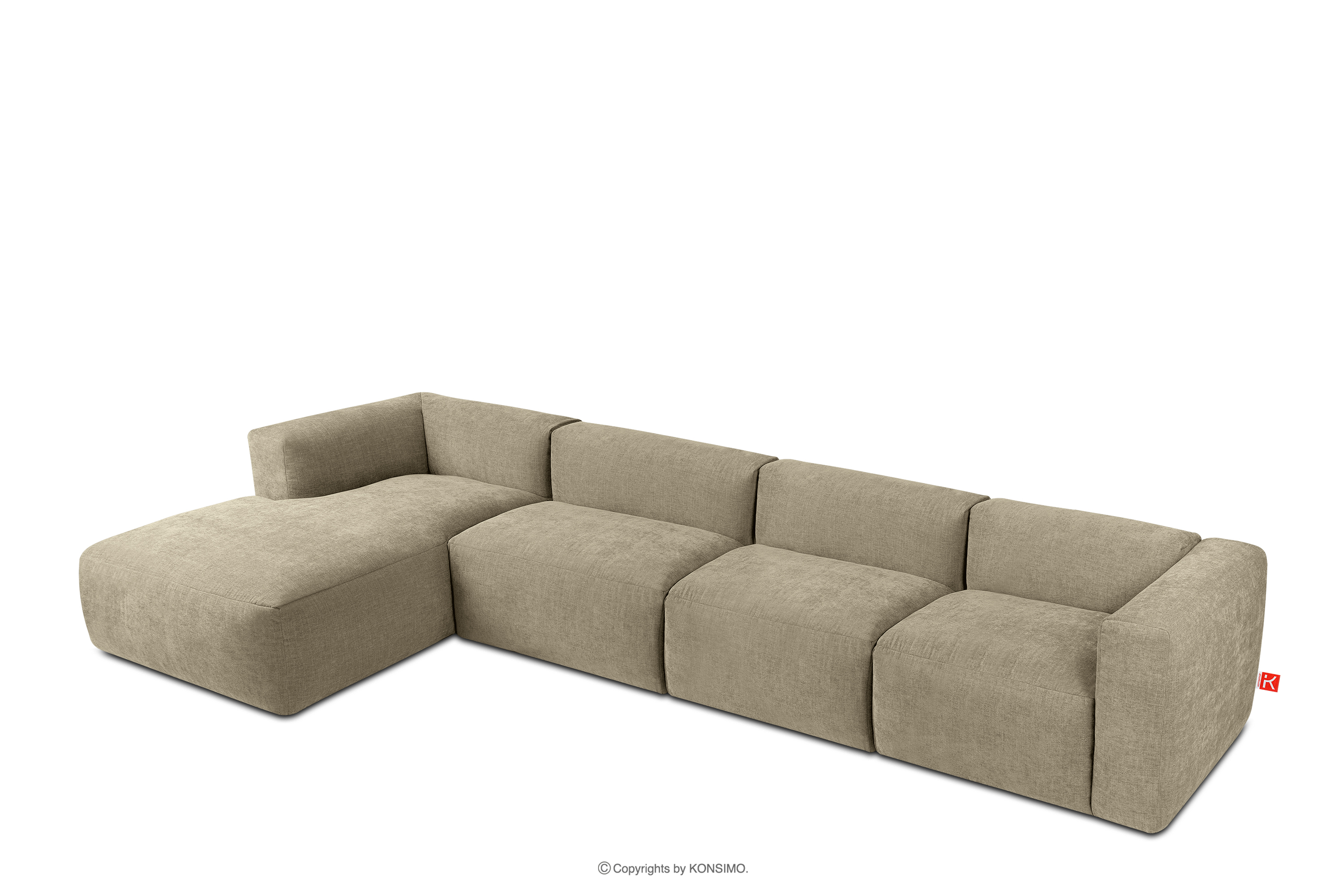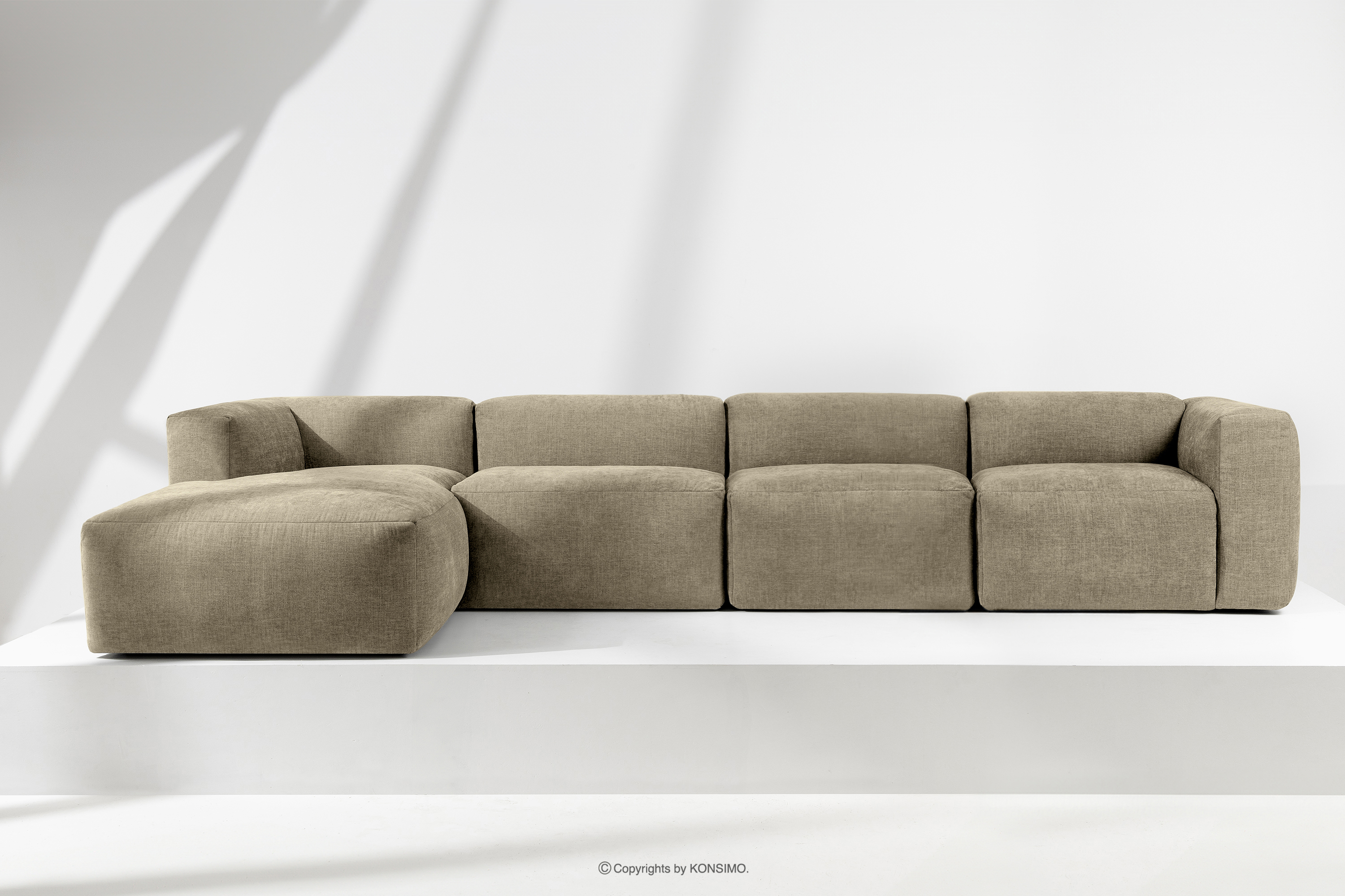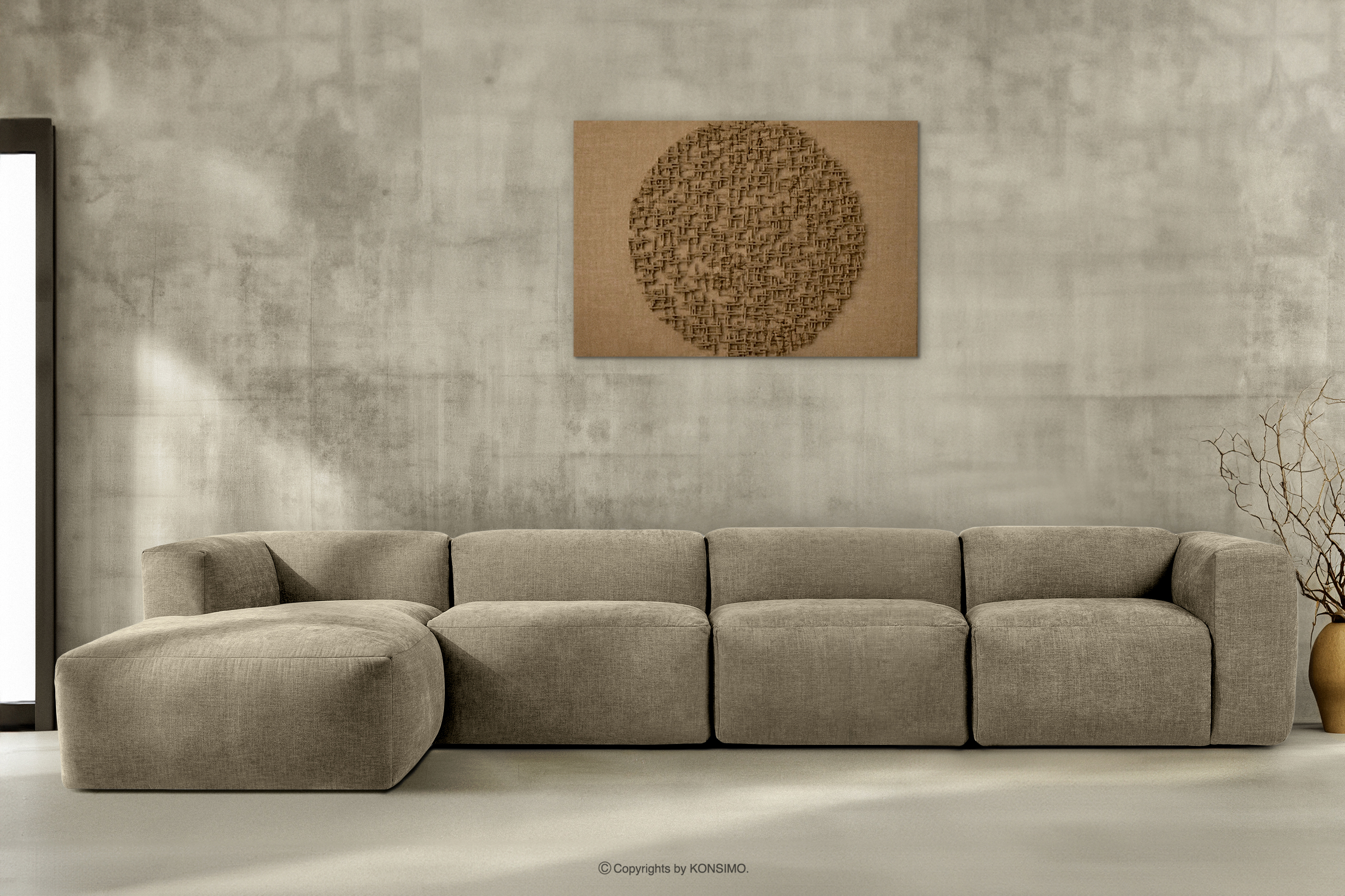 BUFFO zobacz całą kolekcję Duży narożnik modułowy do salonu w tkaninie plecionej piaskowy lewy- kolor piaskowy