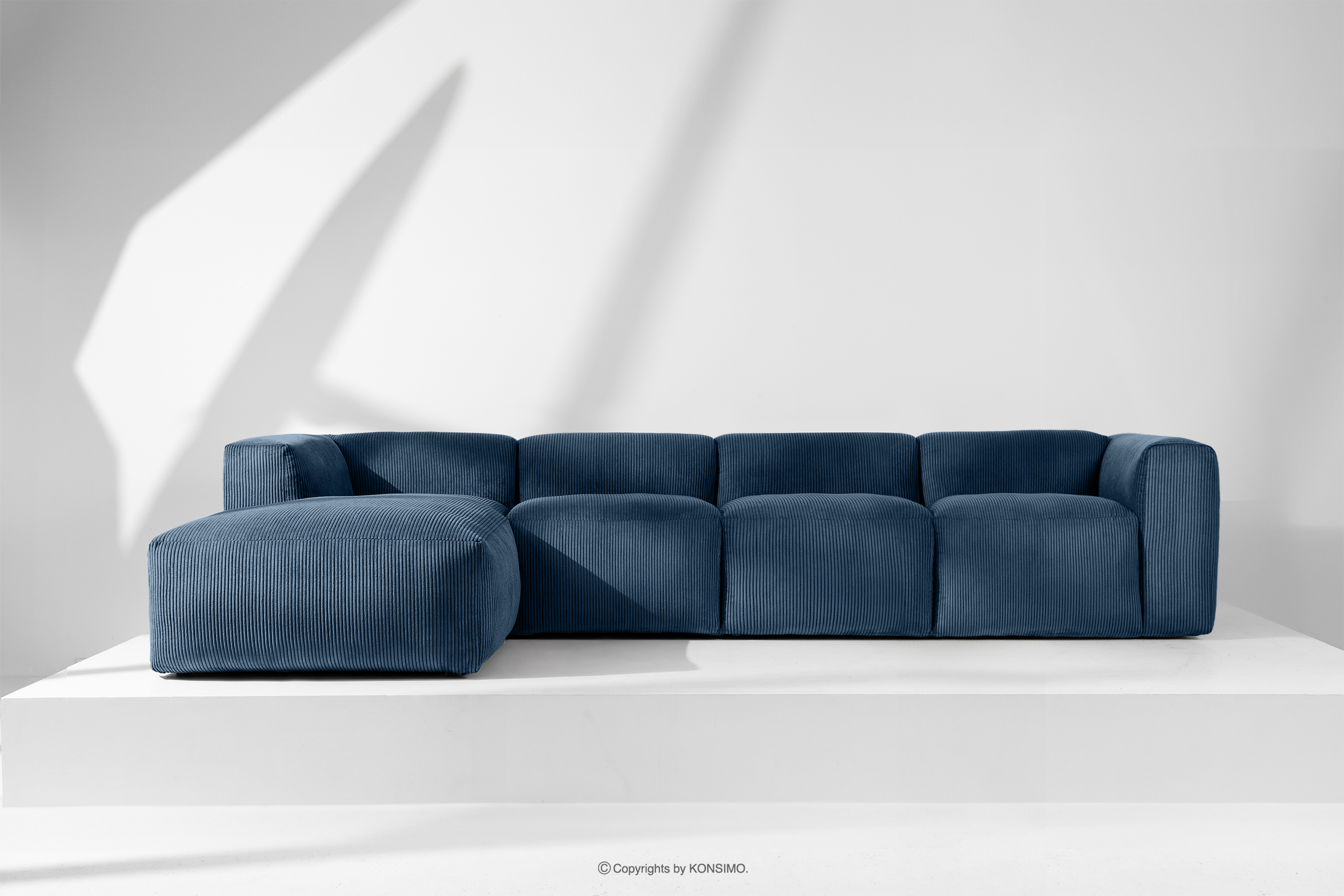BUFFO zobacz całą kolekcję Duży narożnik modułowy do salonu w tkaninie sztruks granatowy lewy- kolor granatowy