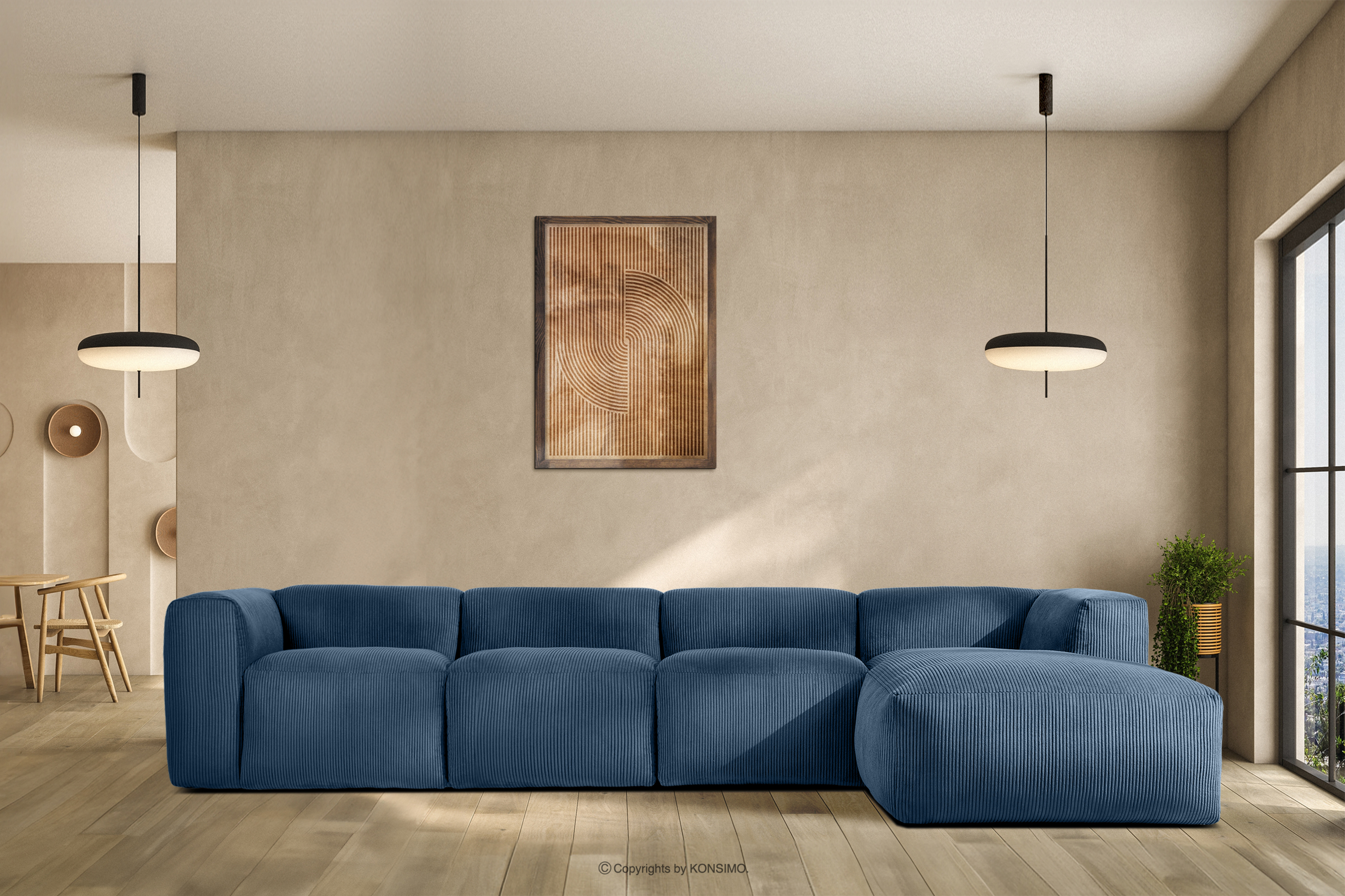 BUFFO Duży narożnik modułowy do salonu w tkaninie sztruks granatowy lewy