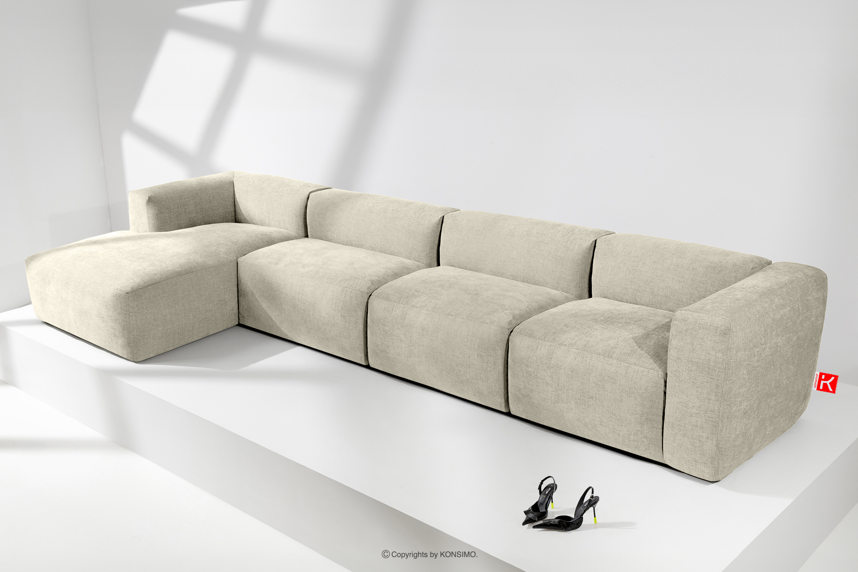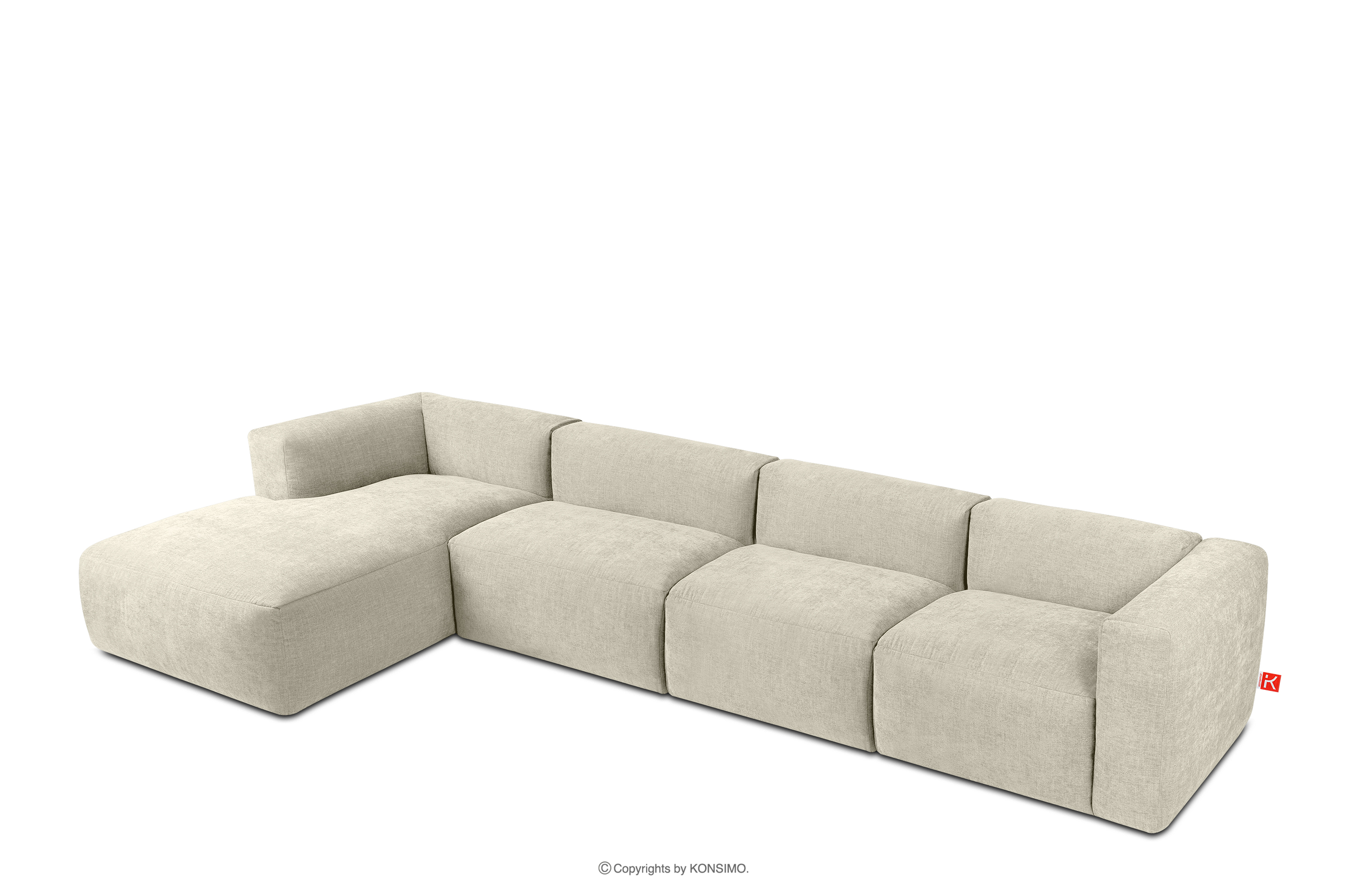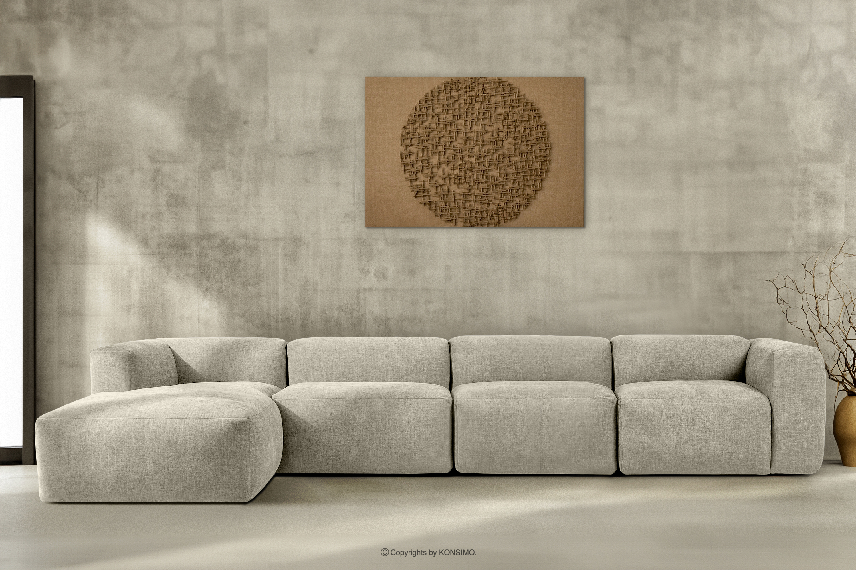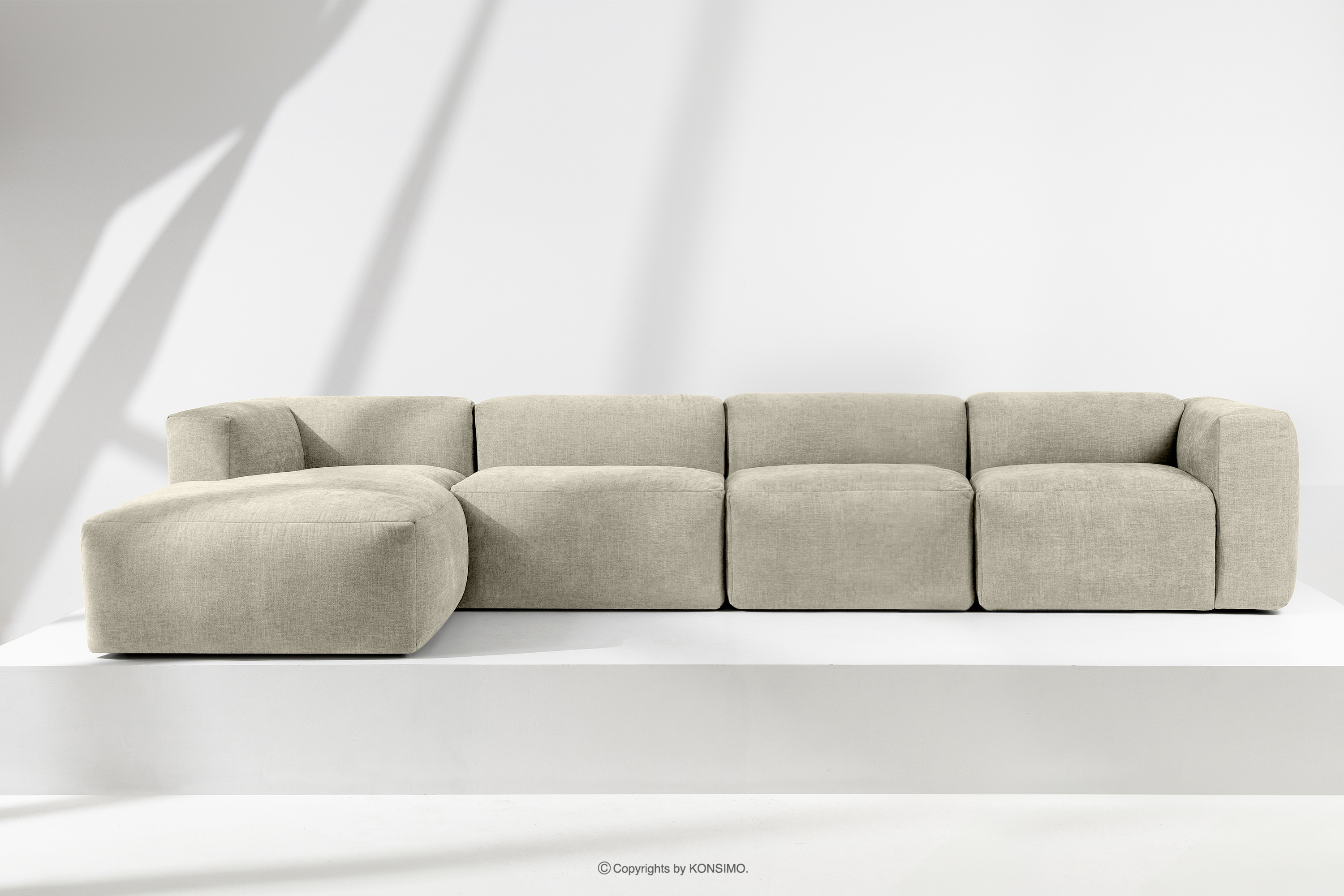 BUFFO zobacz całą kolekcję Duży narożnik modułowy do salonu w tkaninie plecionej ecru lewy- kolor ecru