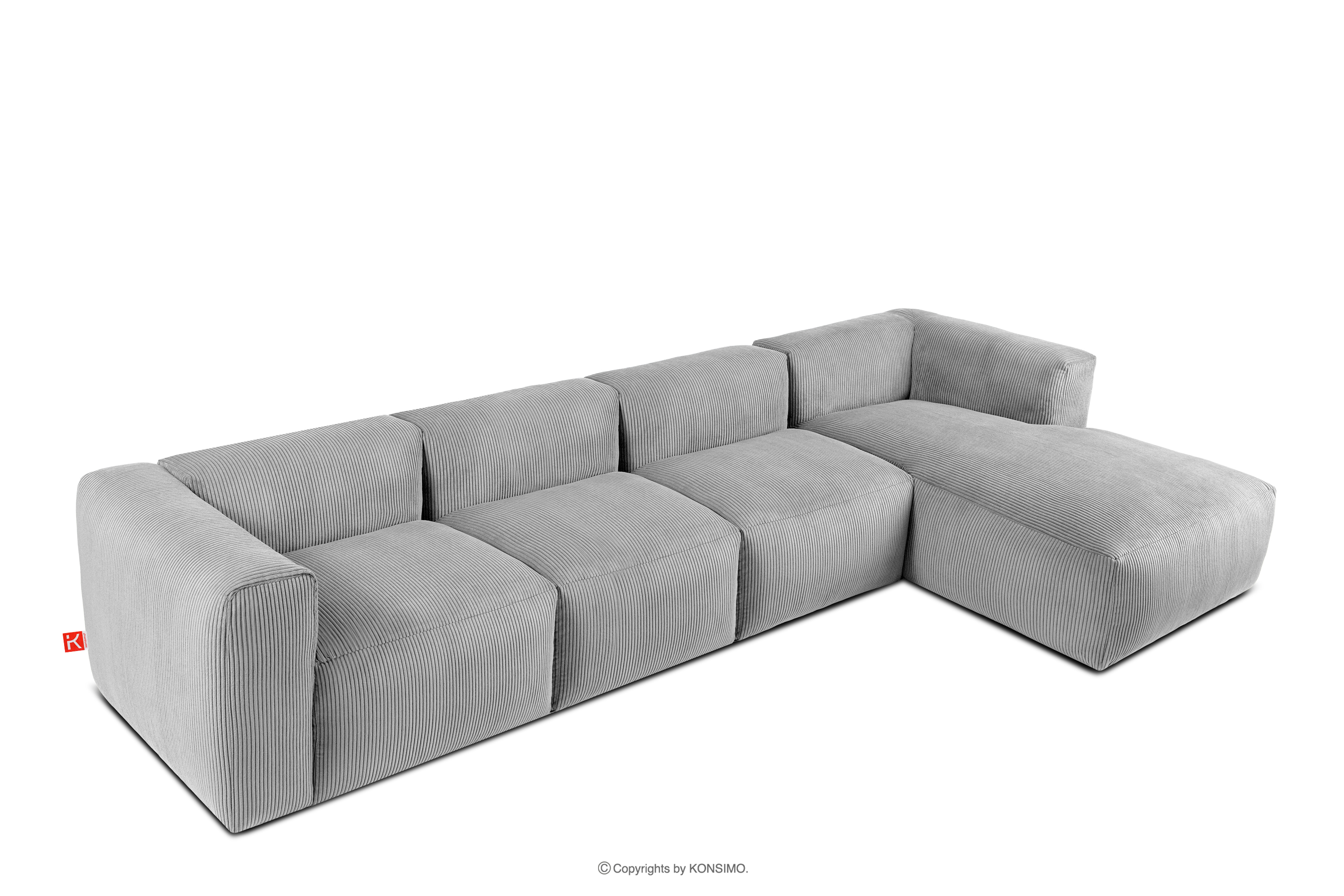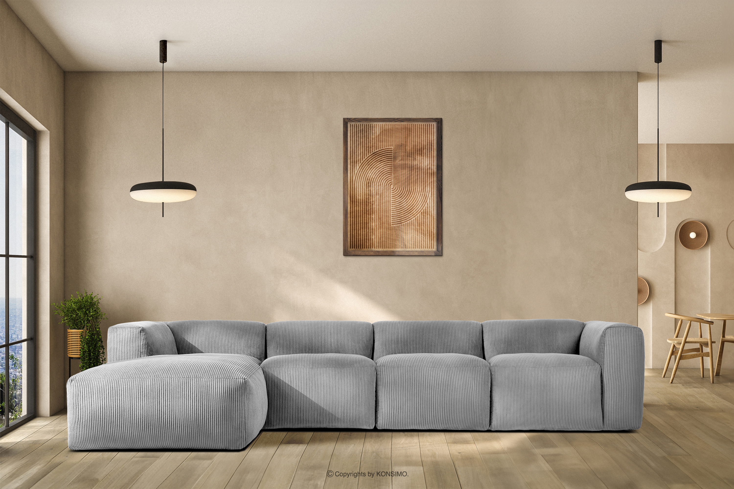 BUFFO Duży narożnik modułowy do salonu w tkaninie sztruks jasny szary prawy