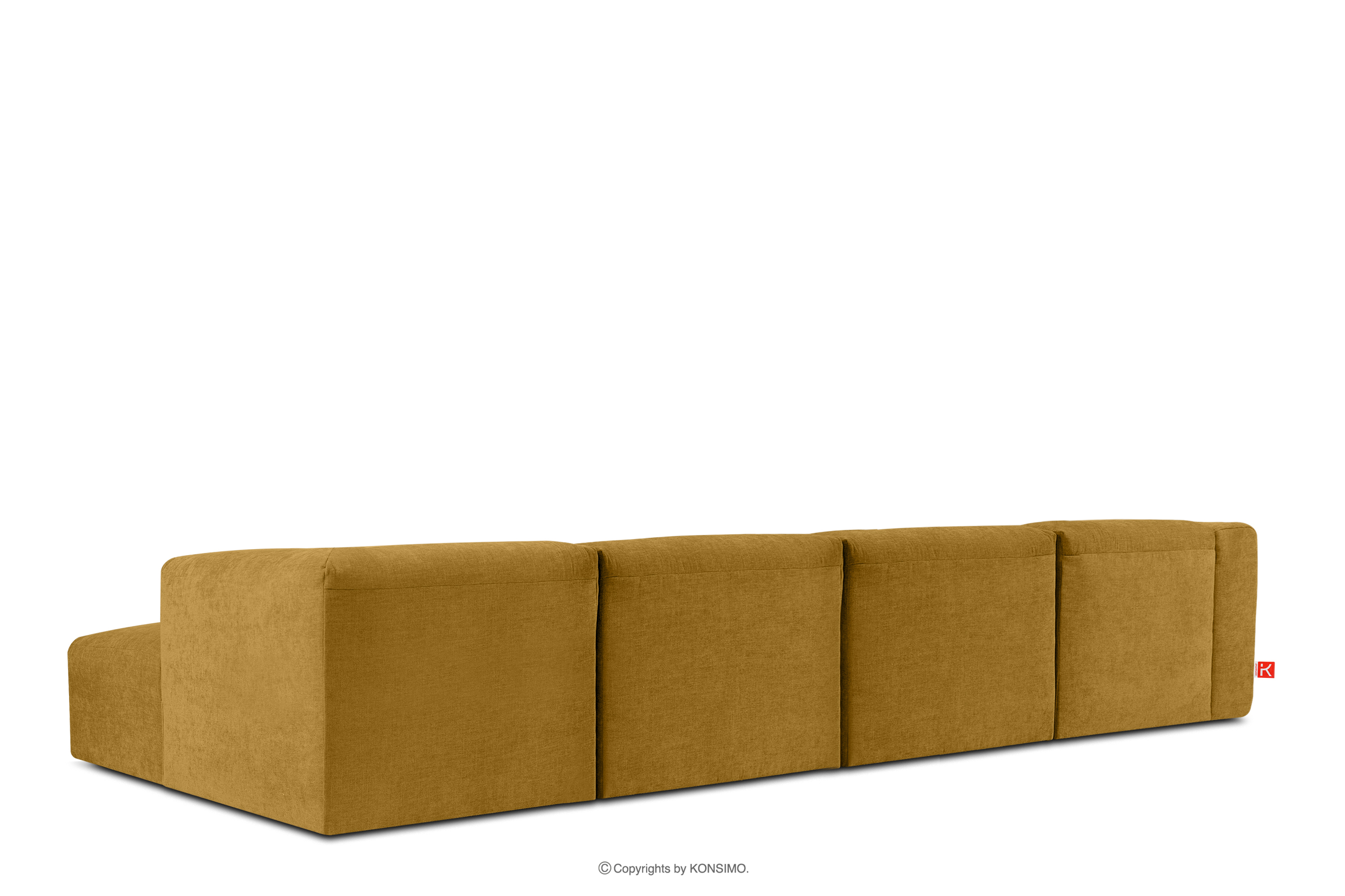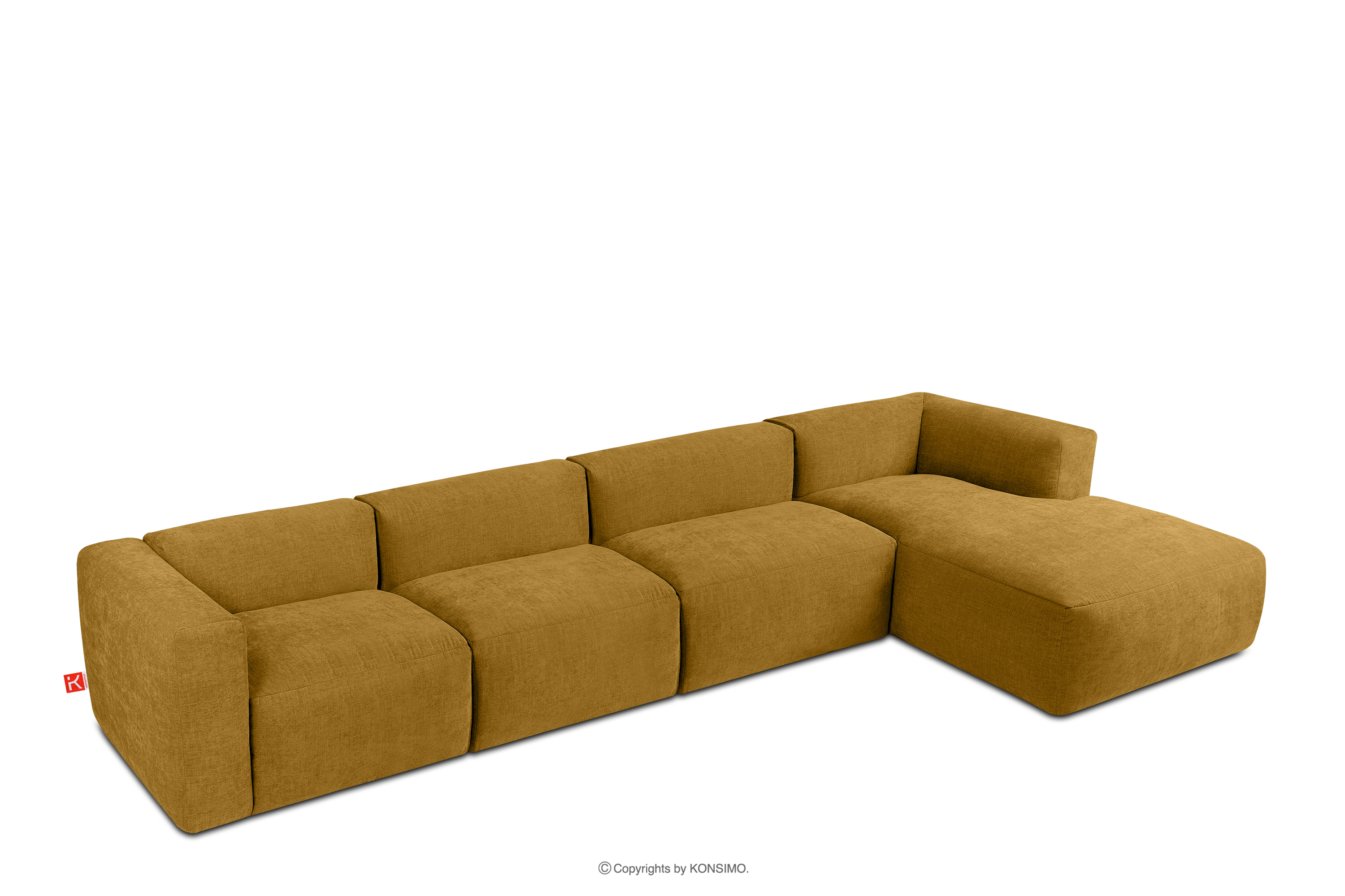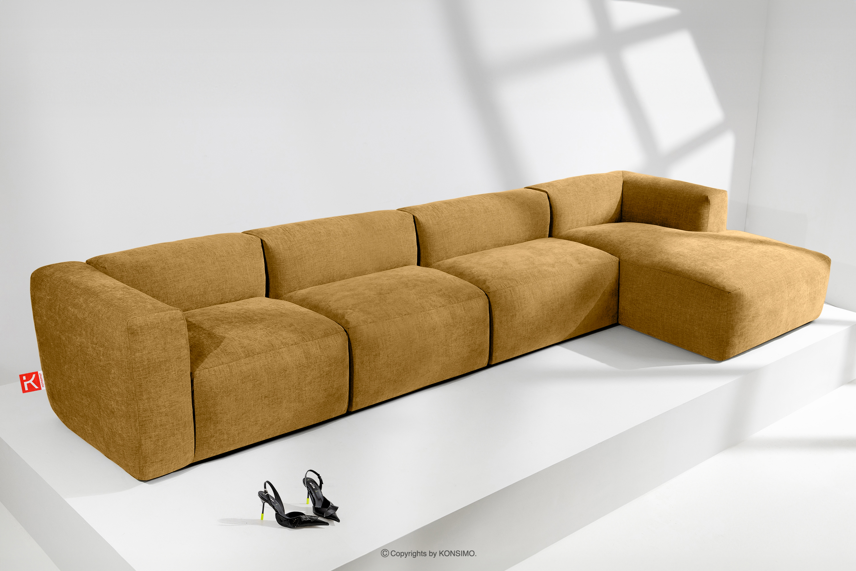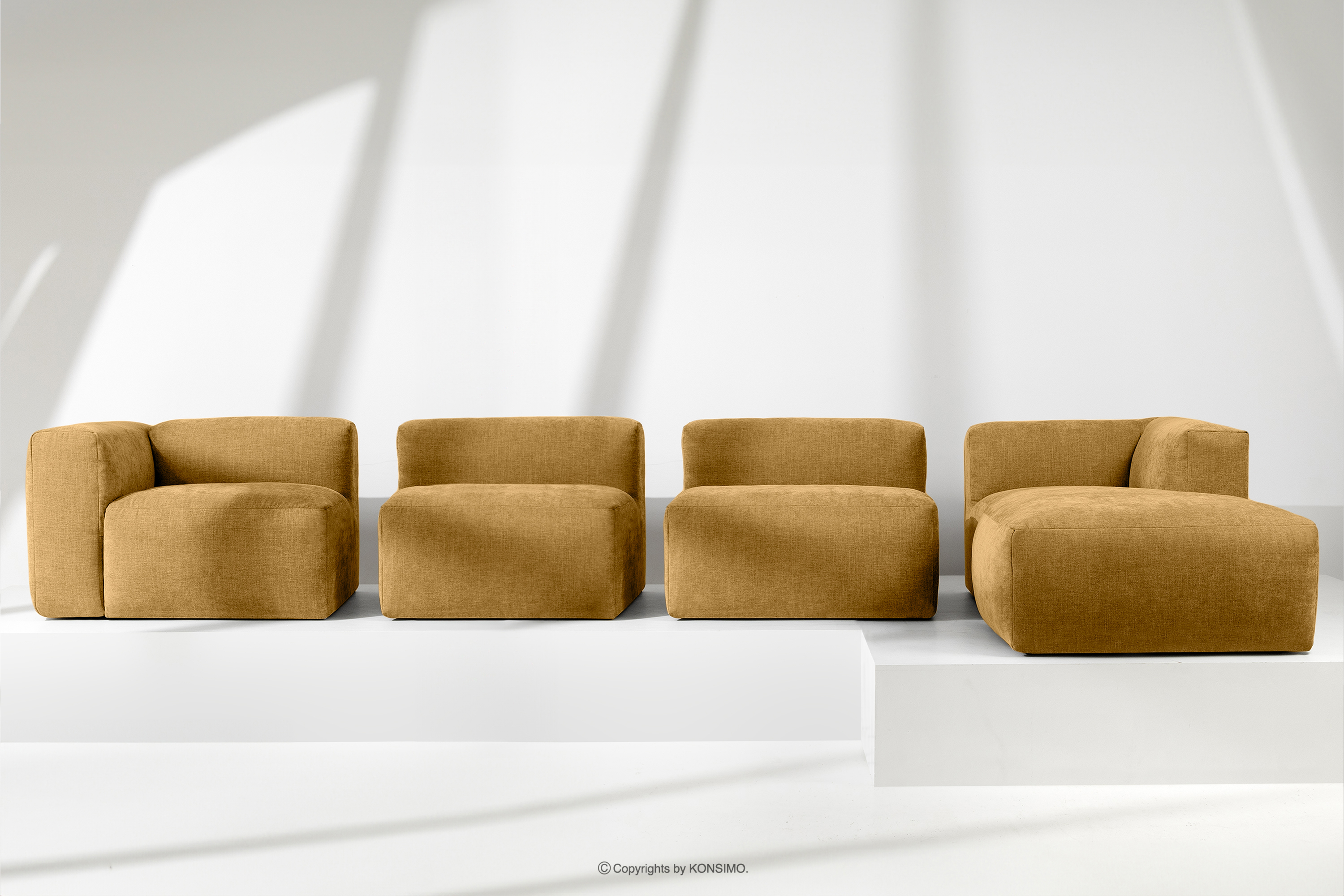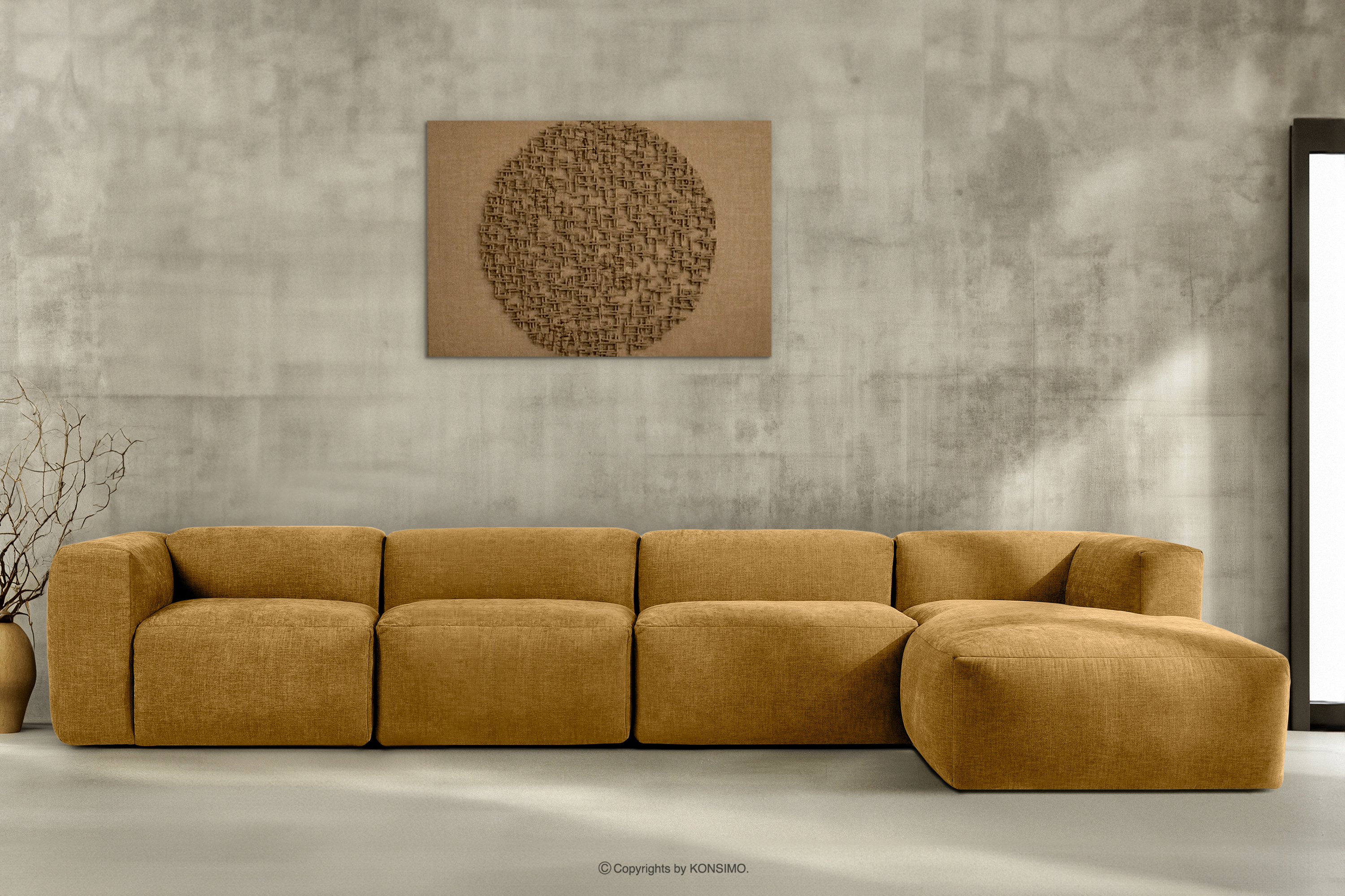 BUFFO zobacz całą kolekcję Duży narożnik modułowy do salonu w tkaninie plecionej miodowy prawy- kolor miodowy