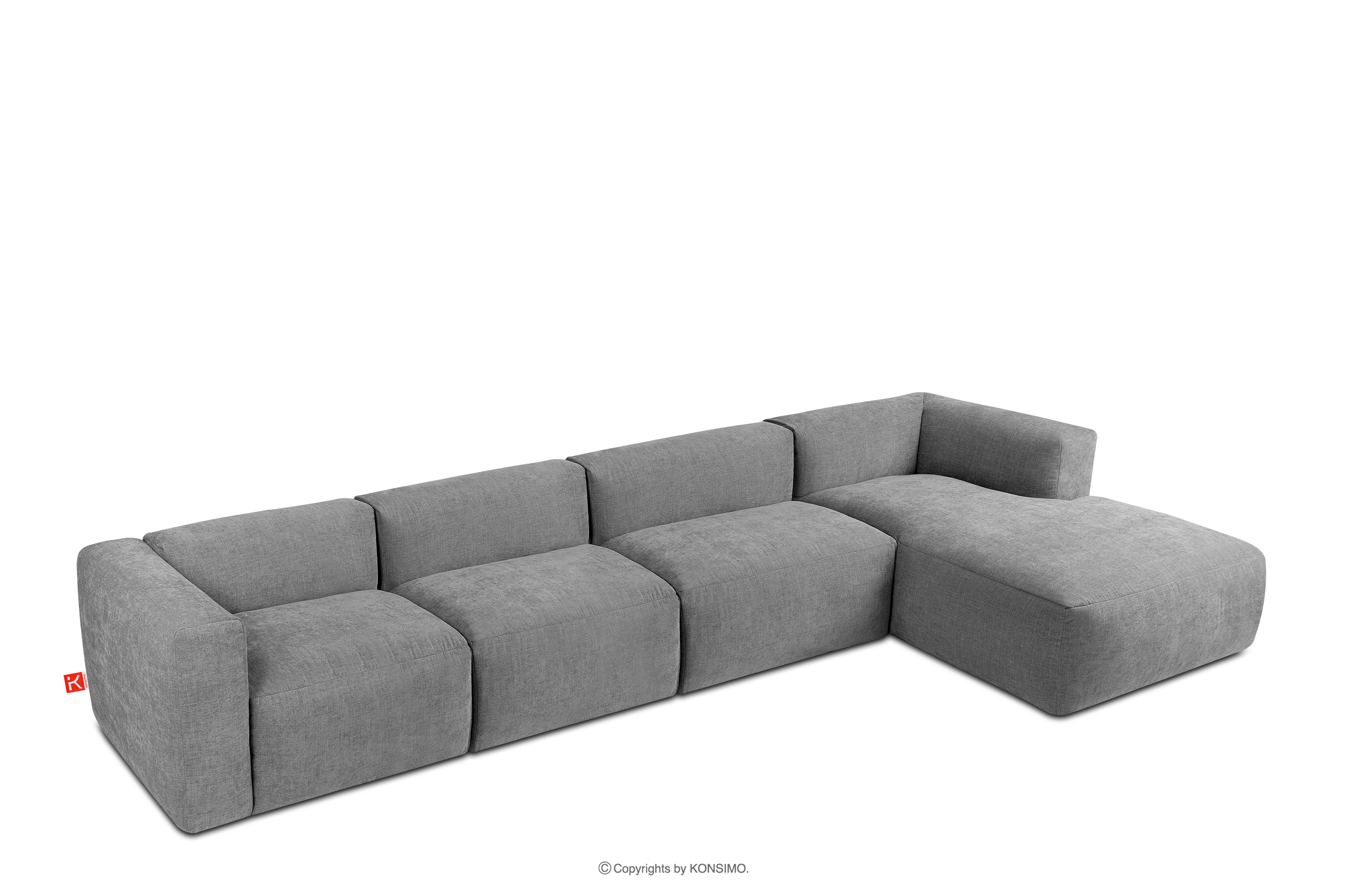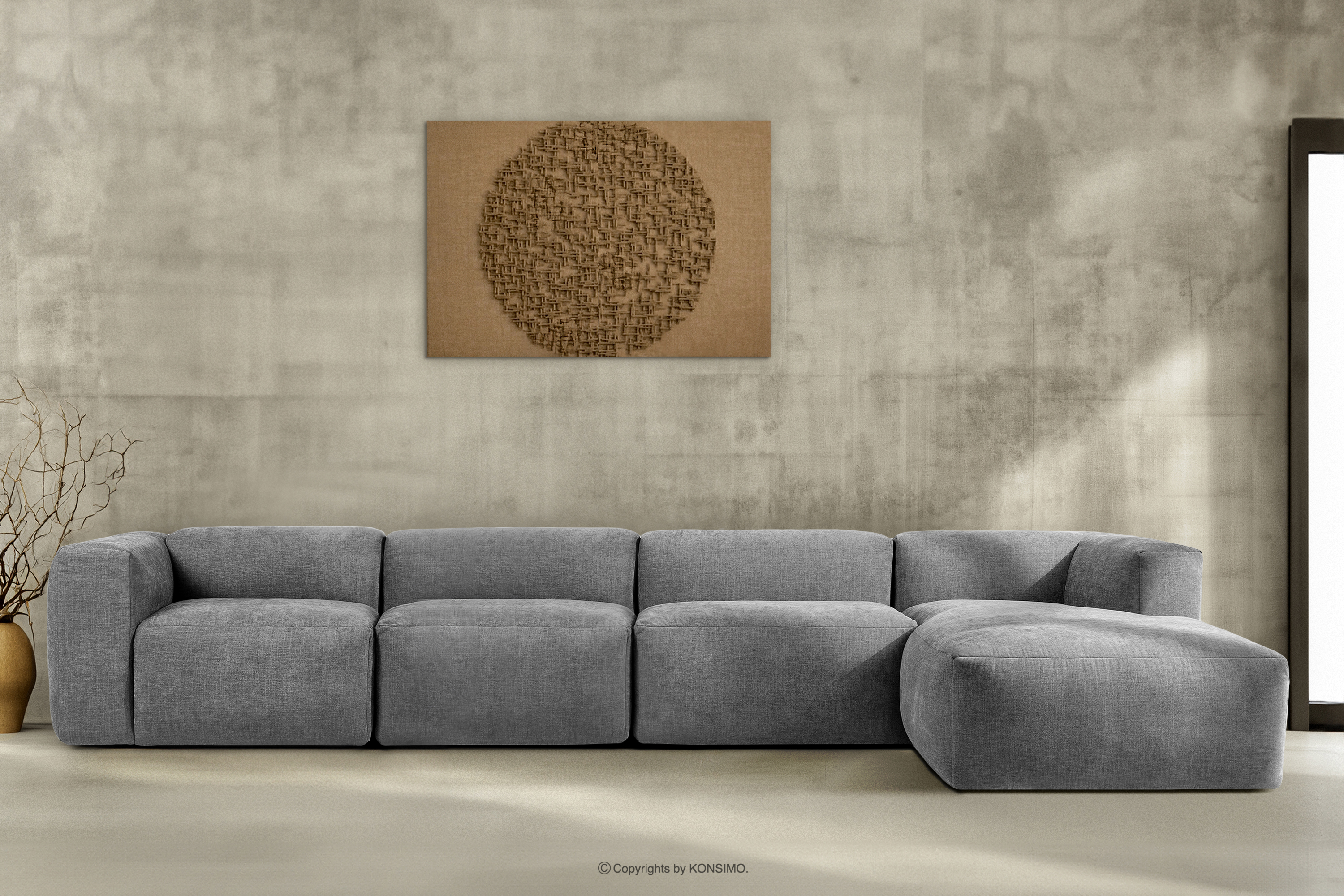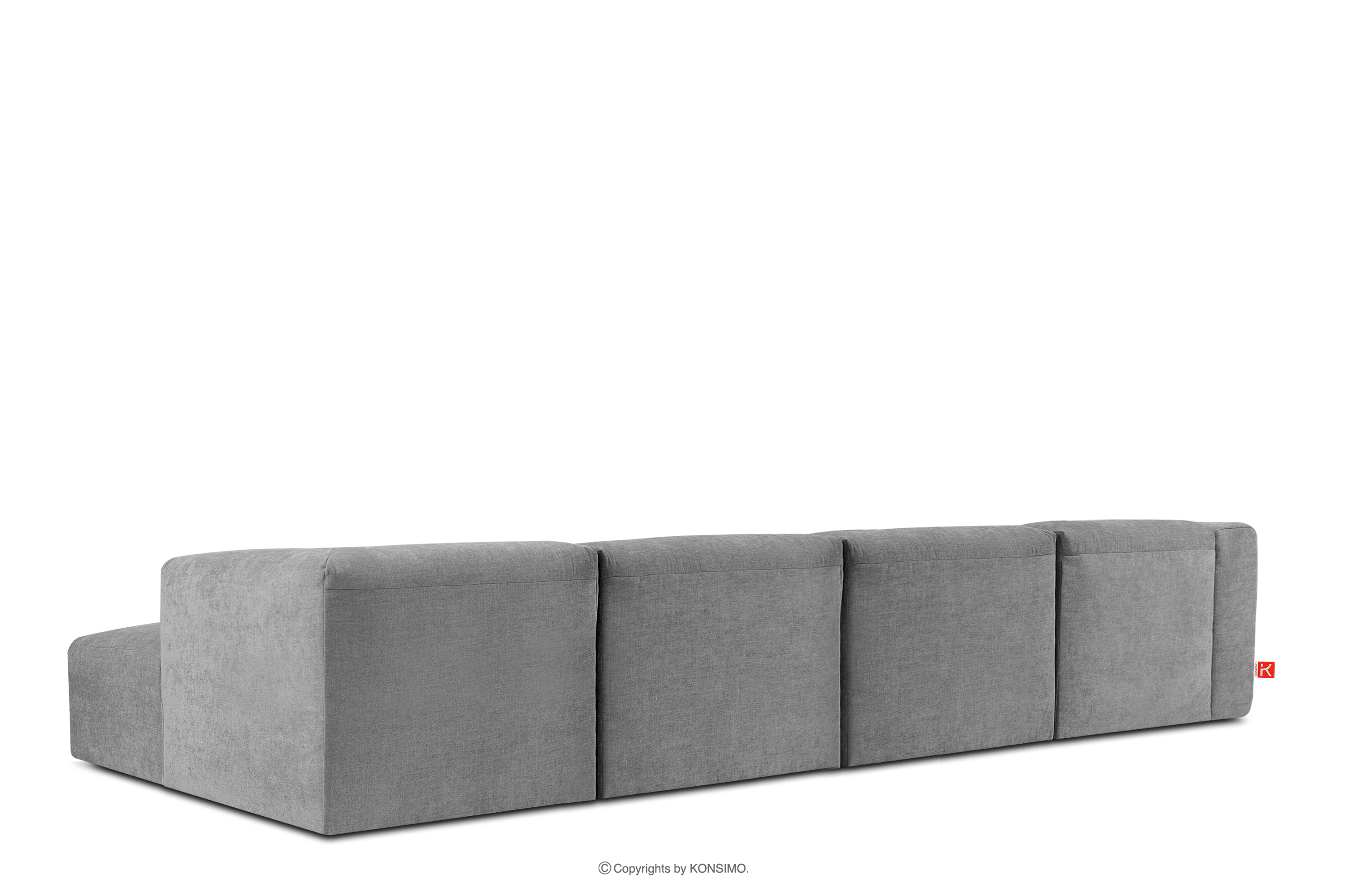 BUFFO zobacz całą kolekcję Duży narożnik modułowy do salonu w tkaninie plecionej jasny popielaty prawy- kolor jasny popielaty