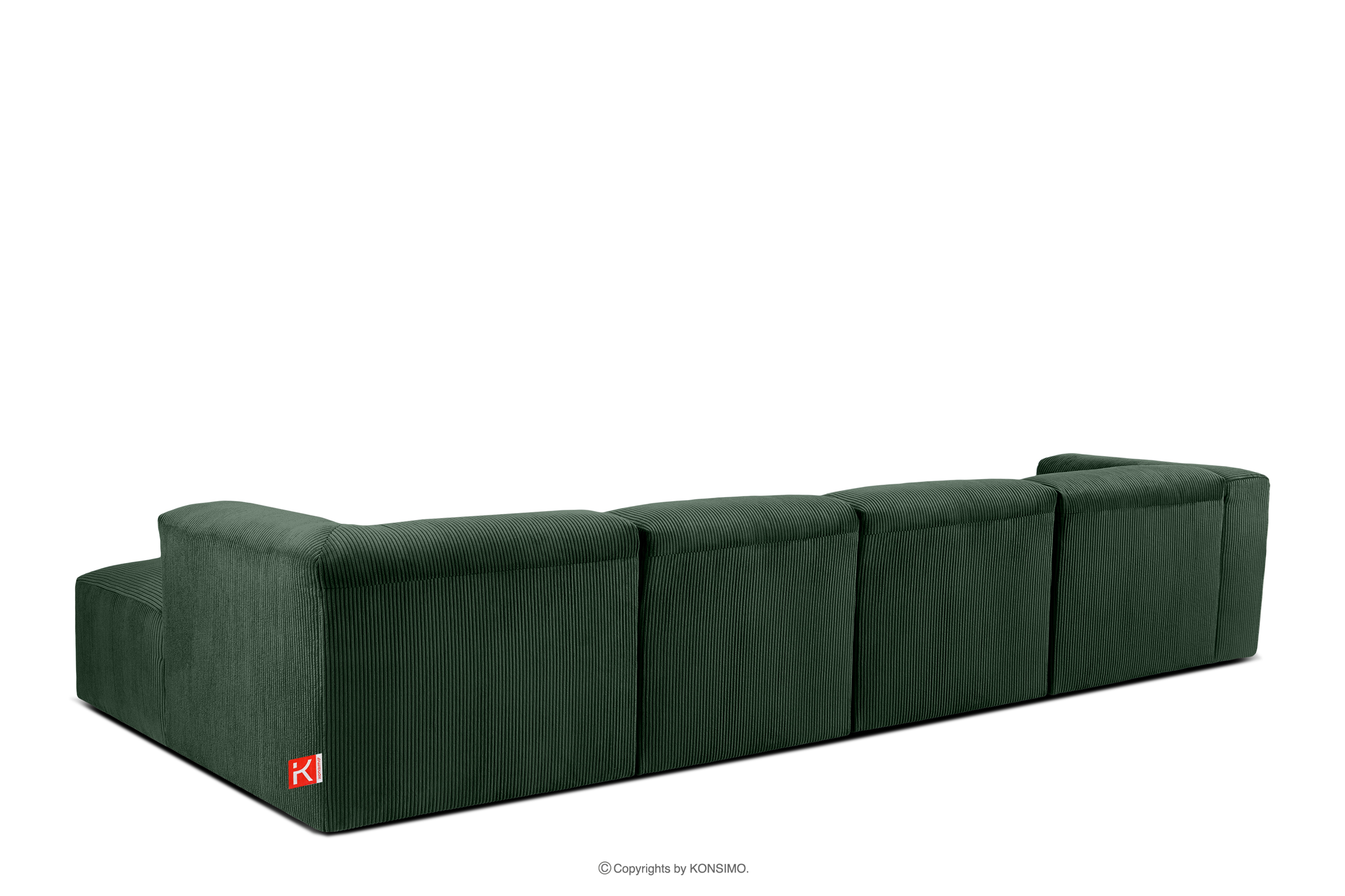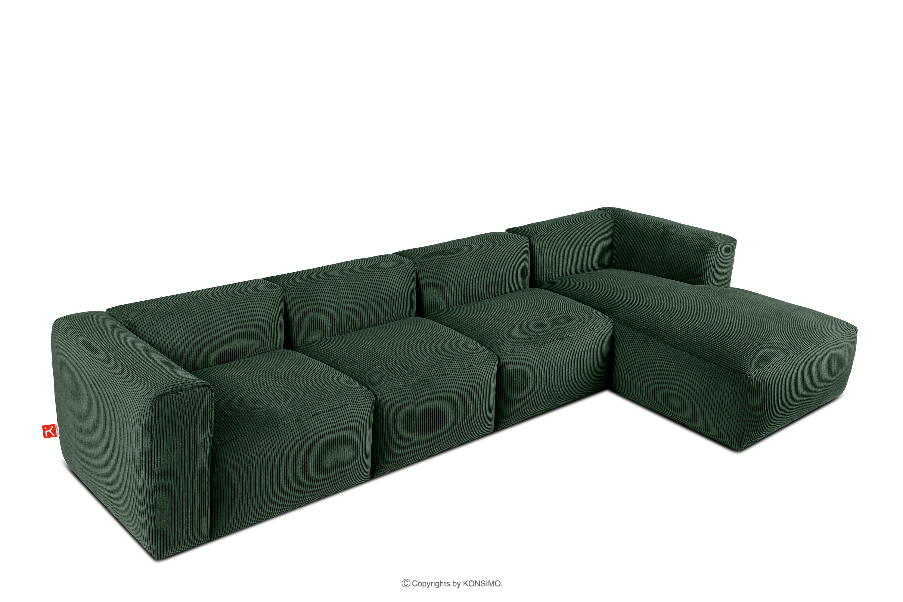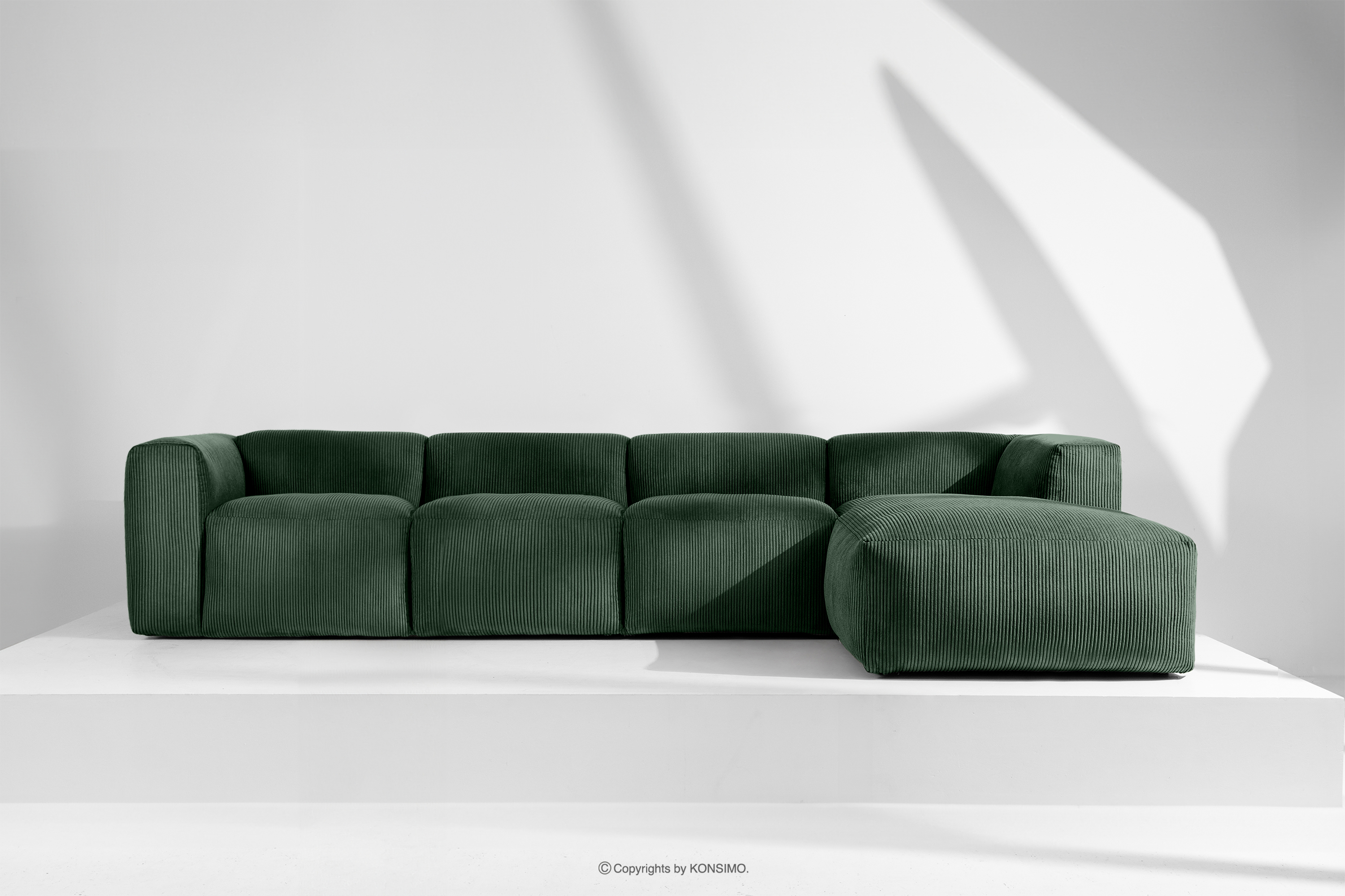 BUFFO zobacz całą kolekcję Duży narożnik modułowy do salonu w tkaninie sztruks ciemny zielony prawy- kolor ciemny zielony